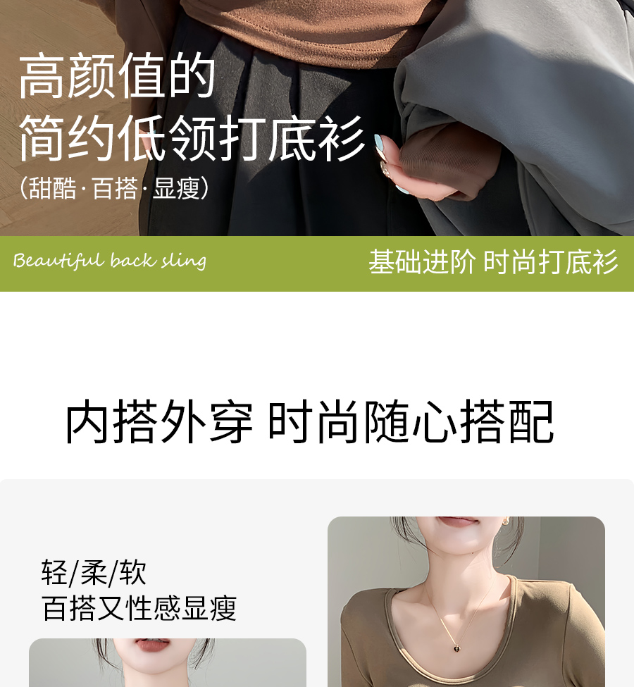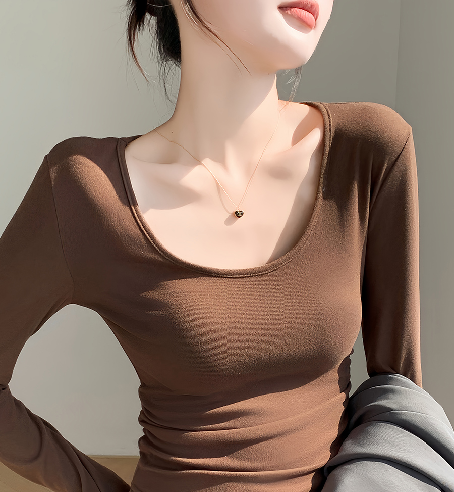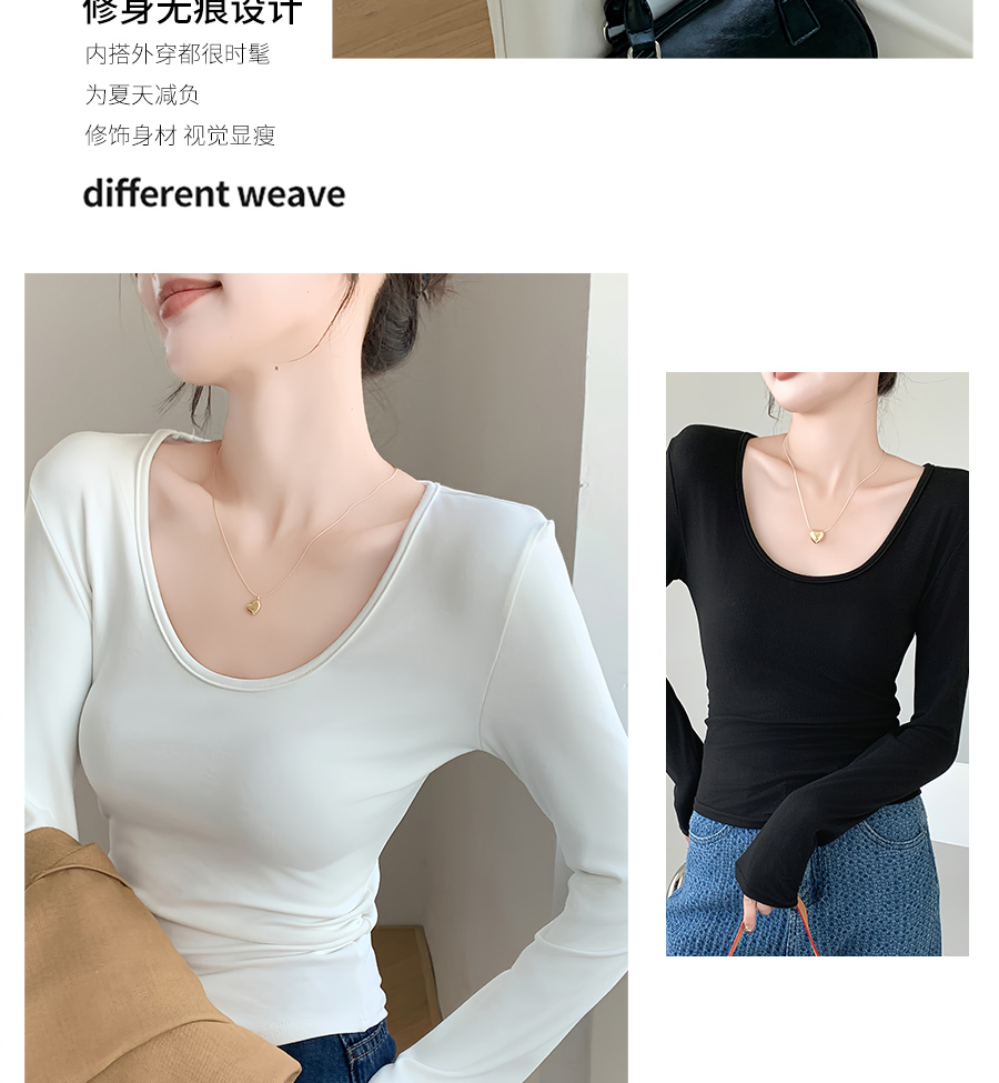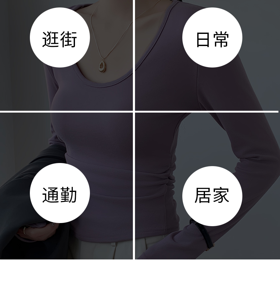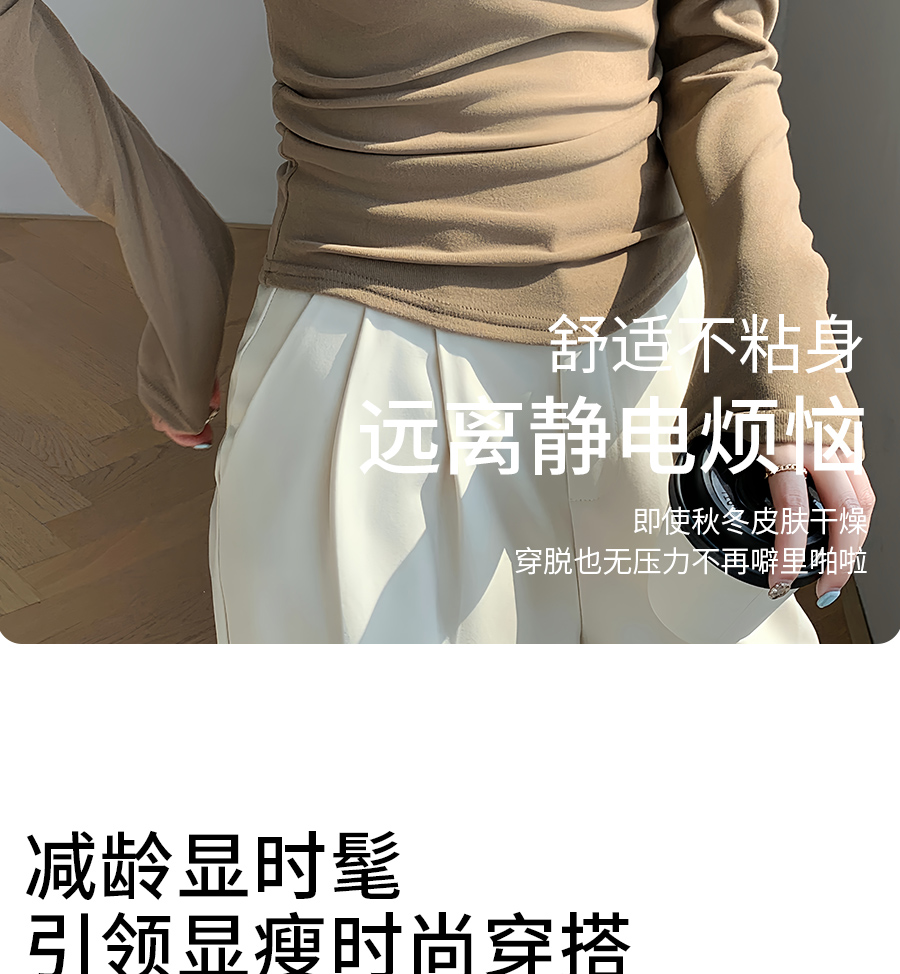 (79元两件!U领&半高领两款多色任选,加购两件立减)椰绒保暖打底衫女褶皱收腰可外穿内搭秋冬加绒t恤磨毛内搭上衣