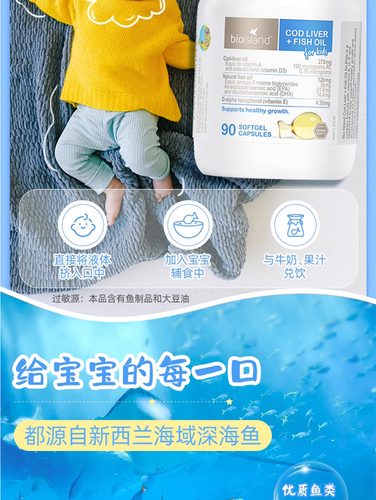 Bio Island 宝宝儿童鱼油+DHA鳕鱼肝油90粒