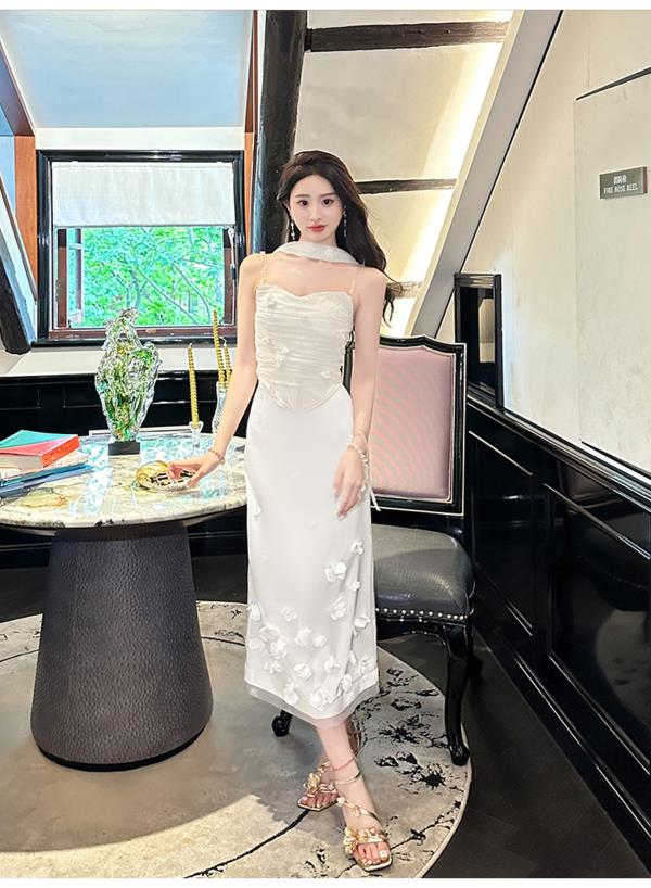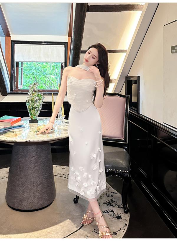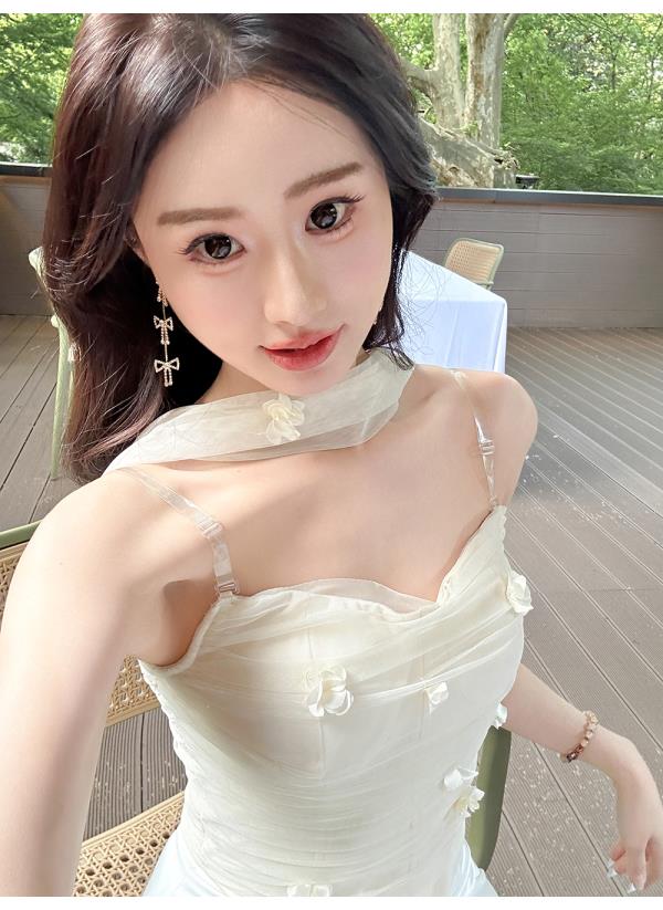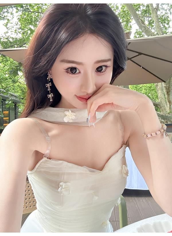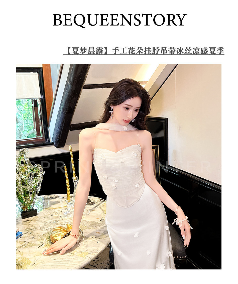 余潇潇【夏梦晨露】轻奢性感时尚百搭手工花朵挂脖吊带冰丝凉感夏季