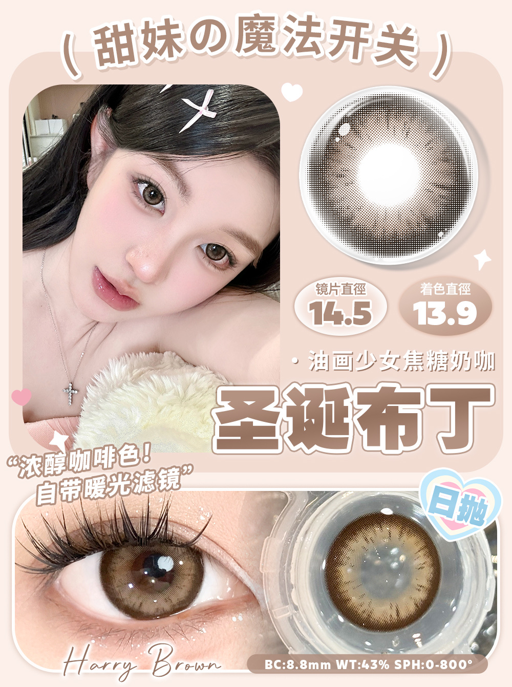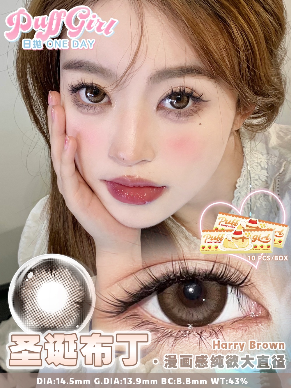 puffgirl 日抛 圣诞布丁 棕/胡椒怪豆 灰 14.5mm 日抛无售后!!