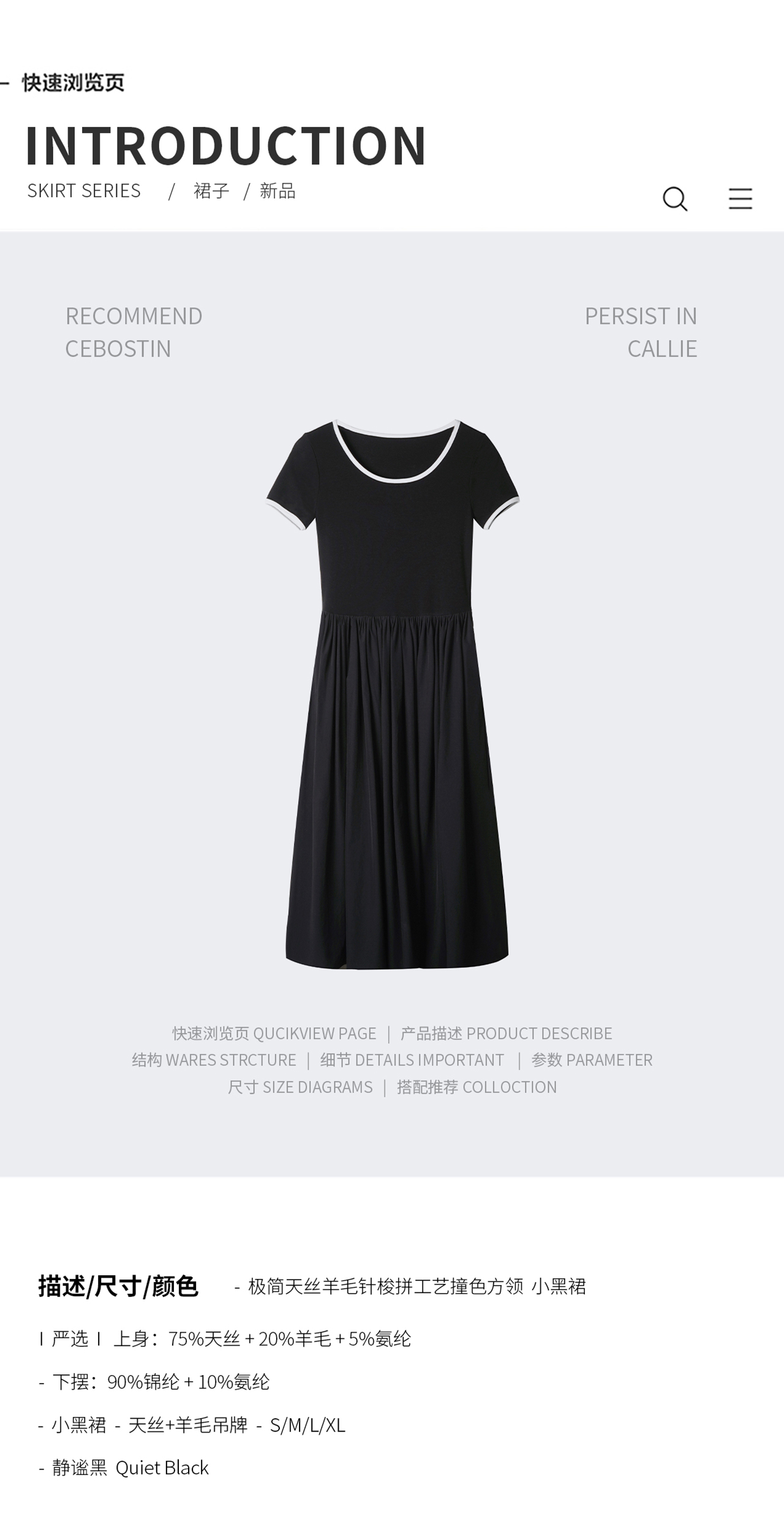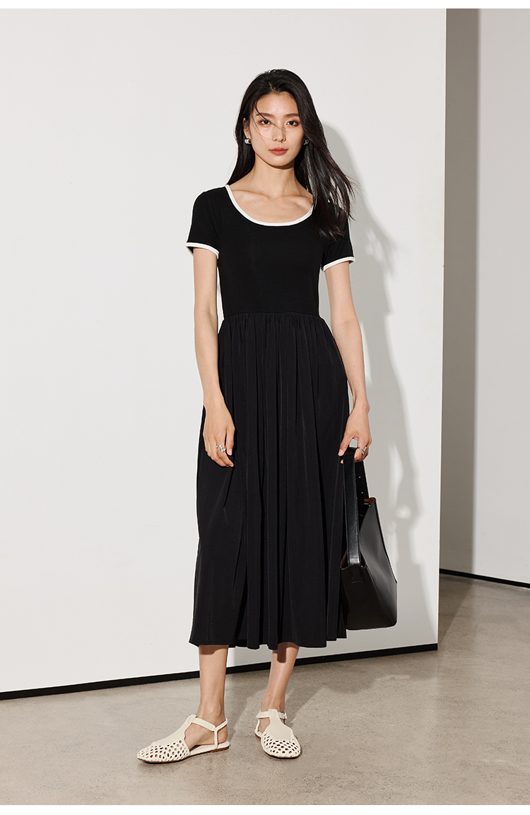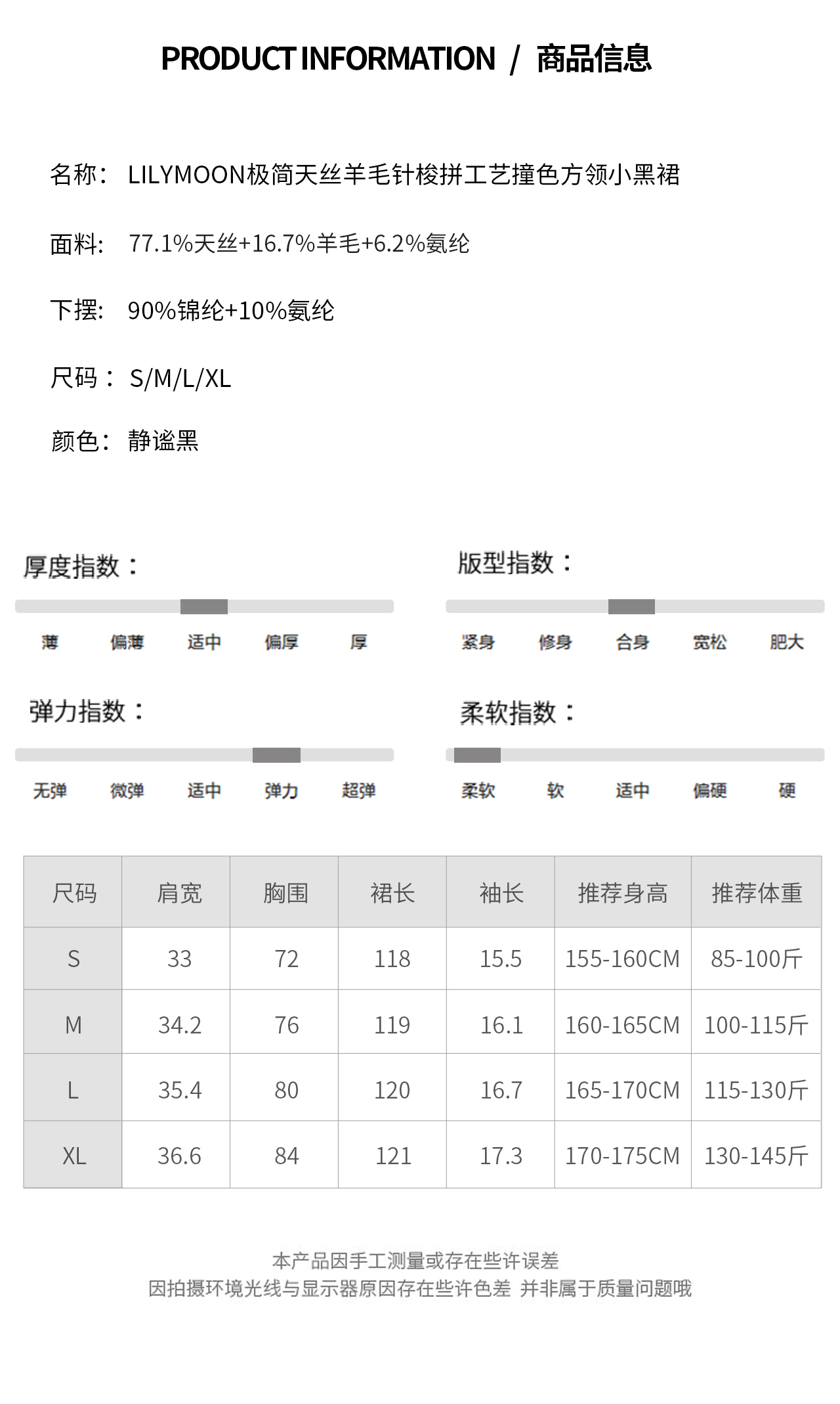 LILYMOON【天丝 方领小黑裙】极简小黑裙法式气质优雅羊毛撞色领纯色