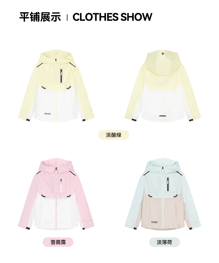 水孩儿童装夏季新款儿童防晒服男童轻薄柔软连帽上衣女童时尚拼色外套