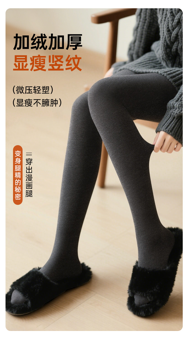 棉华暖月 打底裤袜(VIP)【加绒加厚 保暖显瘦】秋冬光腿神器美腿竖纹保暖打底裤袜女