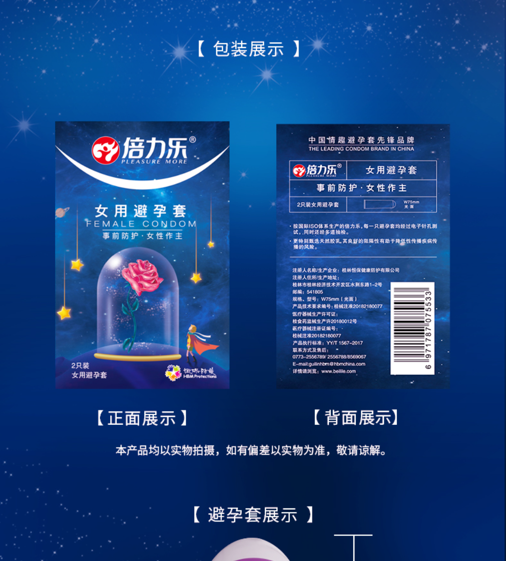 倍力乐 女用避孕套超薄 女性性用安全套 女士戴避孕套成人情趣性用品 4只装
