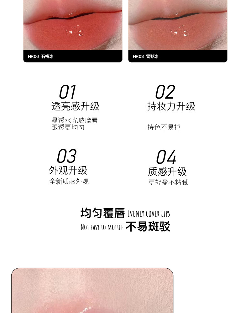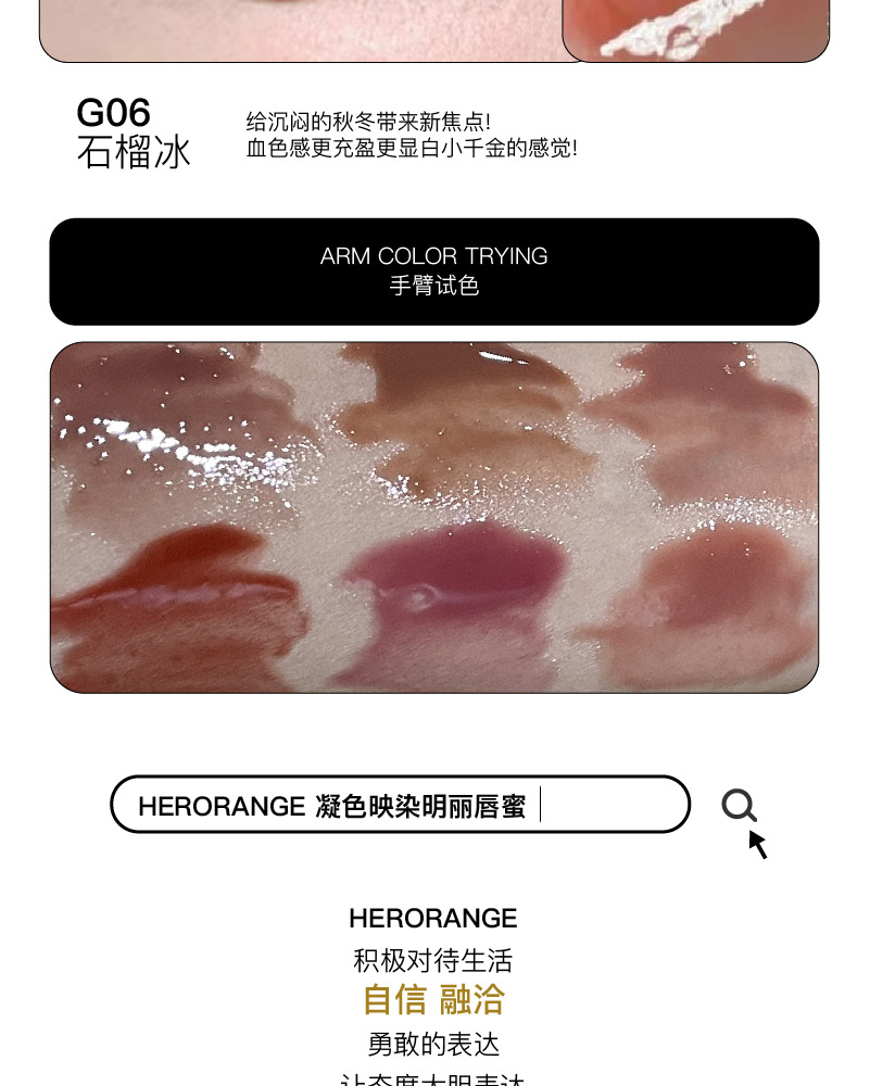 【均匀覆唇不易斑驳❗️持色轻盈不粘腻】HERORANGE~凝色映染明丽唇蜜持妆显色滋润保湿嘟嘟唇水光镜面唇釉。jb