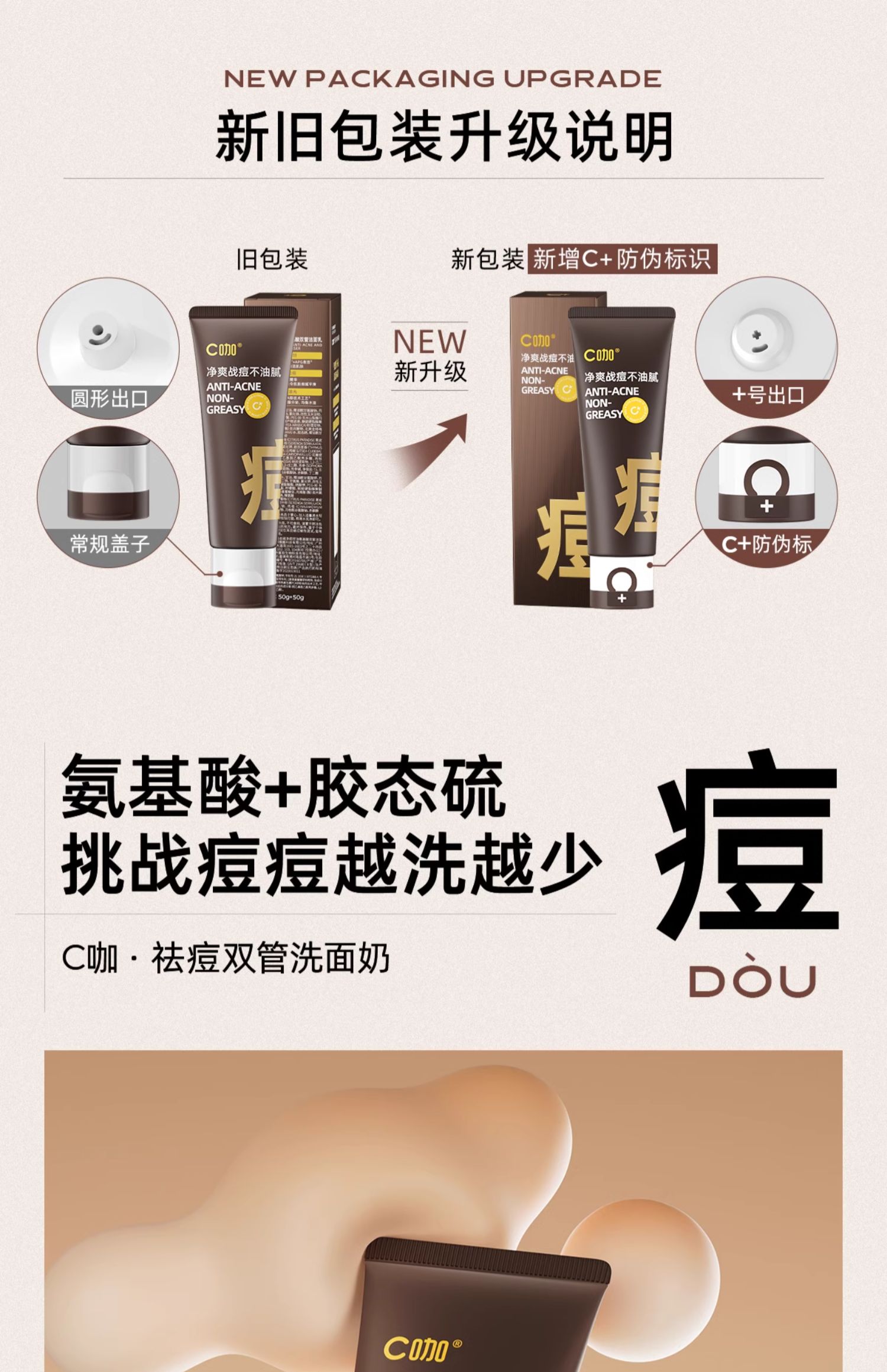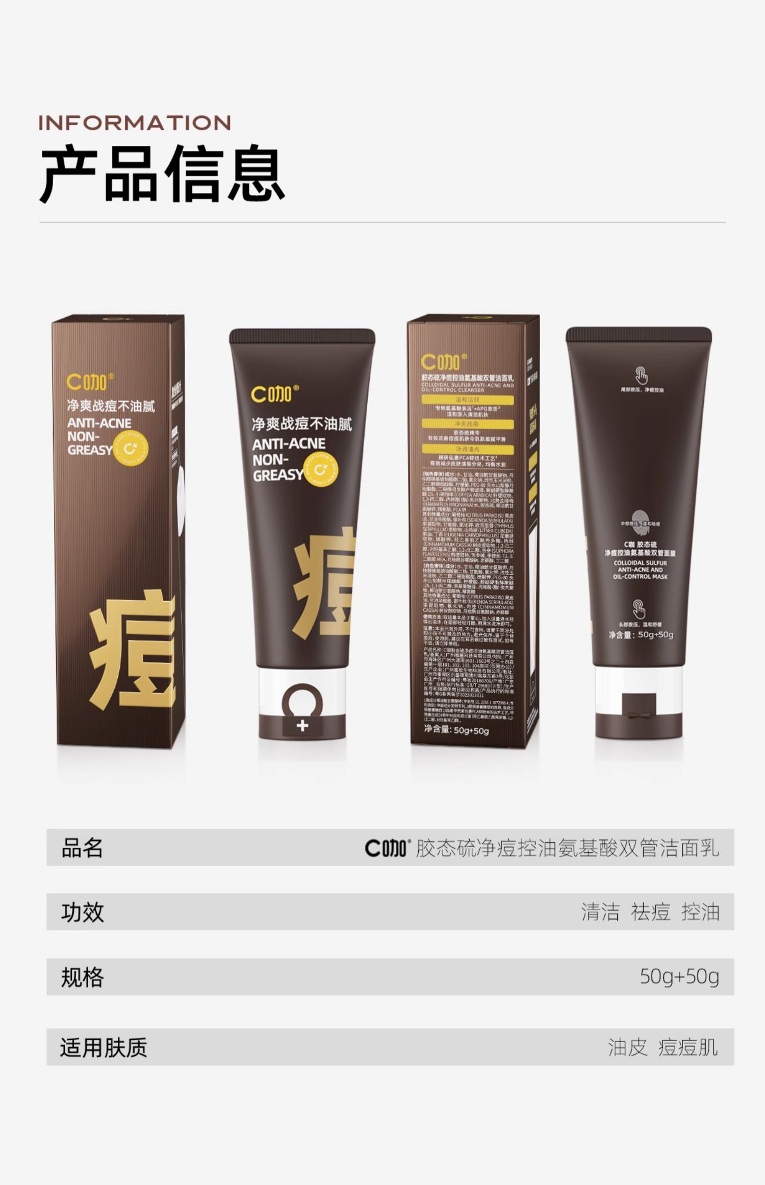 C咖胶态硫净痘控油氨基酸双管洁面乳50g+50g(2403115)