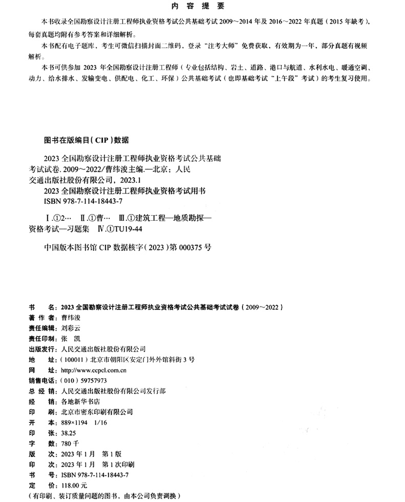 书名:2023全国勘察设计注册工程师执业资格考试公共基础考试试卷(2009~2022)