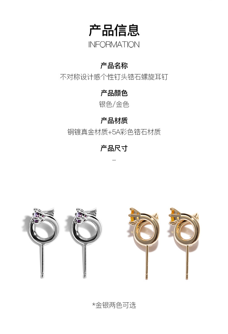 lost in echo 原创设计师品牌 不对称设计感可拆卸个性钉头锆石螺旋耳钉