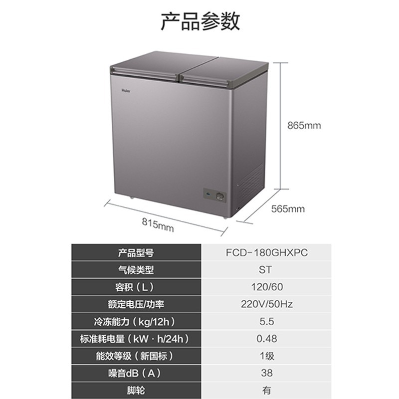 Haier海尔冰柜家用无霜小型冷柜冷冻柜冷藏柜两用卧式保鲜柜100升200升保温一级转换柜 180升-双室一级无需除霜FCD-180GHXPC