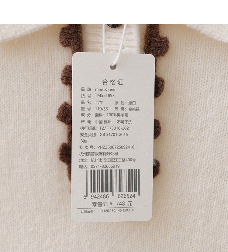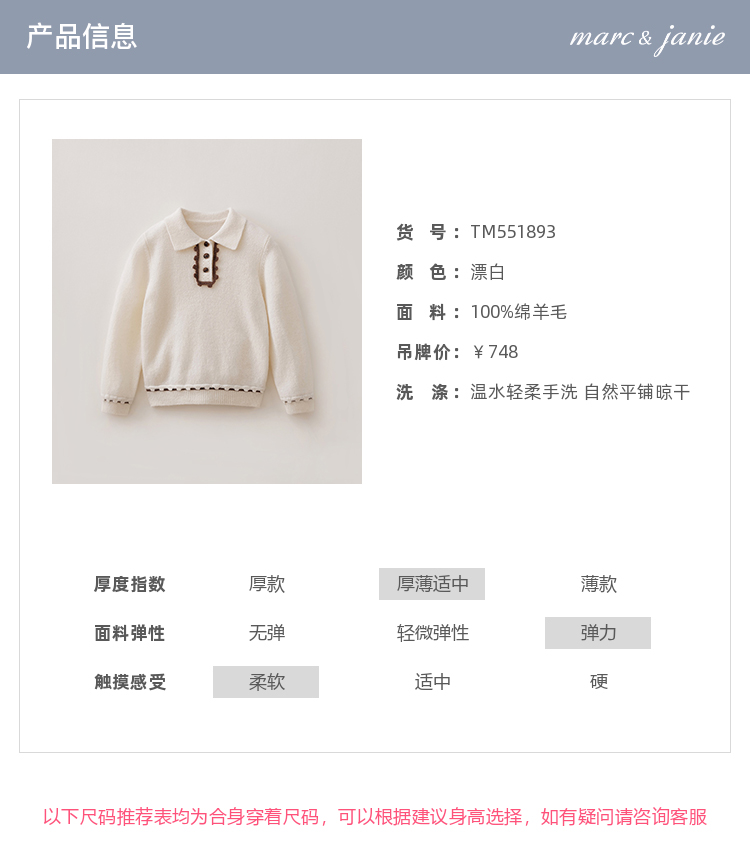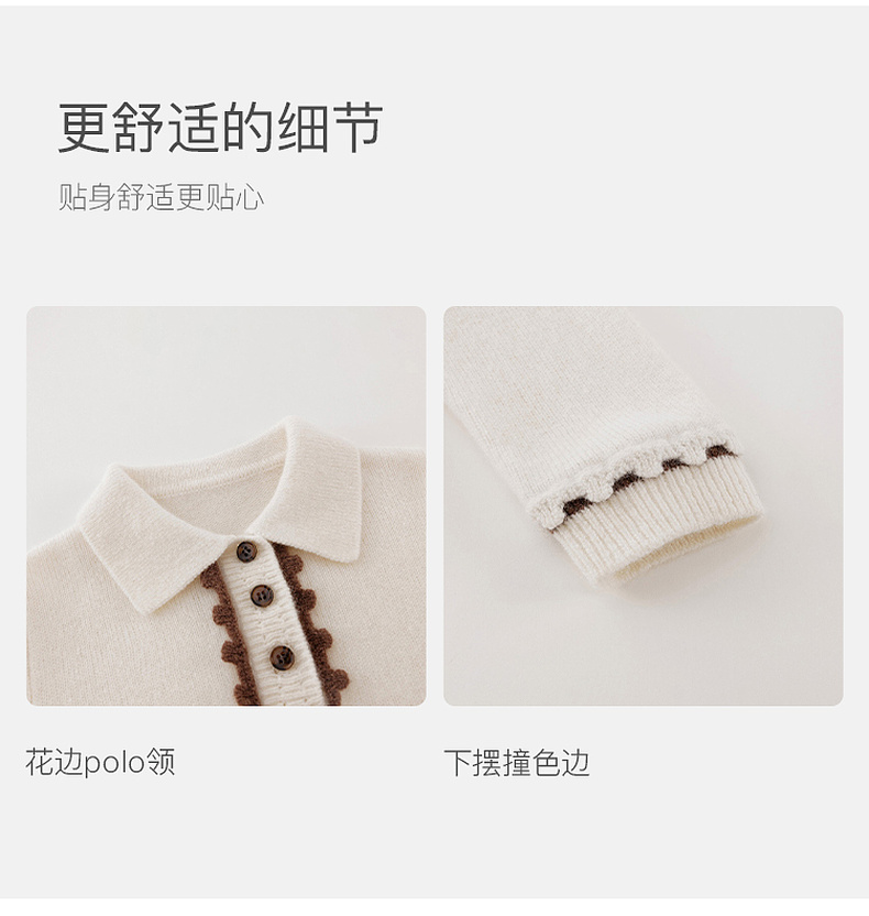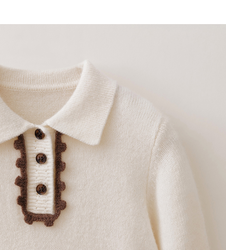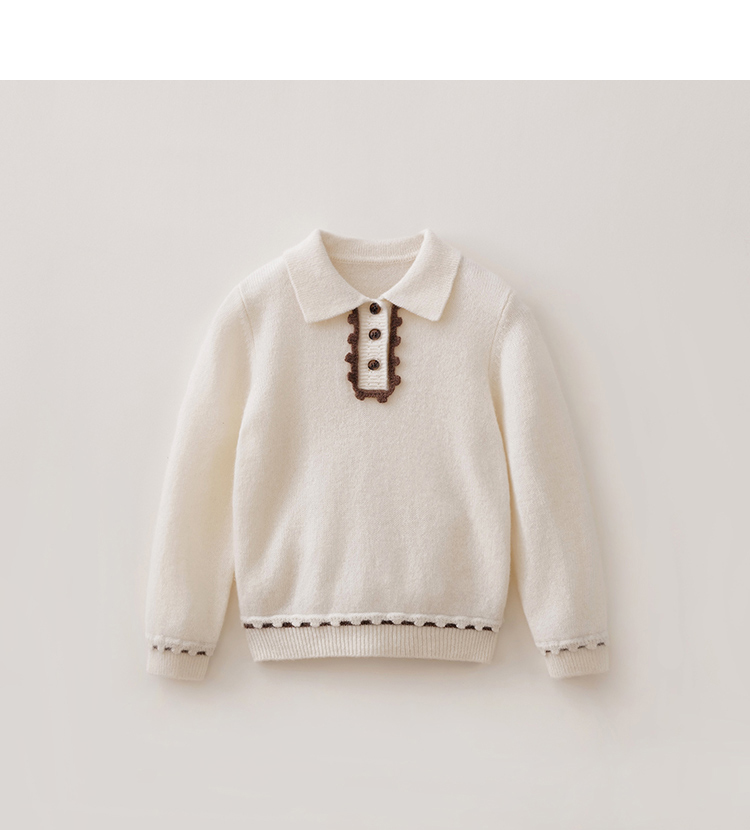【100%绵羊毛】马克珍妮女童花边POLO领针织毛衣2025年冬装新款551893