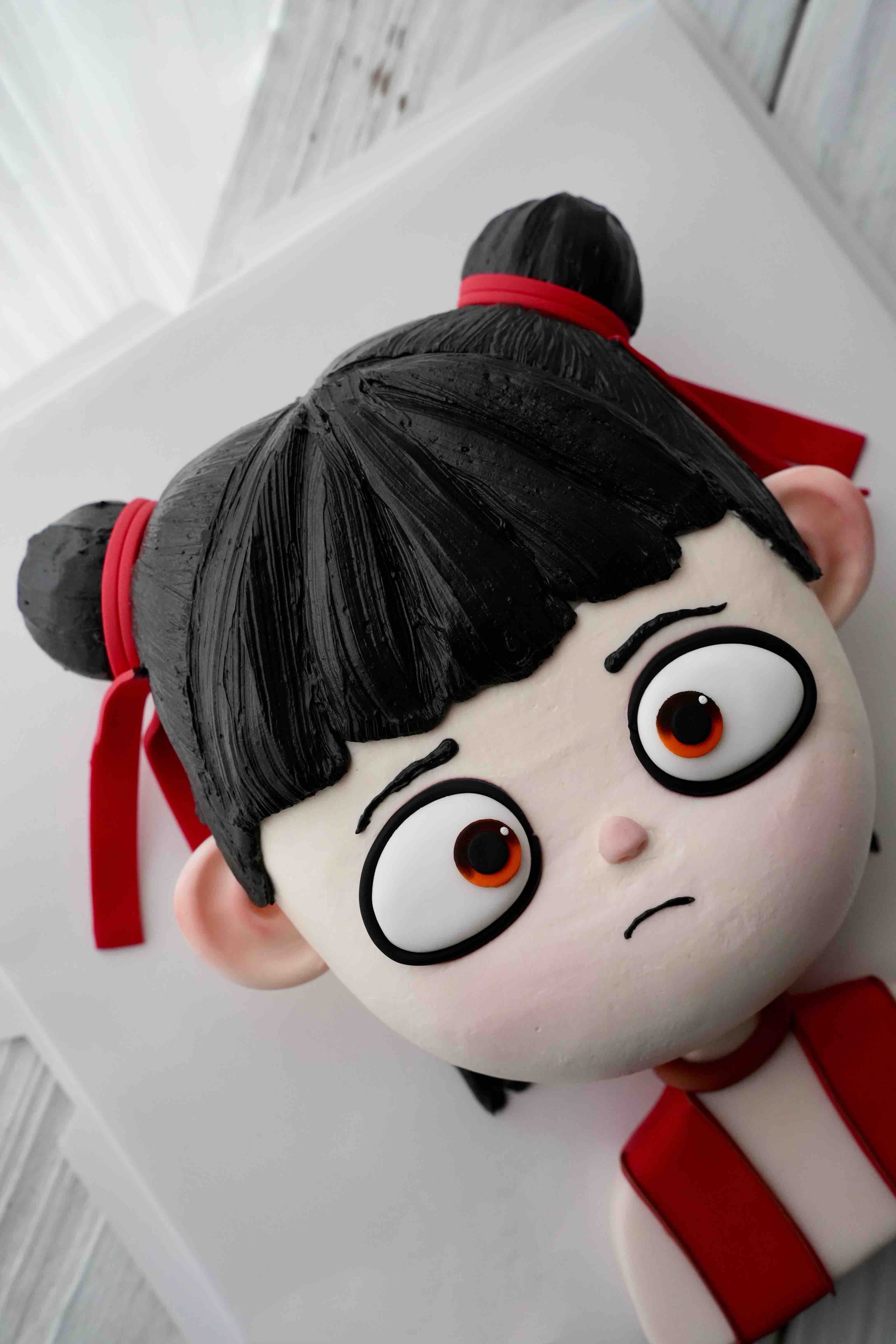 丸子头、红飘带、耳朵、身体连接处有木签固定,食用时先取出噢