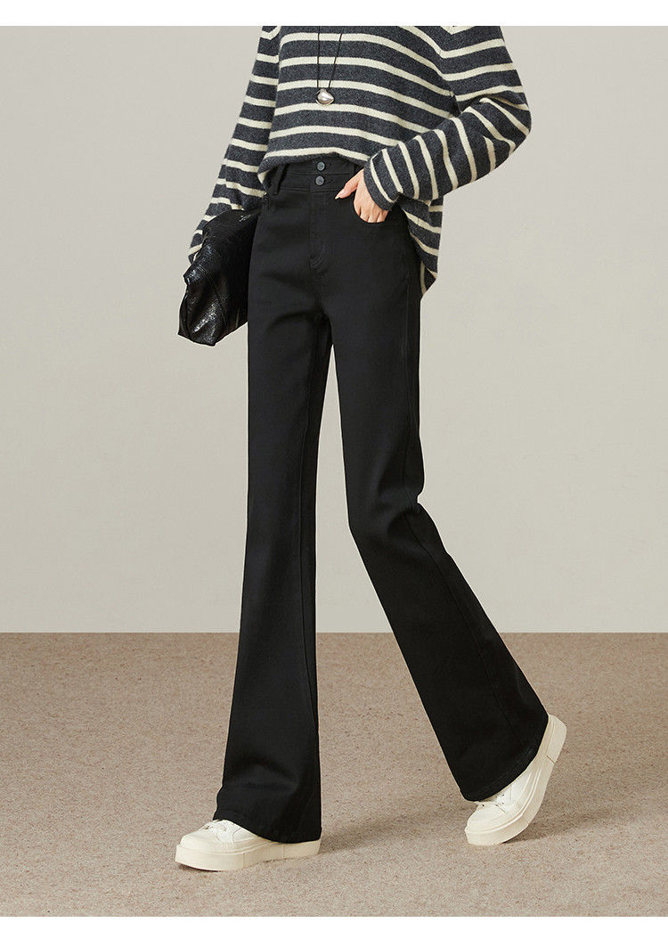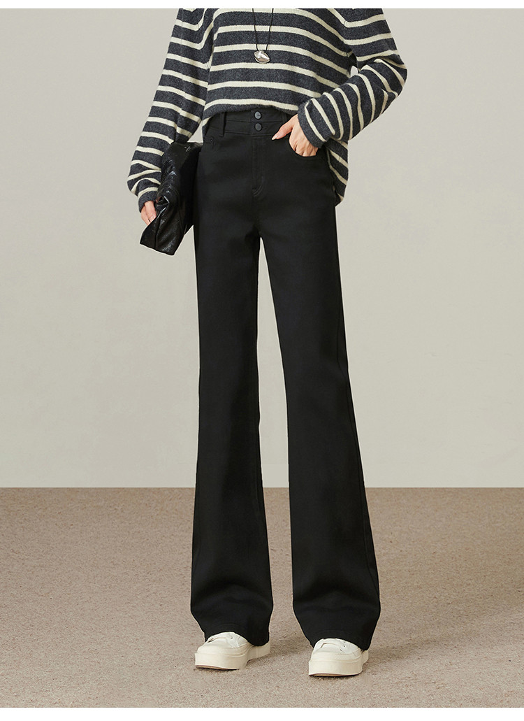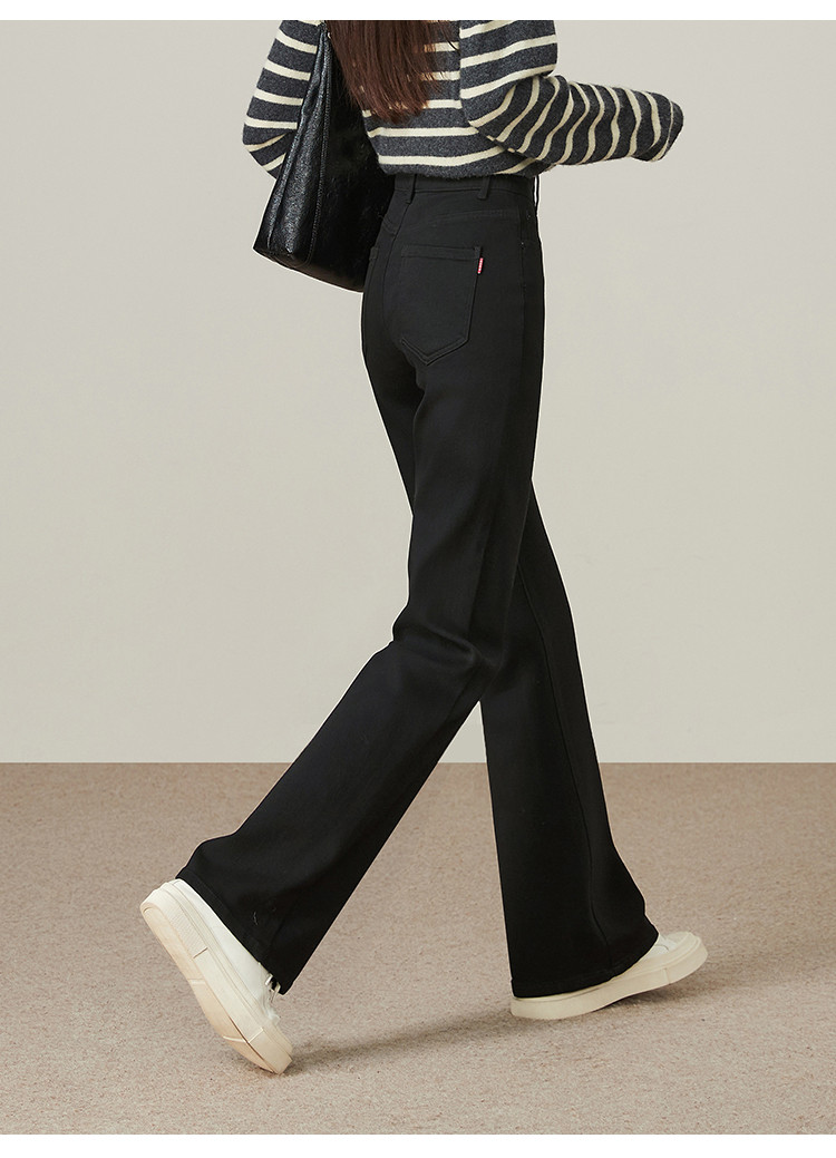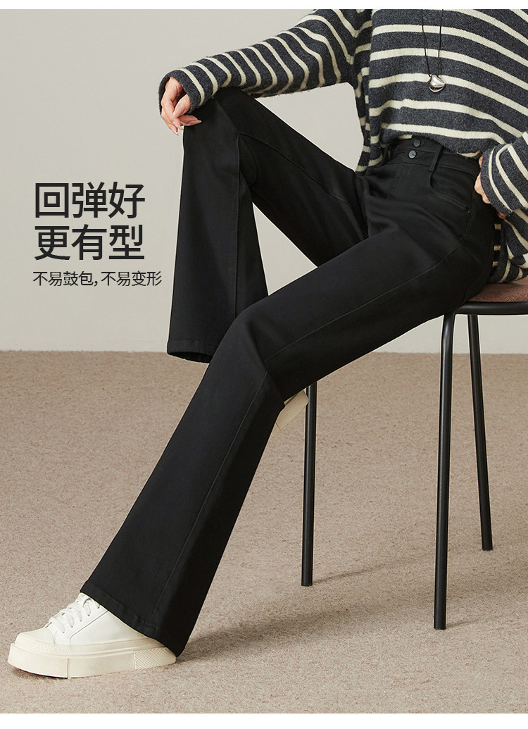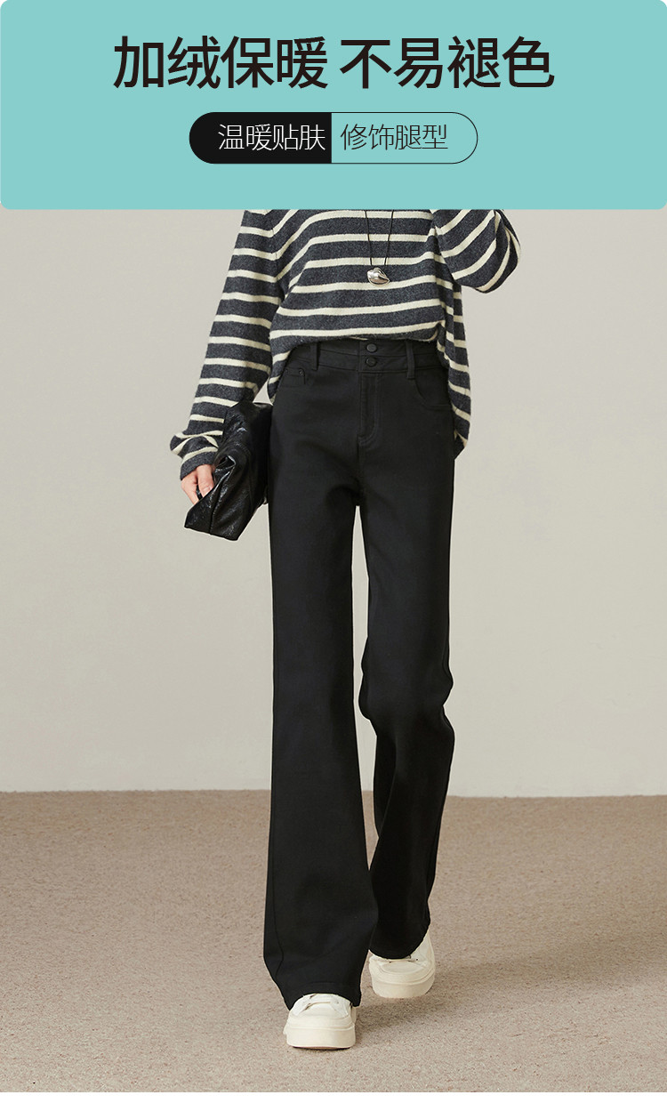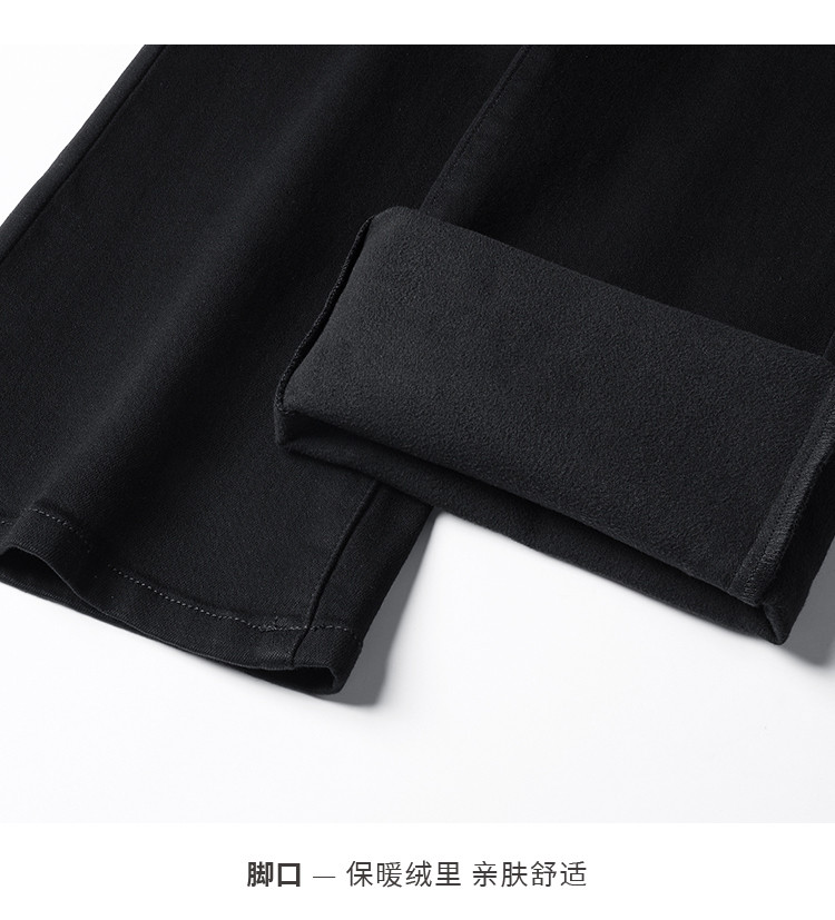 【加绒-微喇裤】逸阳冬不易褪色拉绒弹力黑色喇叭牛仔裤4924B