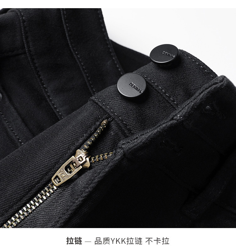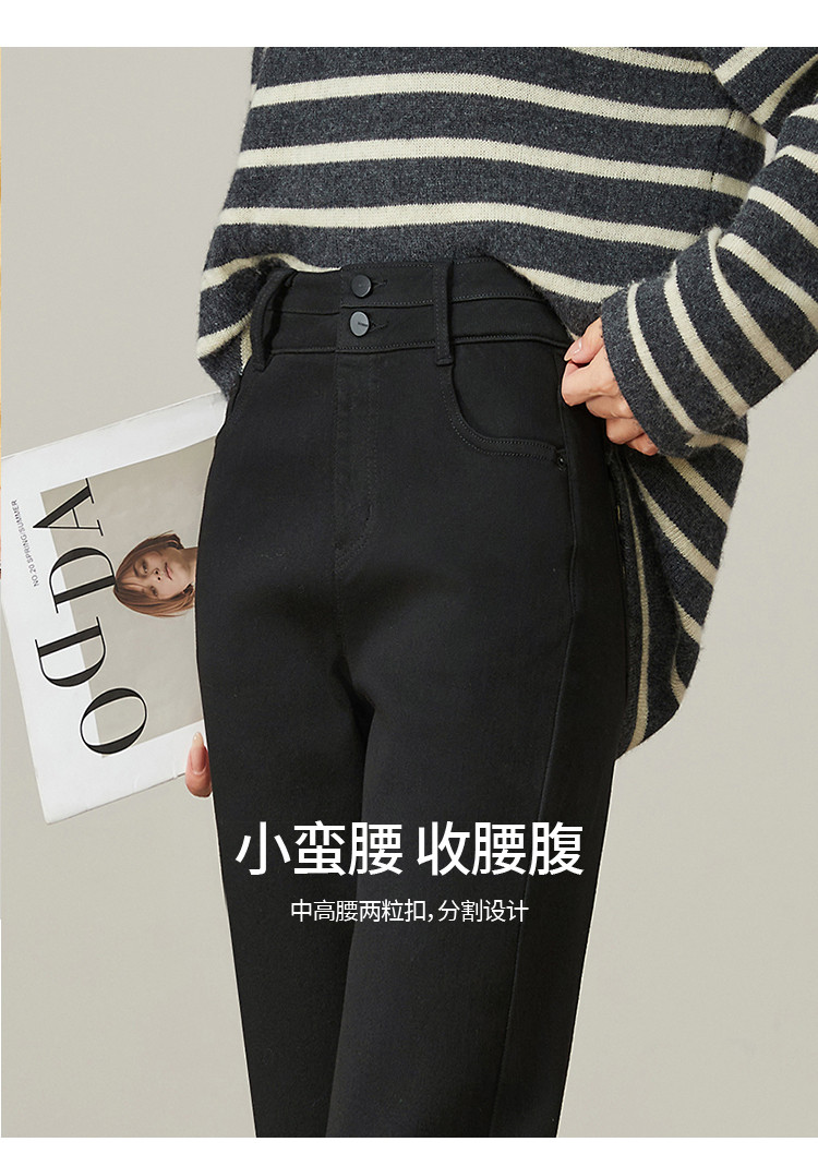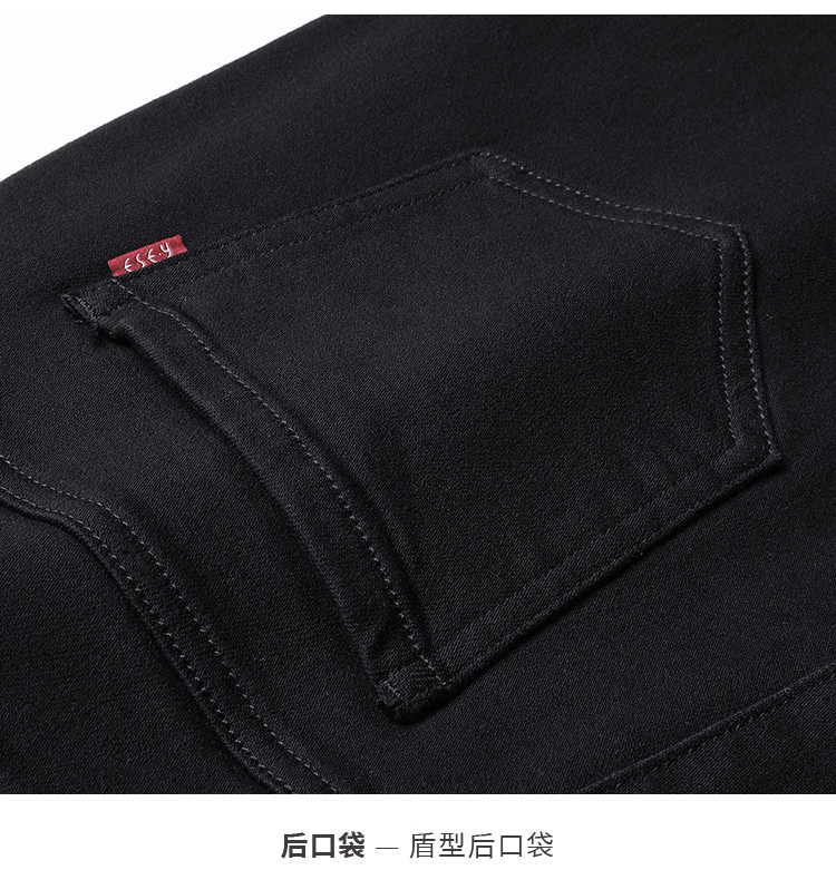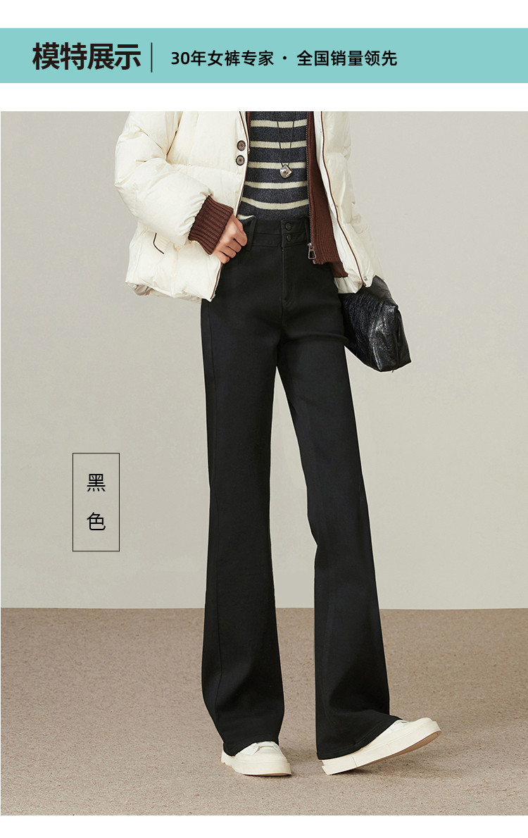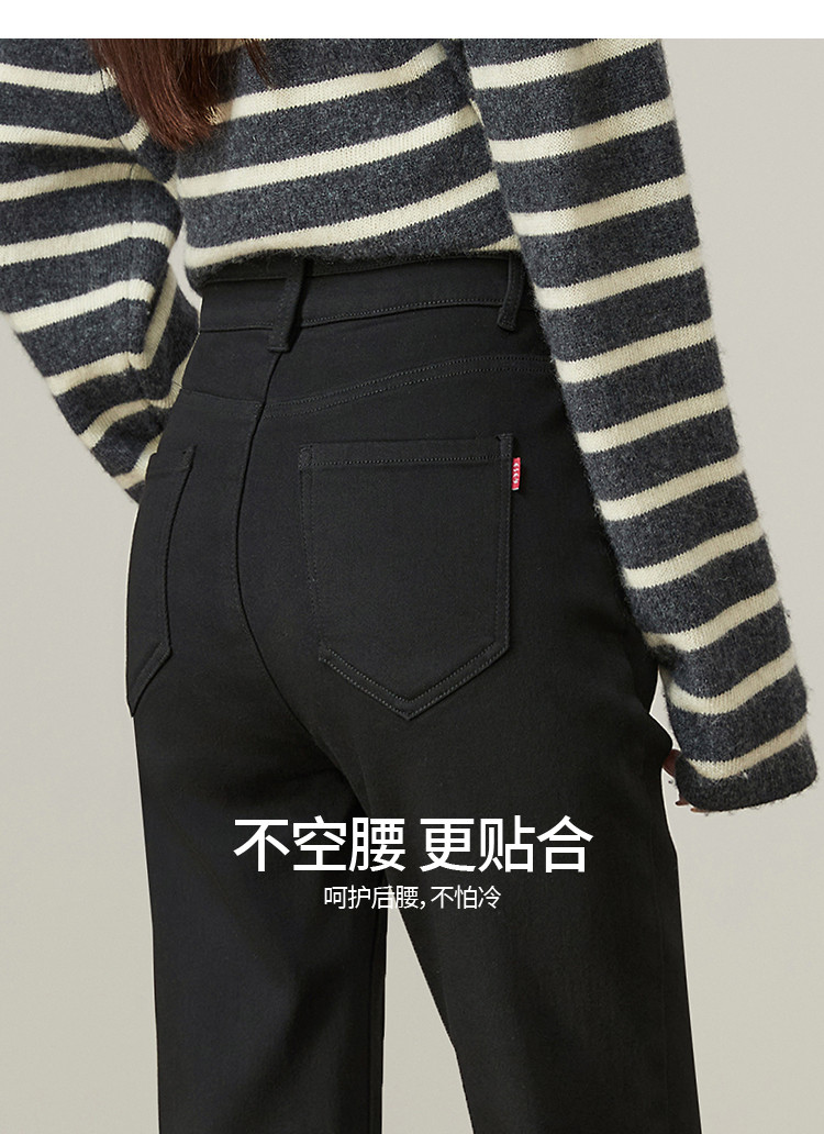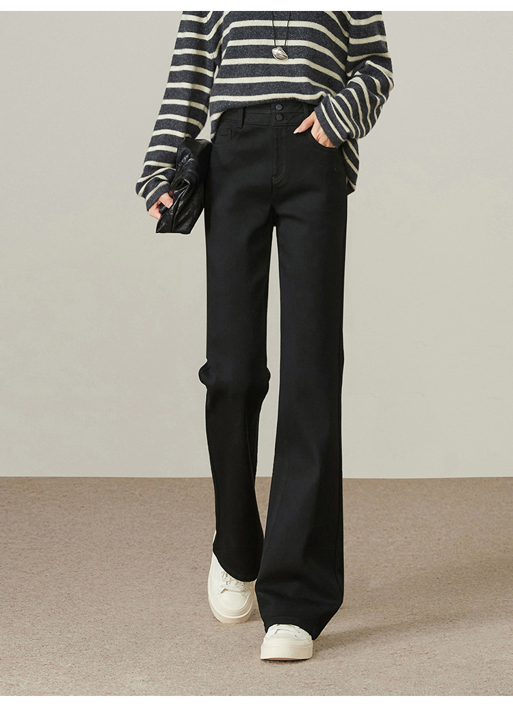 【加绒-微喇裤】逸阳冬不易褪色拉绒弹力黑色喇叭牛仔裤4924B