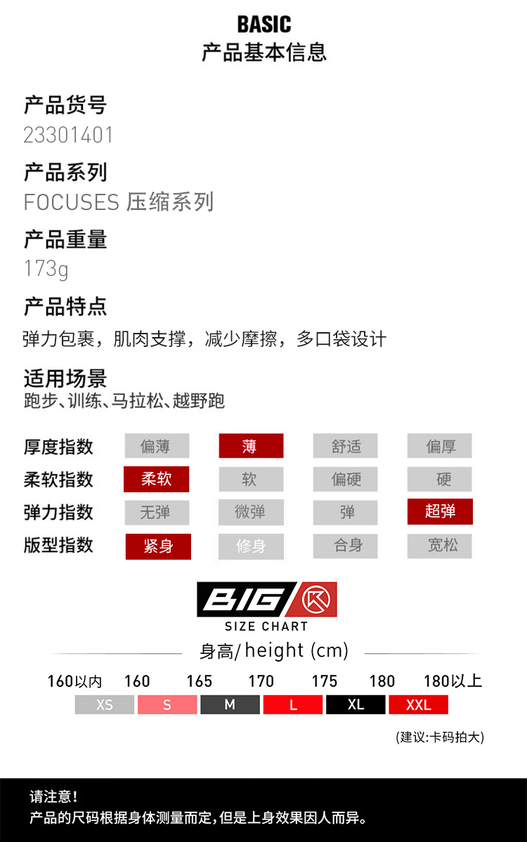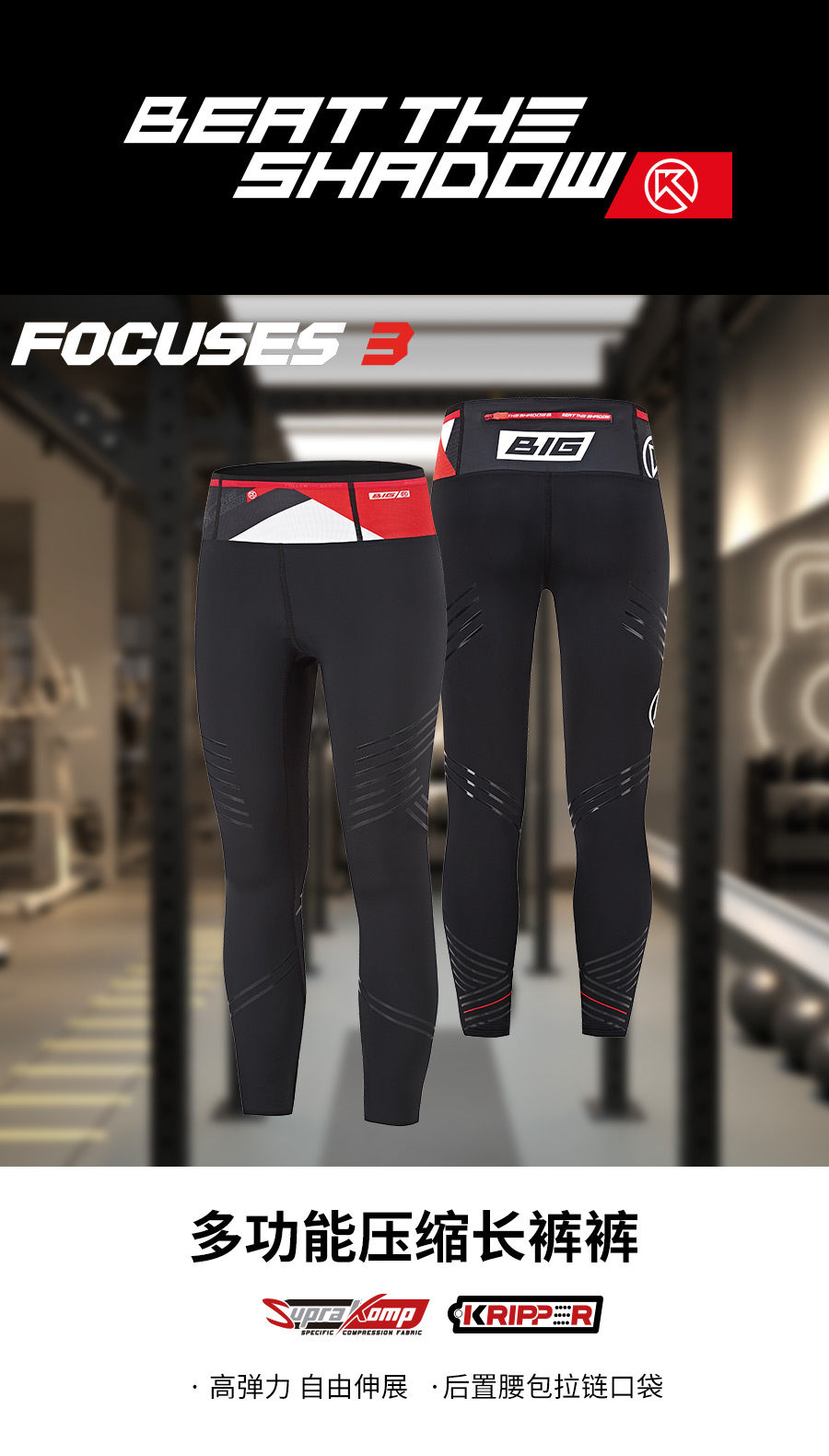 BigK 大K FOCUSES 3 多功能压缩长裤 室内健身 户外训练 马拉松