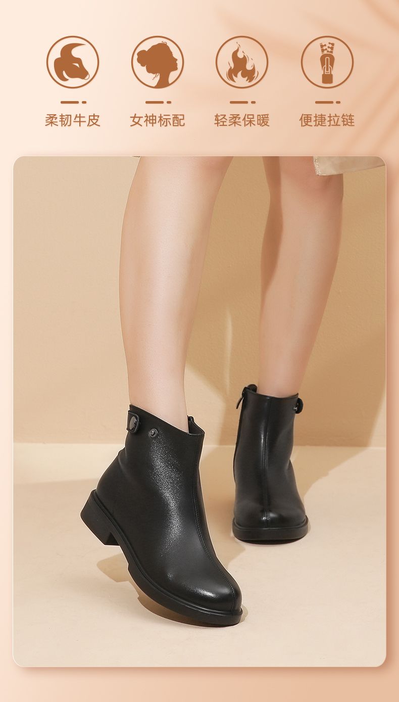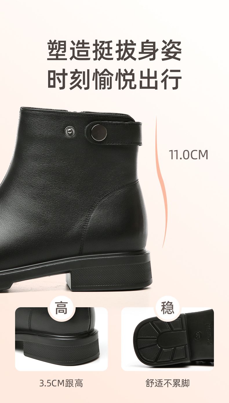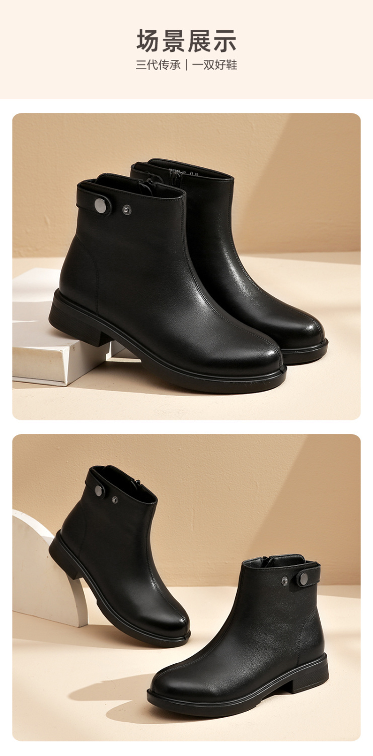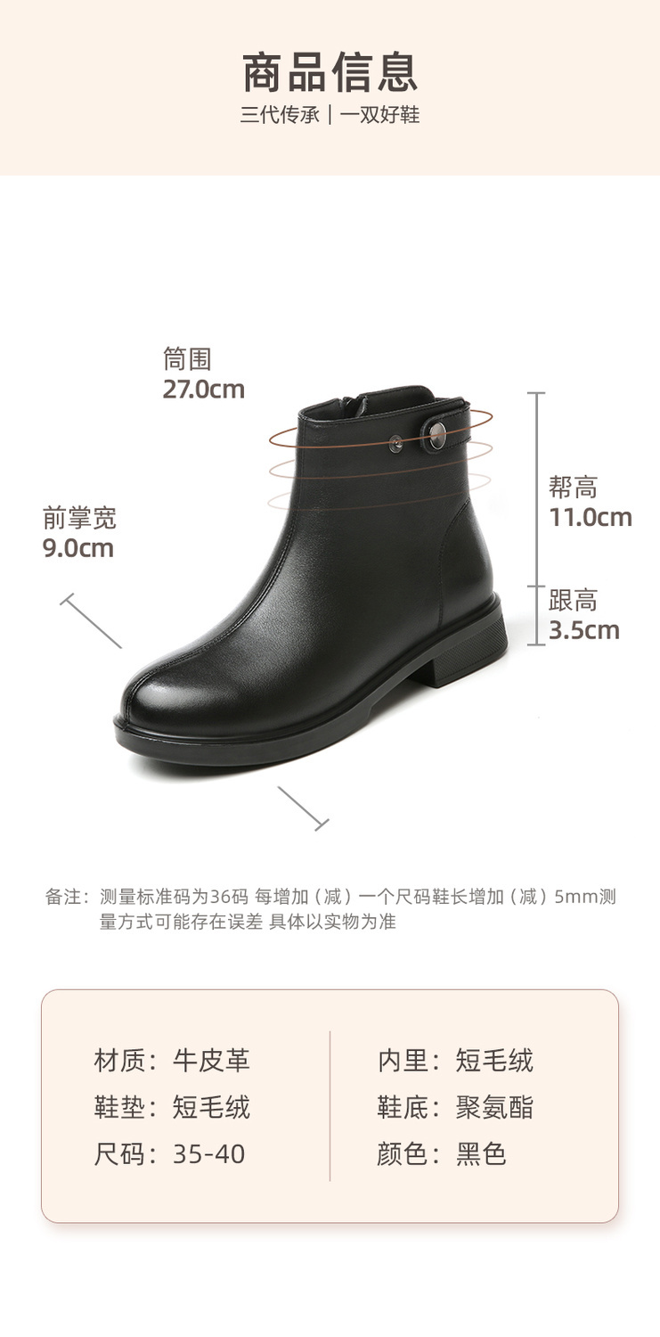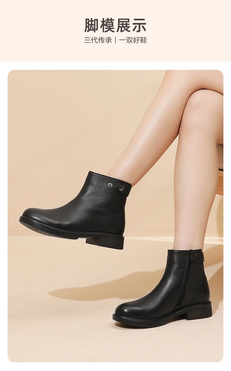 信诺妈妈鞋棉鞋中年女靴女秋冬季真皮加绒短靴保暖中老年女士皮鞋22M969-17