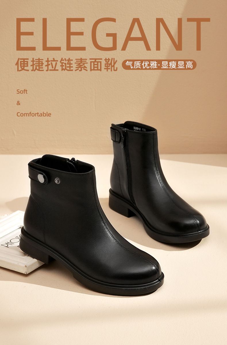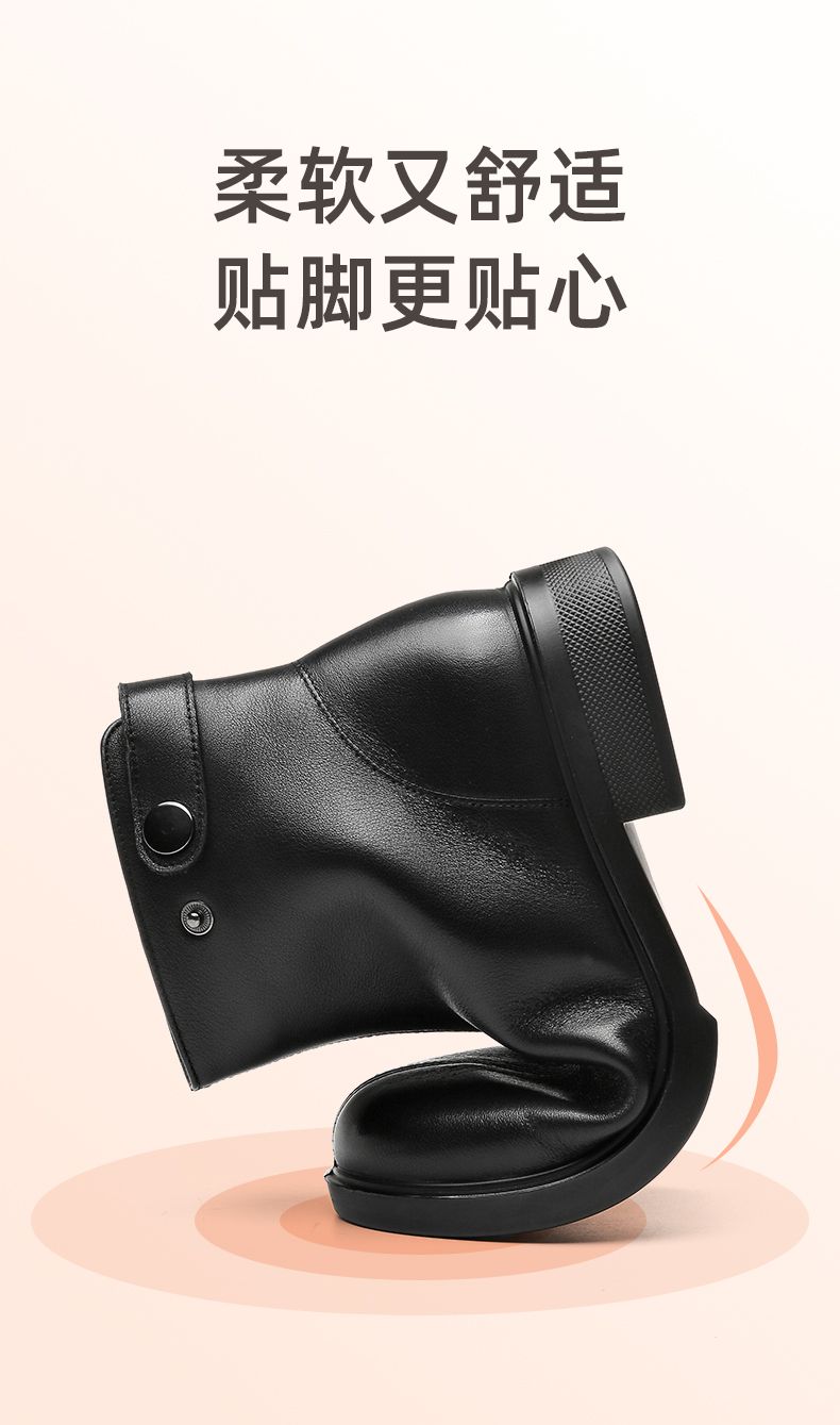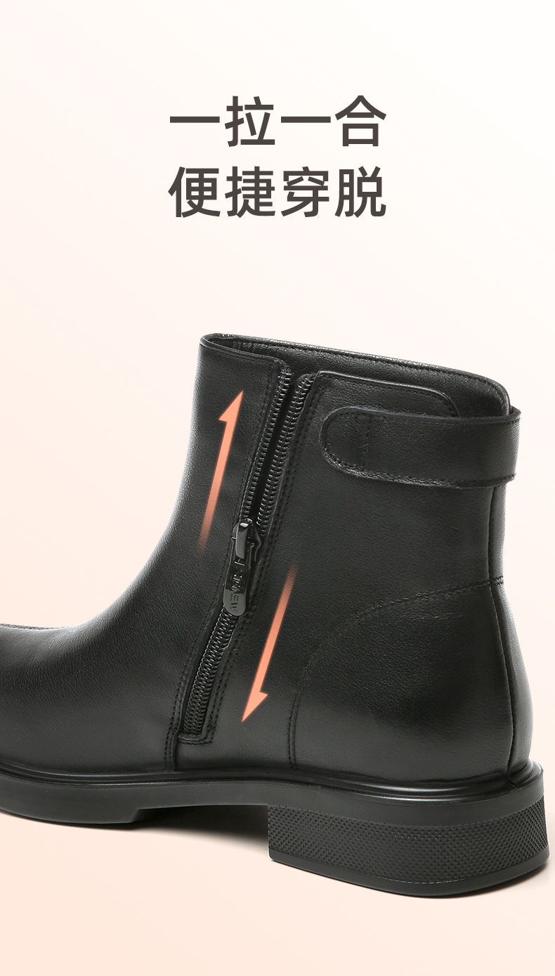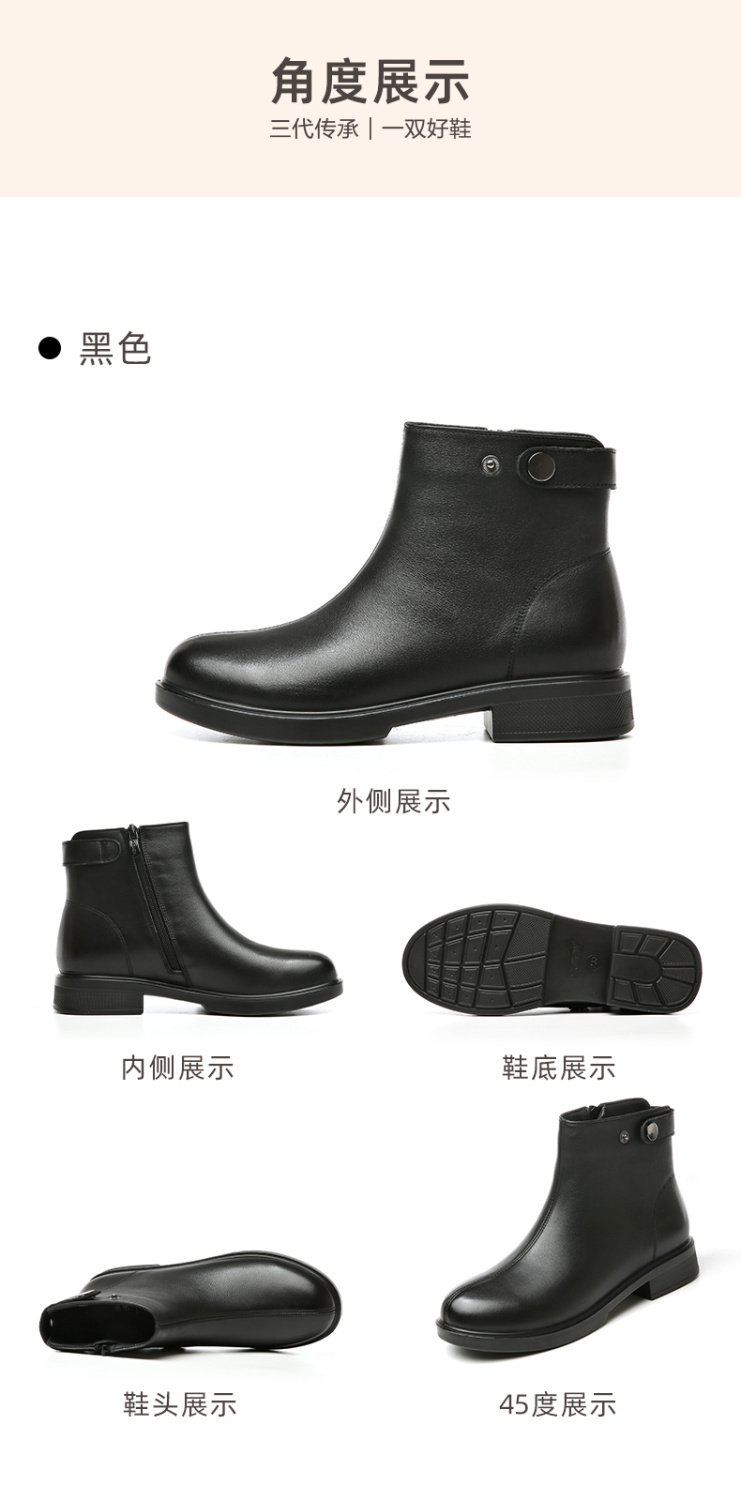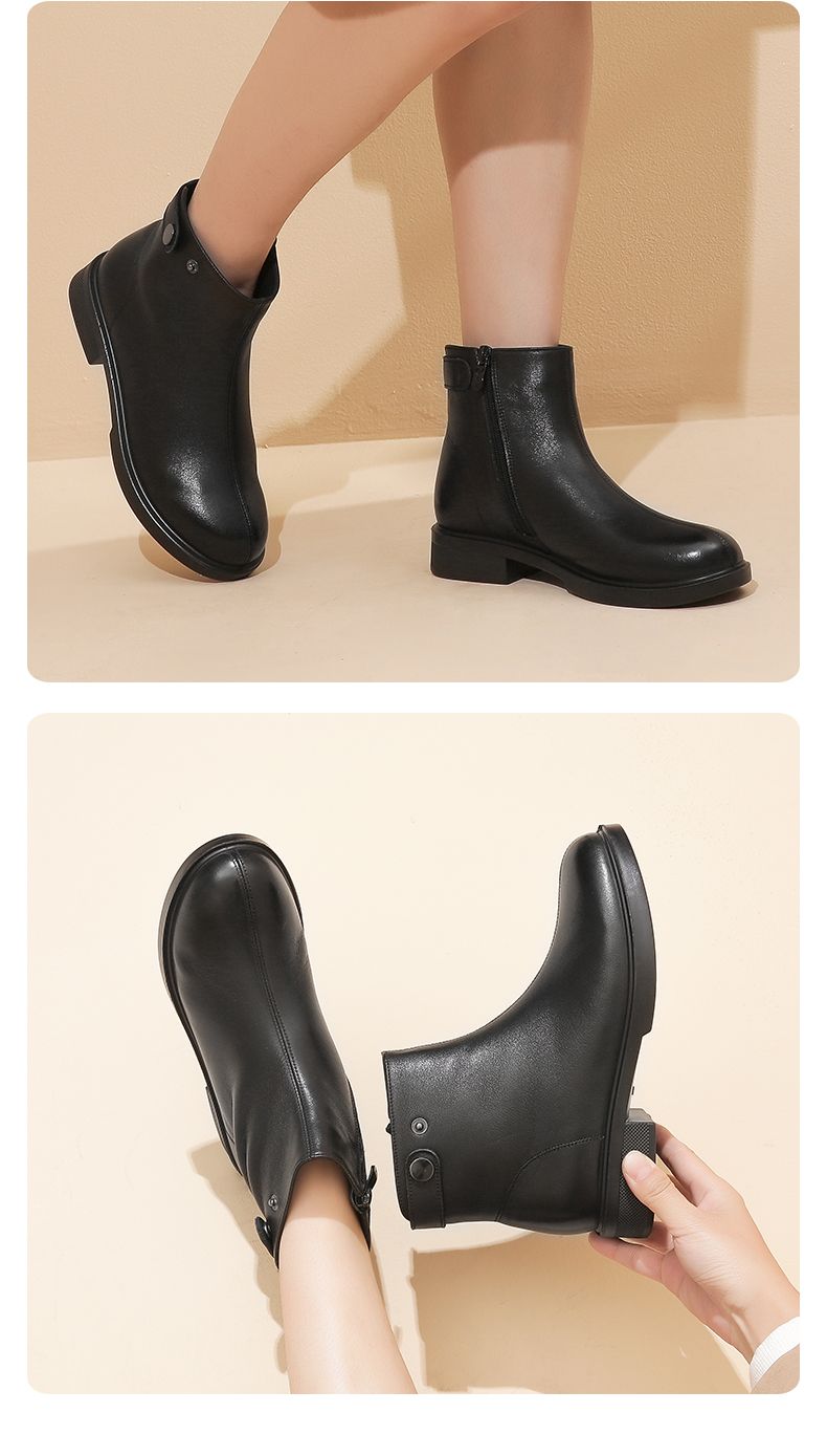 信诺妈妈鞋棉鞋中年女靴女秋冬季真皮加绒短靴保暖中老年女士皮鞋22M969-17