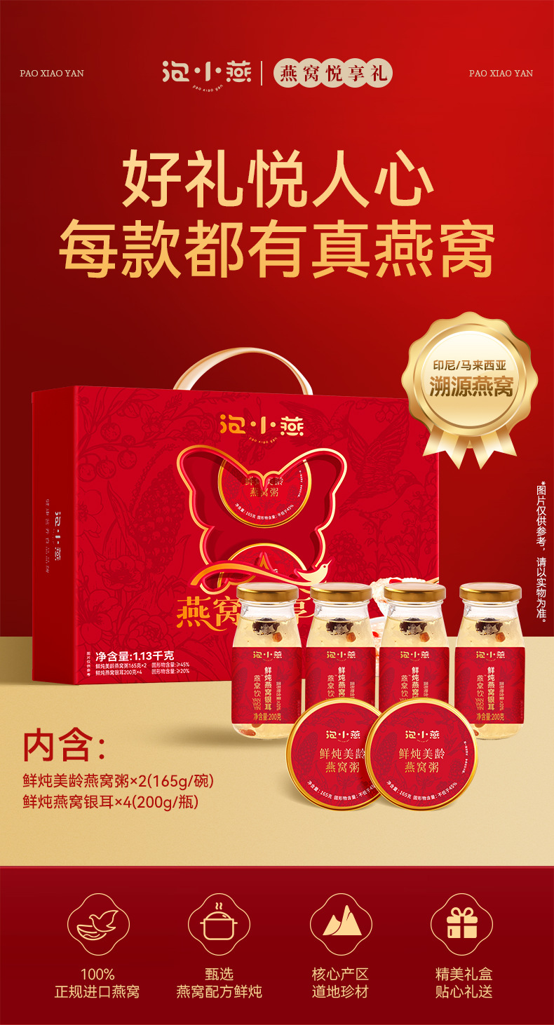 【粉丝专属❗️泡小燕悦享燕窝礼盒】吃燕窝养“红”气,甄选品质原料制作,优选印度尼西亚燕窝,过年速食粥燕窝礼盒L