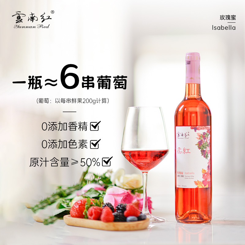 【少量库存】云南红柔红葡萄露酒5度750ml甜型果露酒低度微醺弥勒酒庄