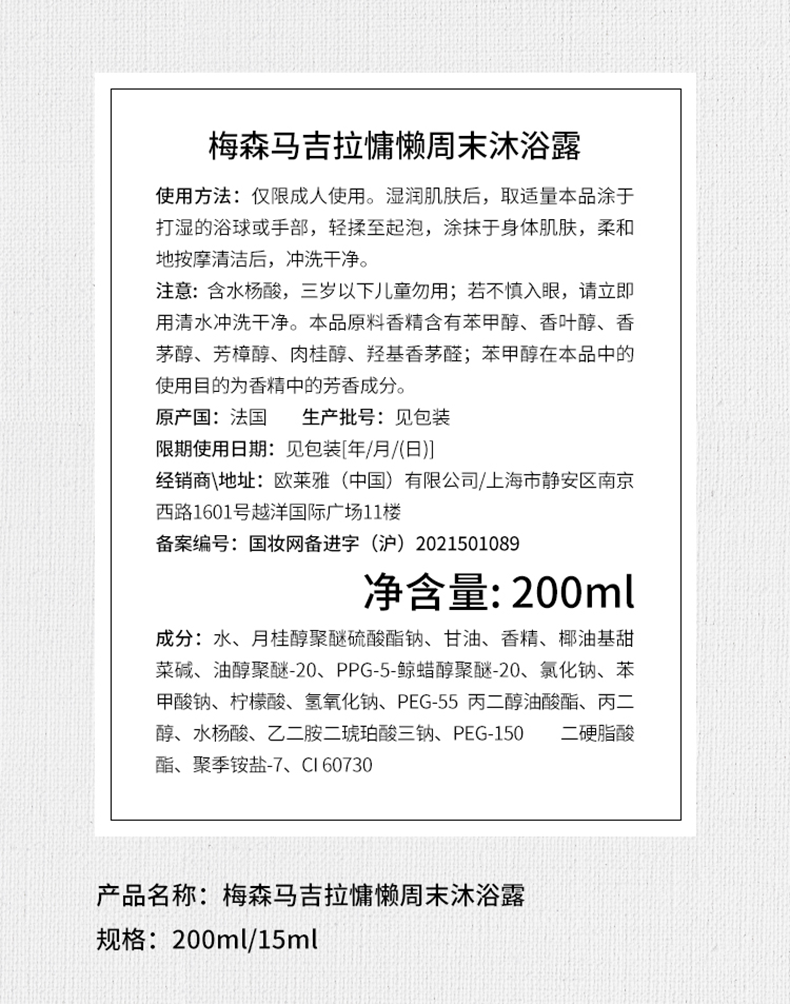 MaisonMargiela 马丁梅森马吉拉慵懒周末身体乳200ml沐浴露200ml 容易吸收不油腻