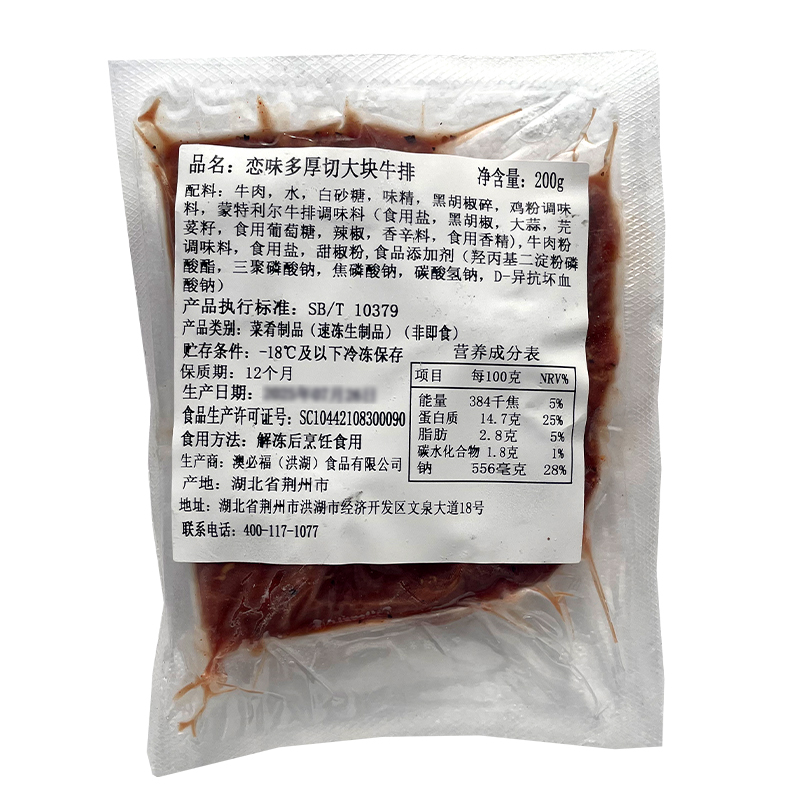 恋味多厚切大块牛排200g 商用大块牛扒(顺丰发货)