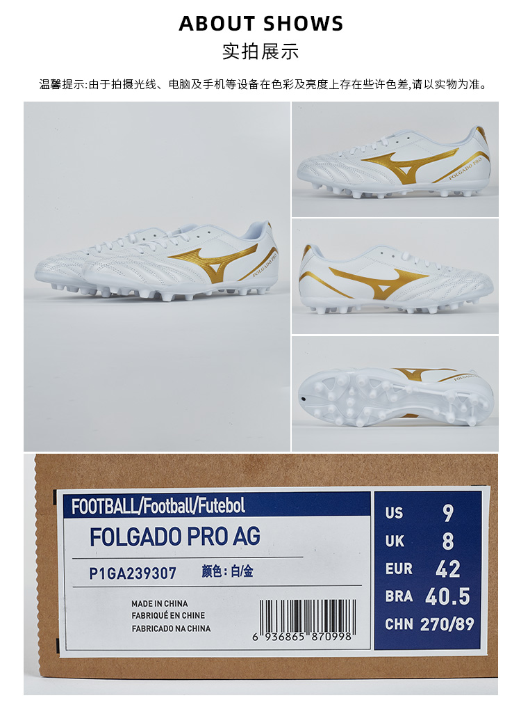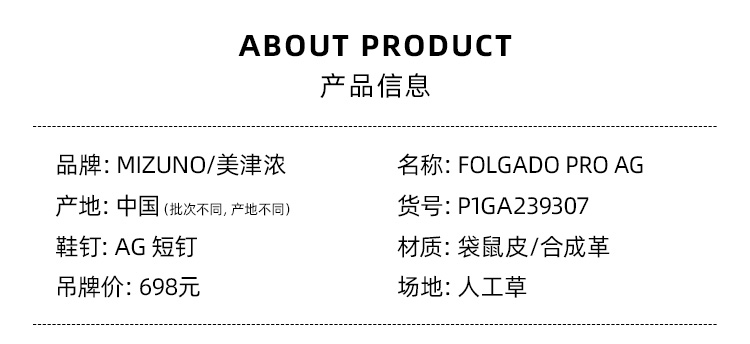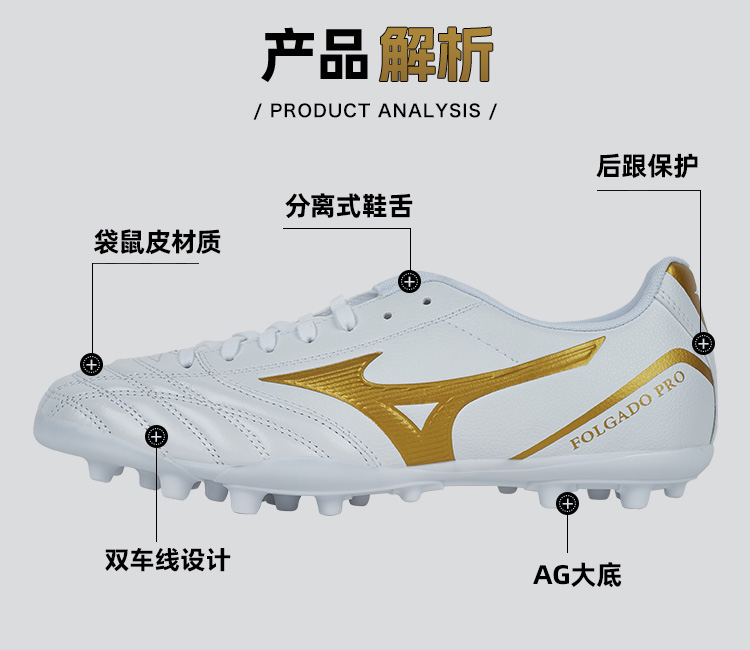 SFS 美津浓Folgado Pro中端AG短钉袋鼠皮人造草低帮耐磨足球鞋男