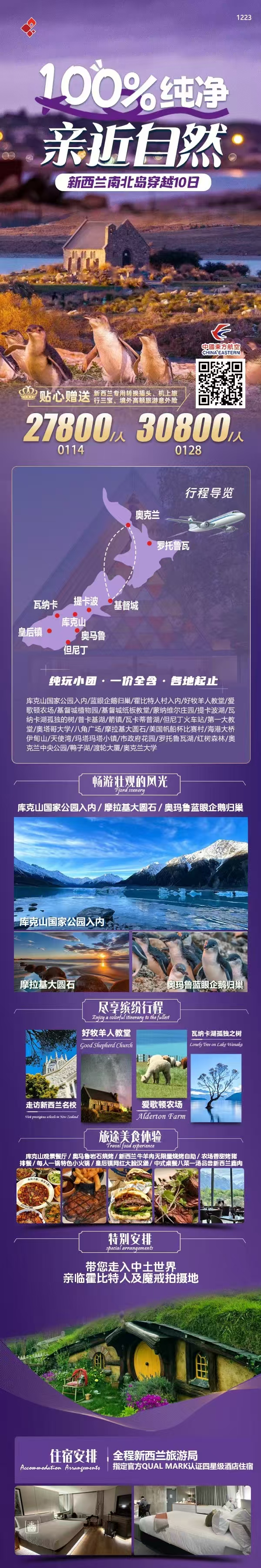 【境外】【100%纯净 亲近自然】新西兰南北岛穿越10日