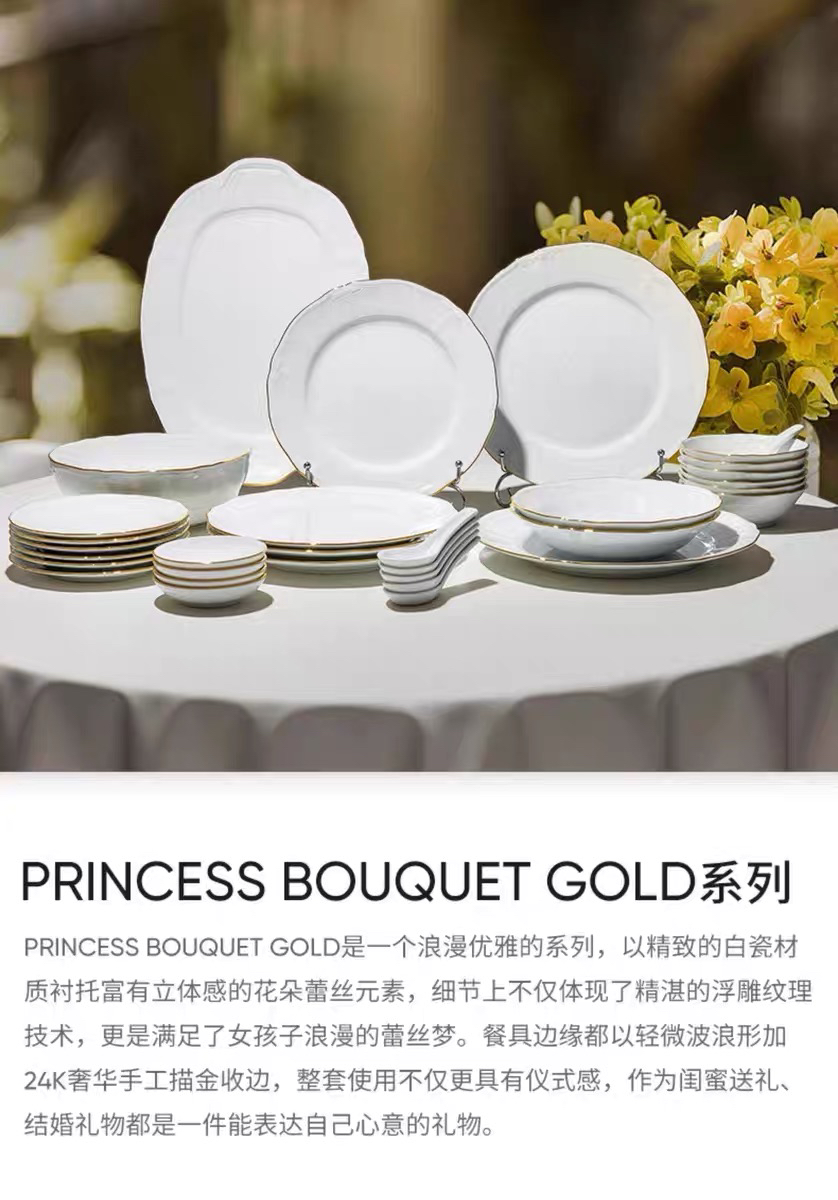Noritake则武 PRINCESS BOUQUET浮雕蕾丝餐具套装家用组合乔迁礼