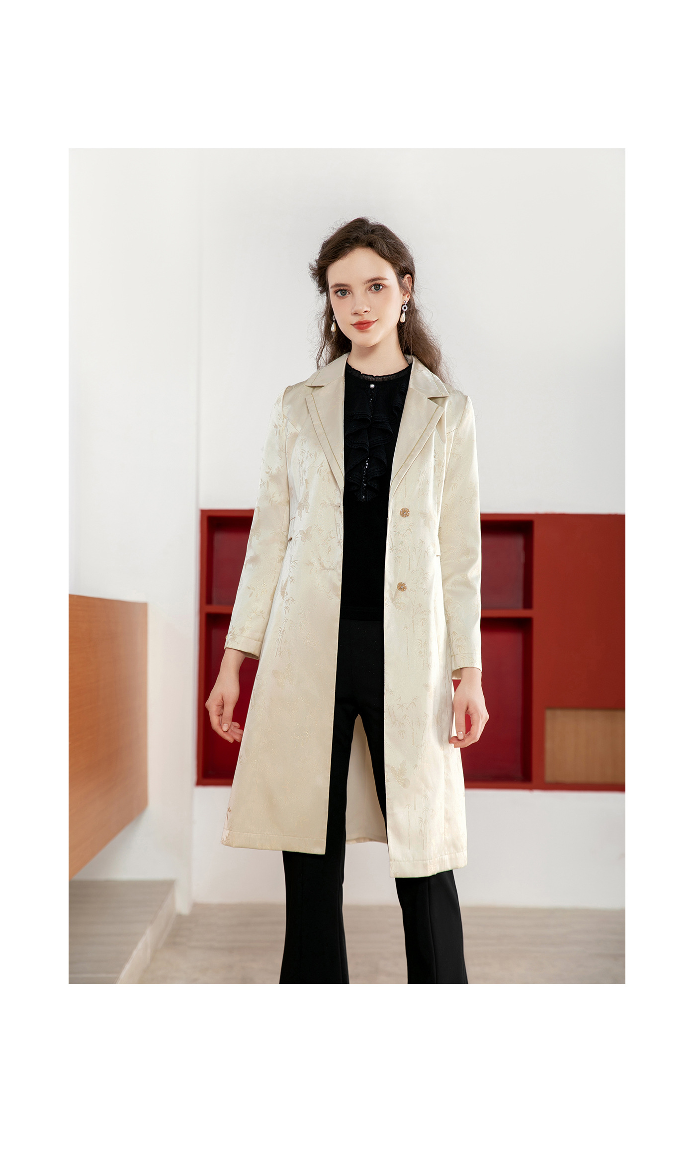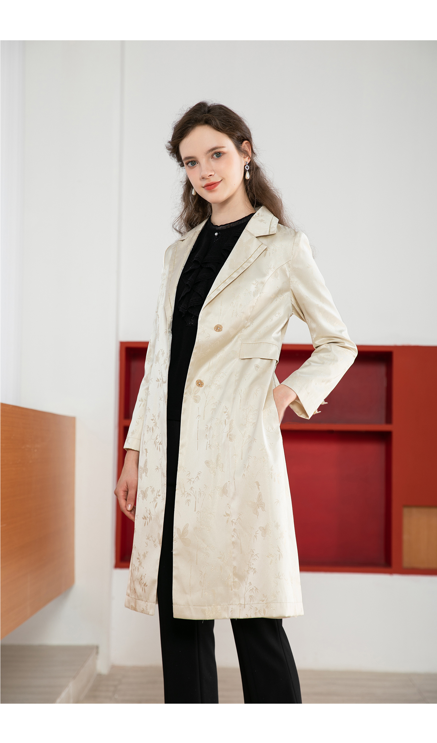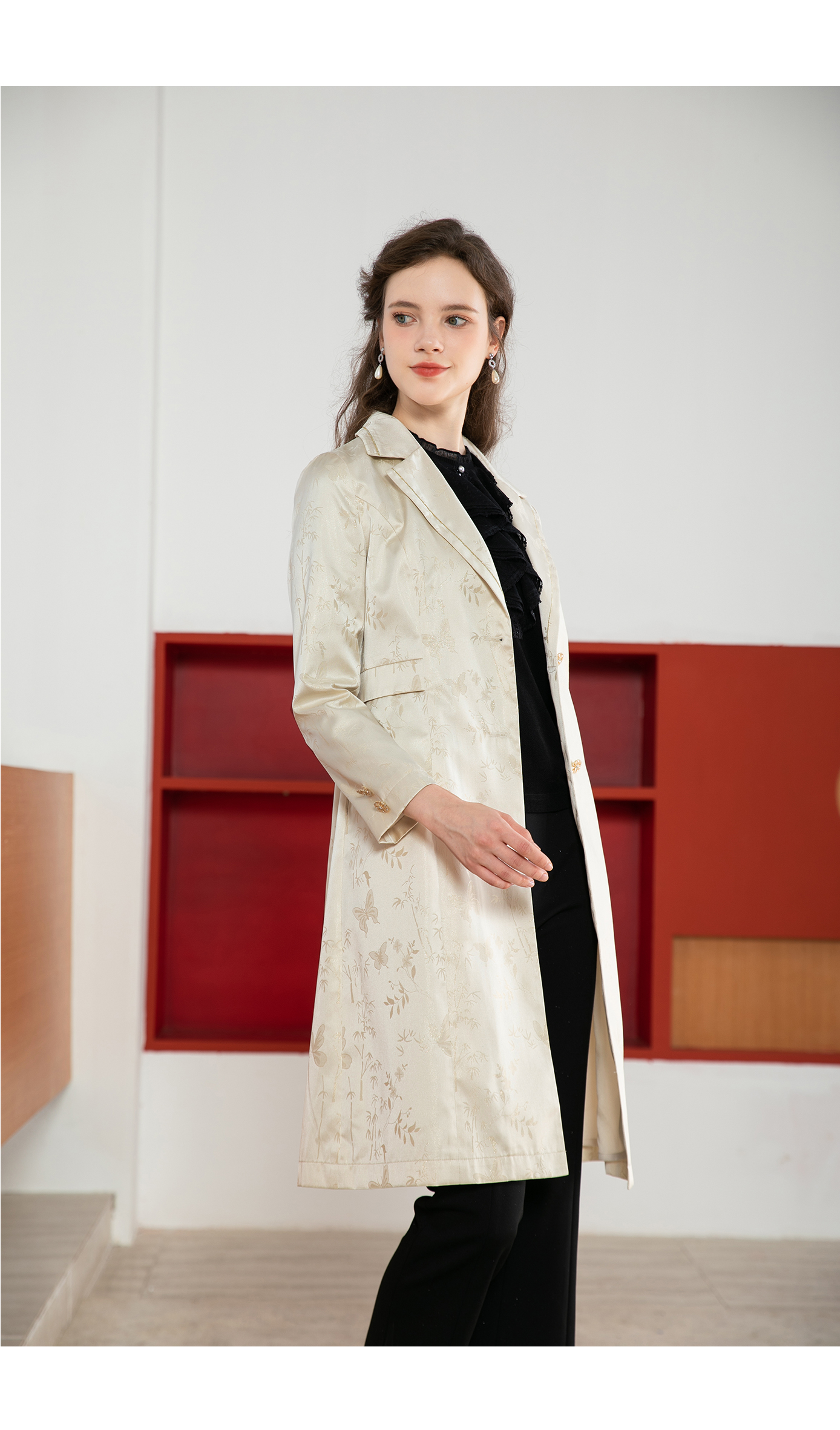 司歌缎面国风风衣单排扣长袖秋R901239X