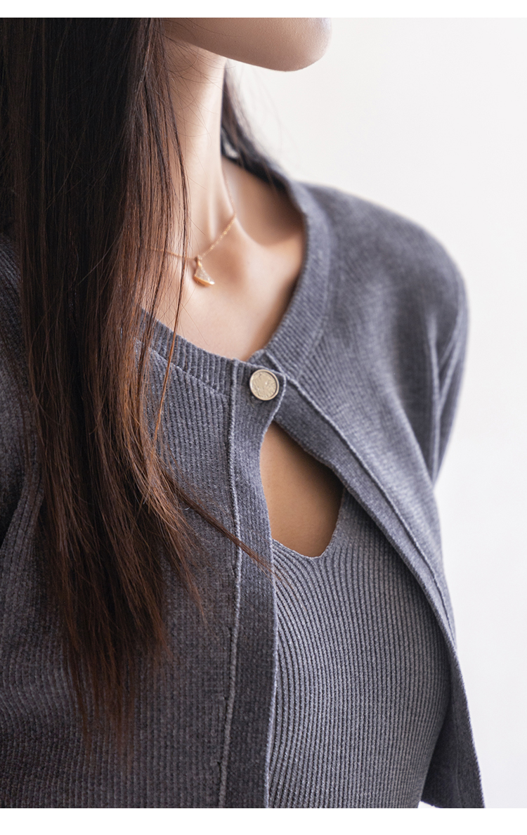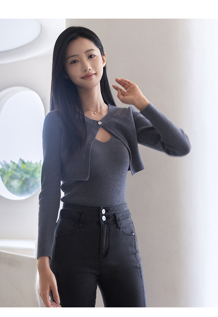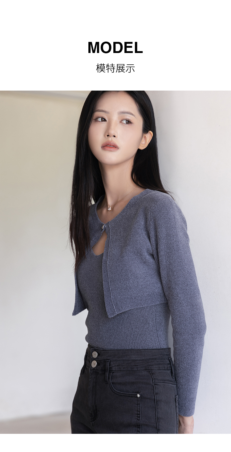 NUTS商场同款春秋设计感小众气质修身毛织短外套两件套女4330506A1