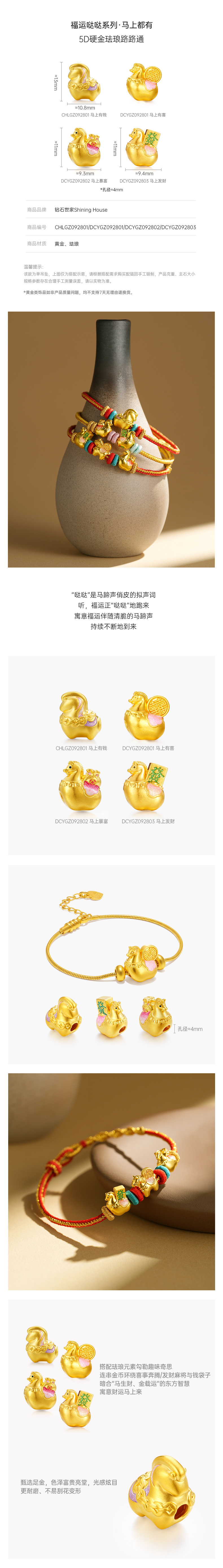 【定价黄金】【现货】钻石世家 福气哒哒系列 足金串珠 马上都有马上有钱马上有囍马上发财马上暴富吊饰【黄金不支持7天无理由退换货】预计3天发货