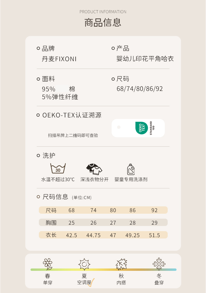 【云优选】FIXONI婴幼儿短款连体衣-限时清仓