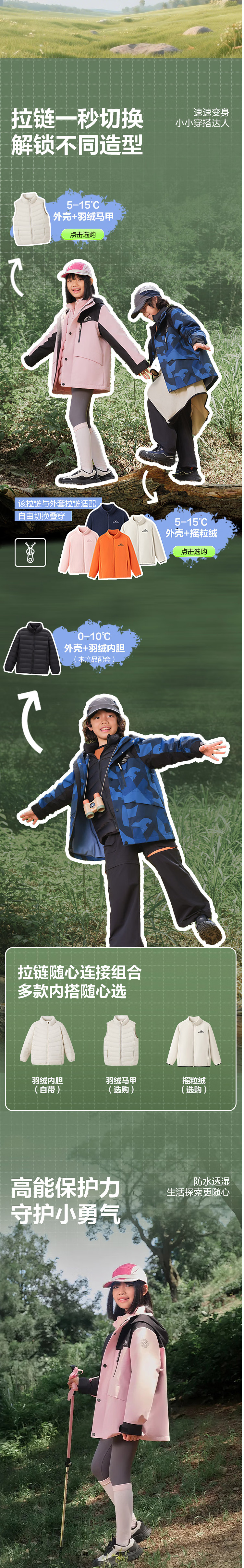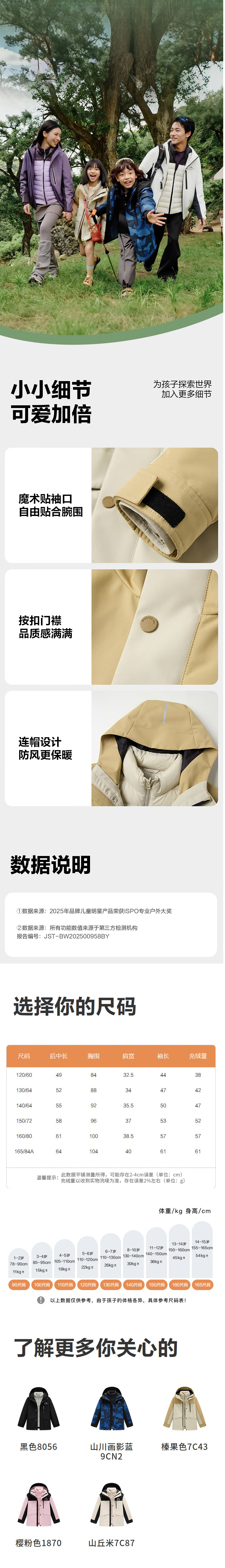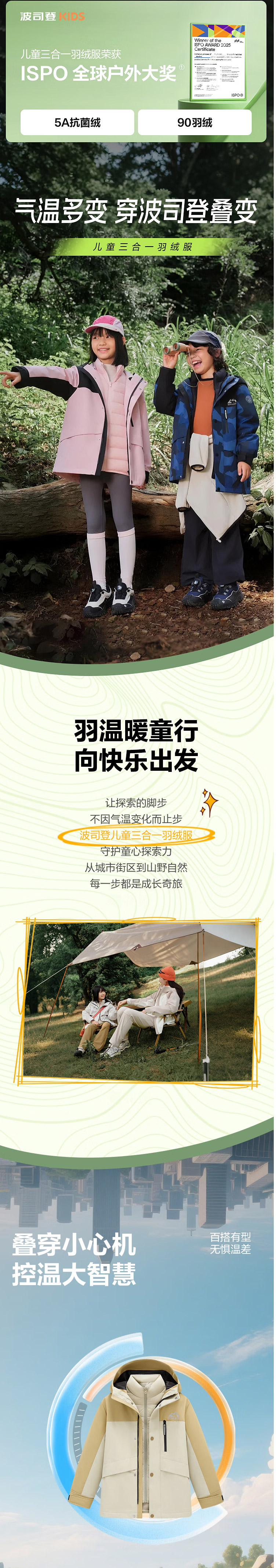 波司登2025秋冬新款男女童三合一羽绒服户外防泼水外套T250131340