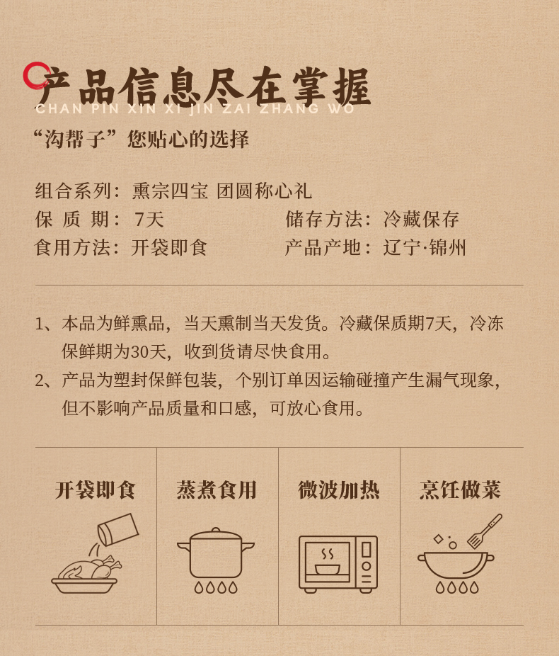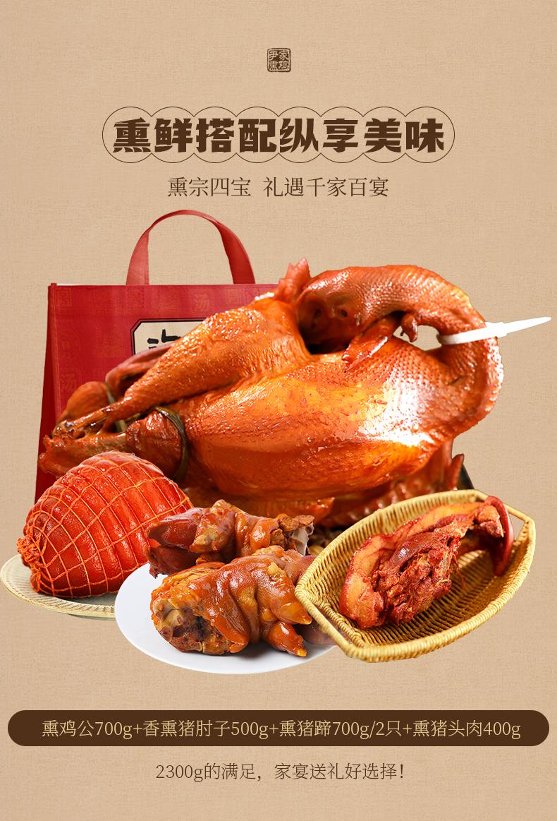 沟帮子礼盒系列 熏宗四宝团圆称心礼盒 熏鸡公700g+熏猪蹄700g+香熏猪肘子500g+熏猪头肉400g 共2300g