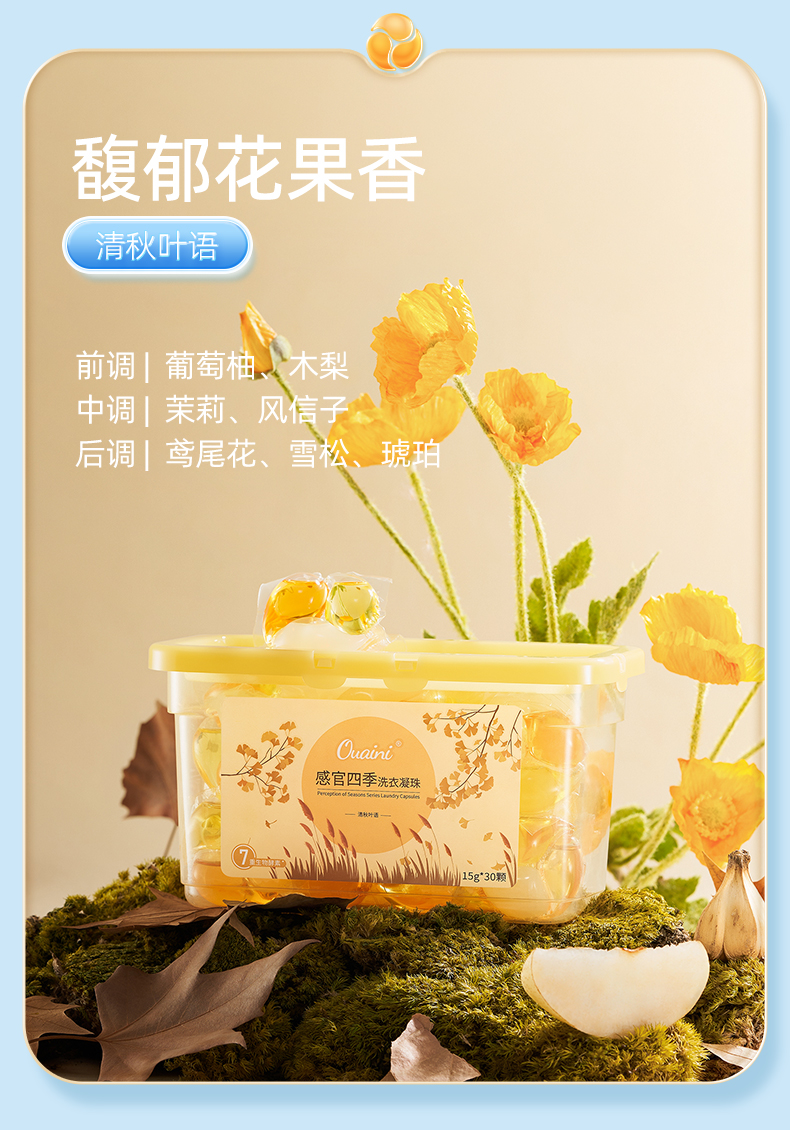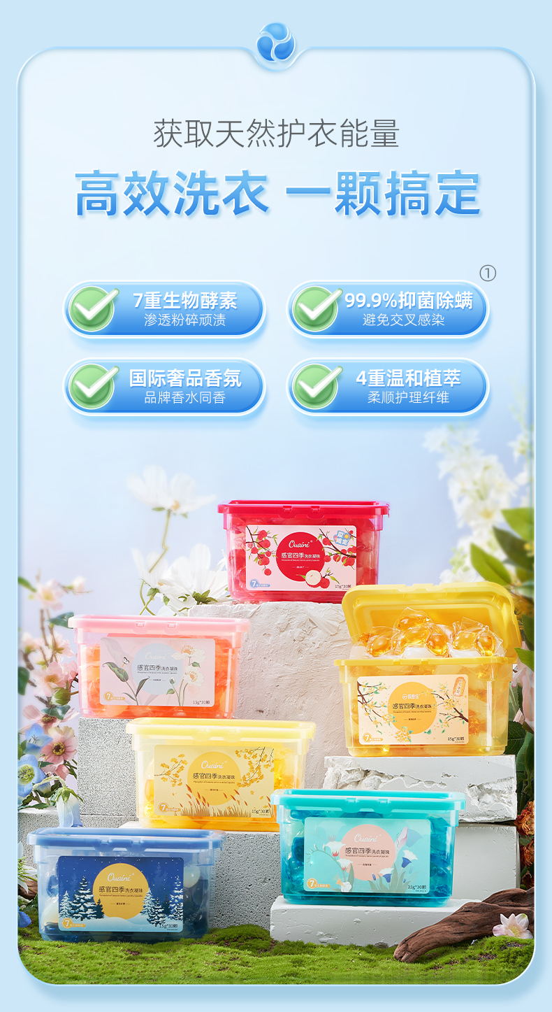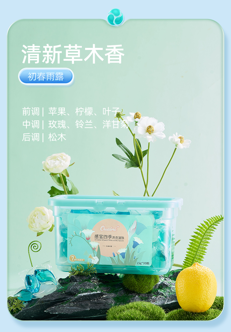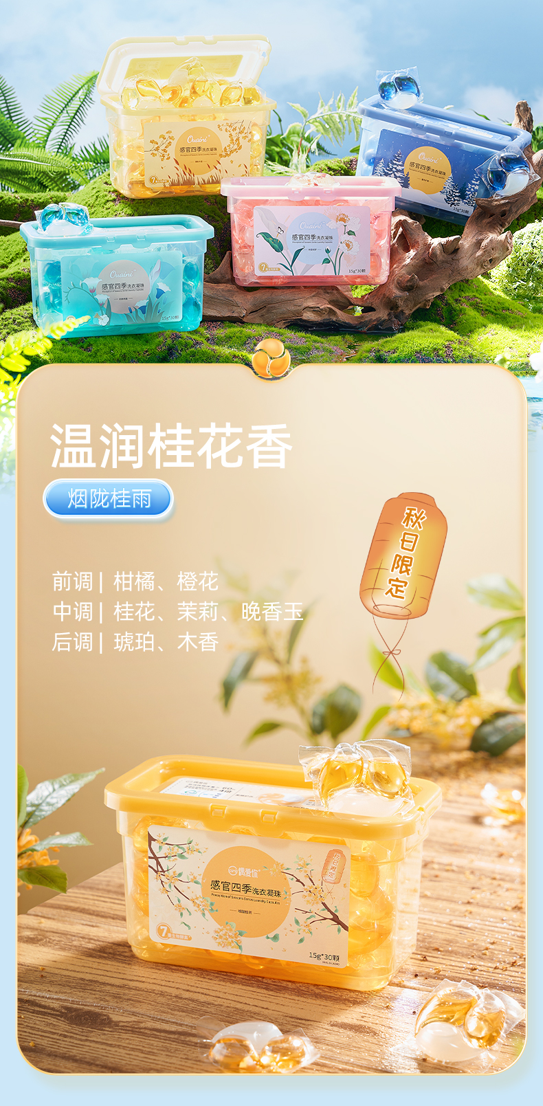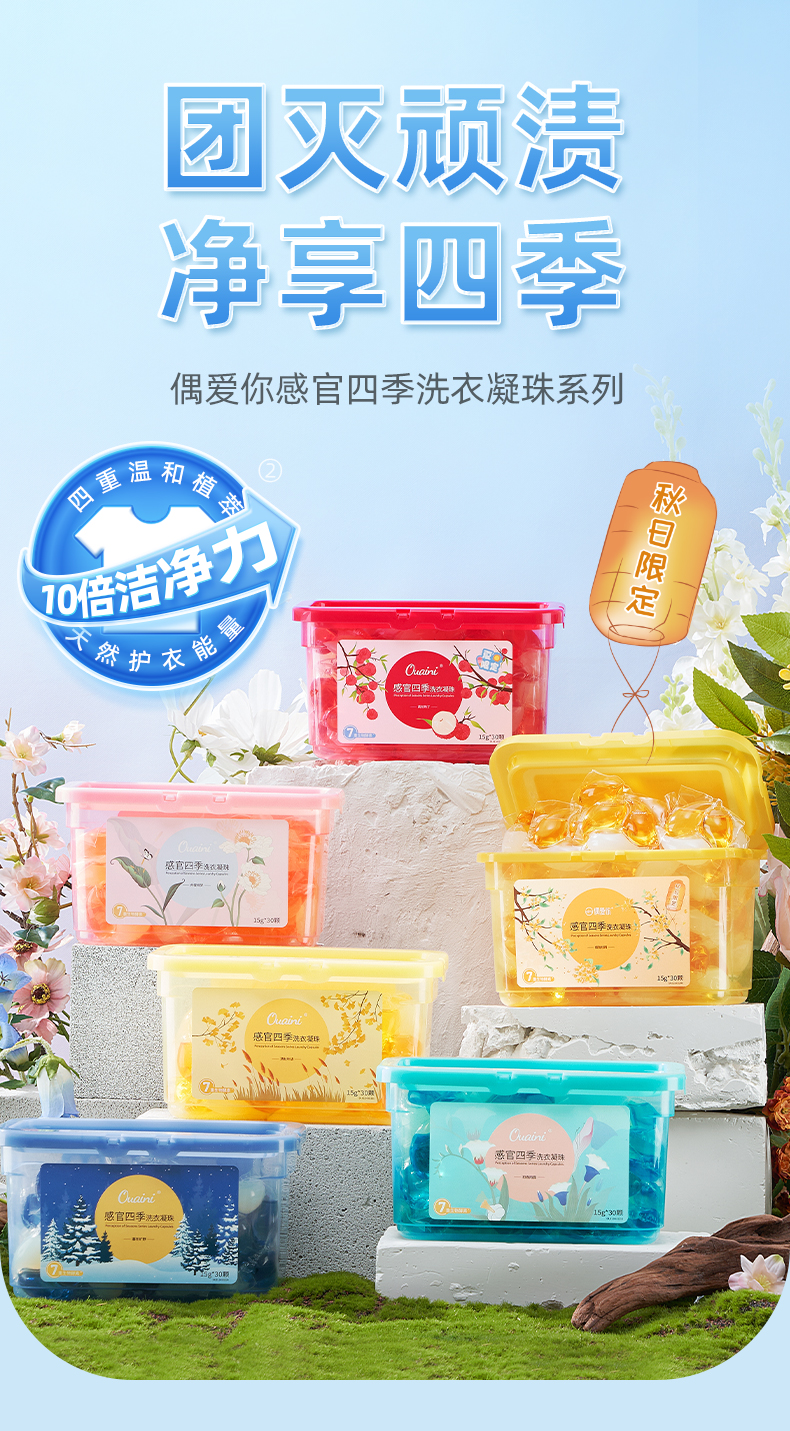 【5盒】偶爱你感官四季洗衣凝珠15g*30颗盒装(春+夏+秋+冬+桂花共5盒)