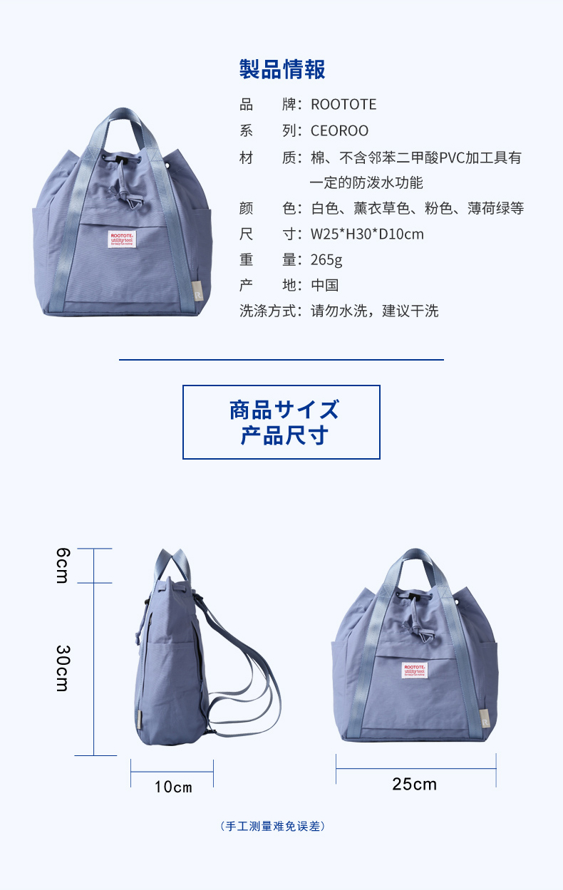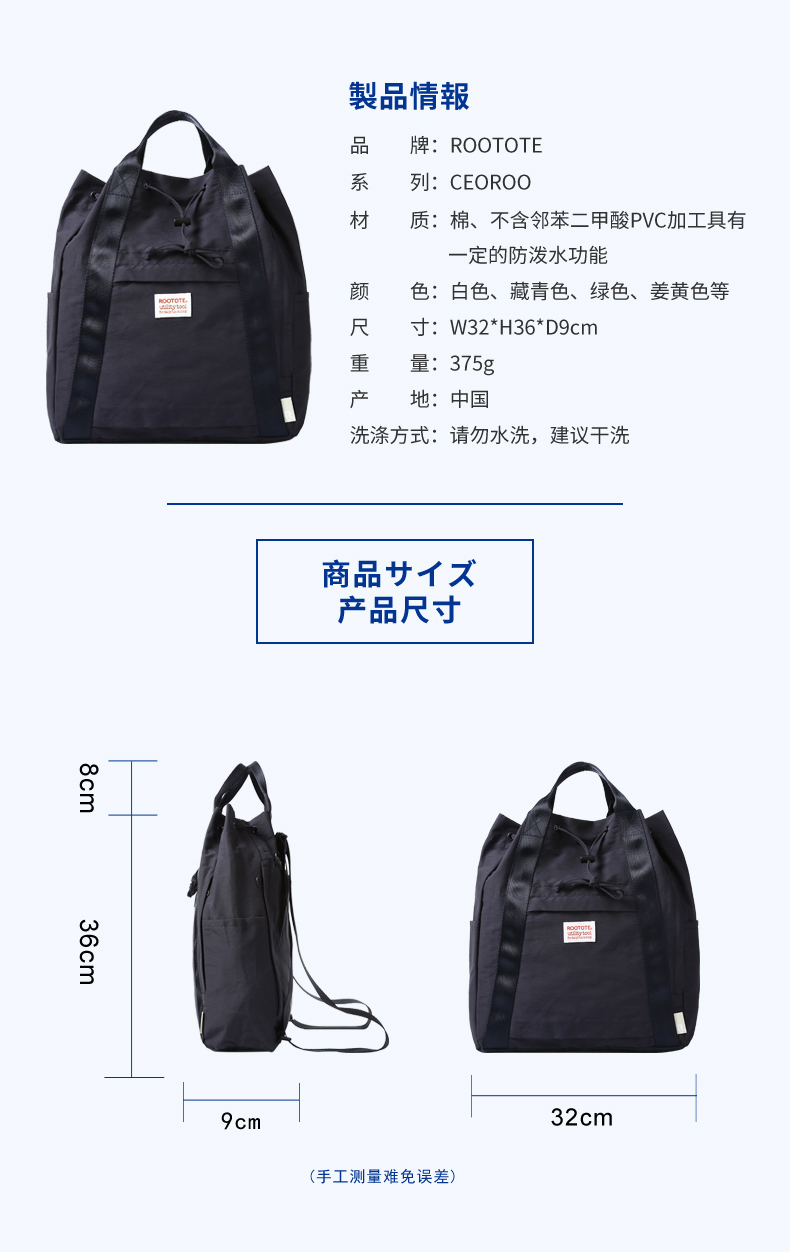 Rootote防泼水抽绳双肩包