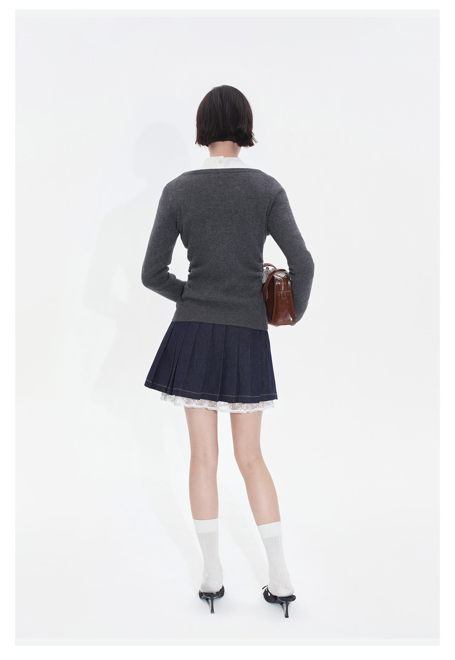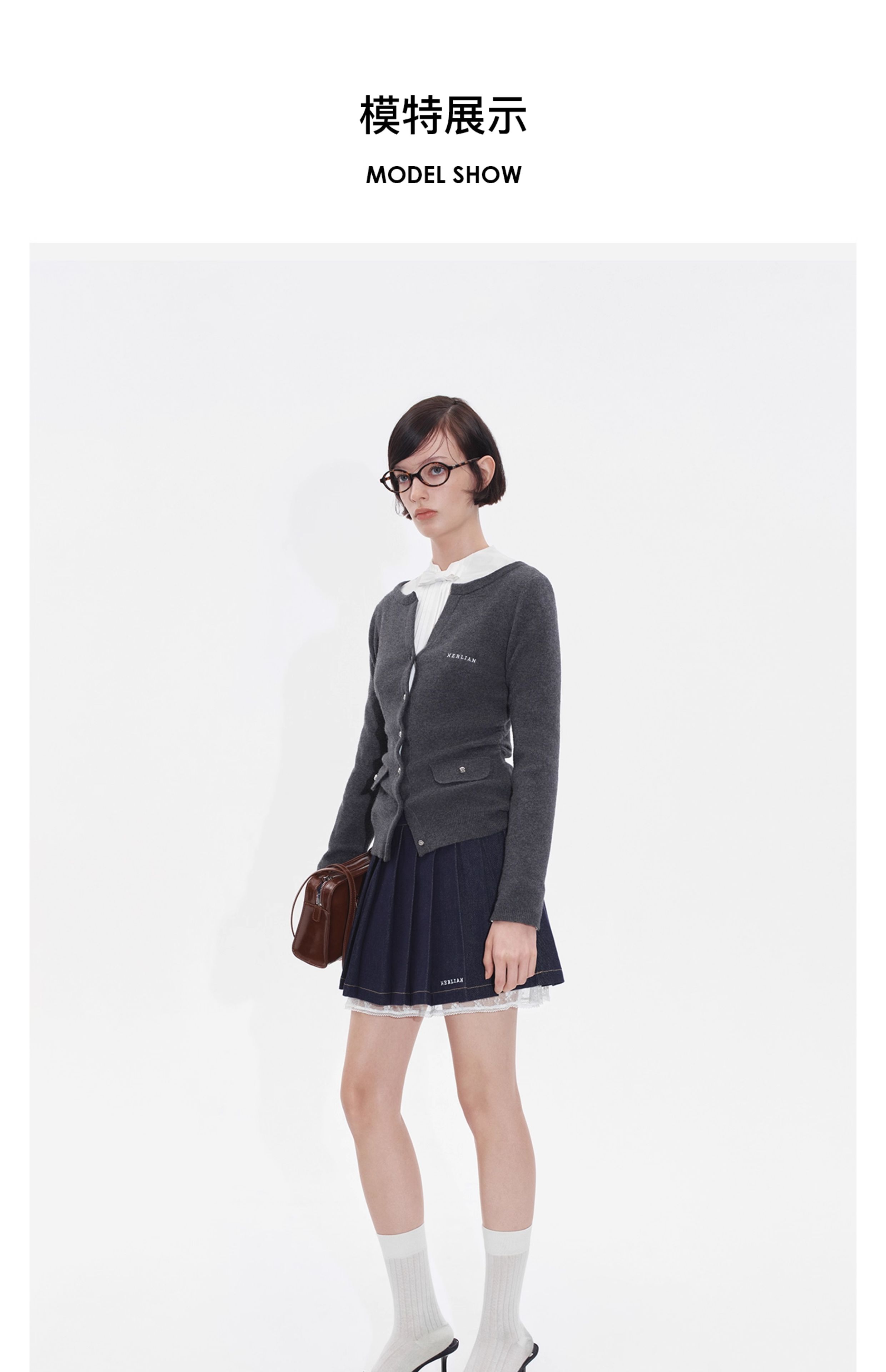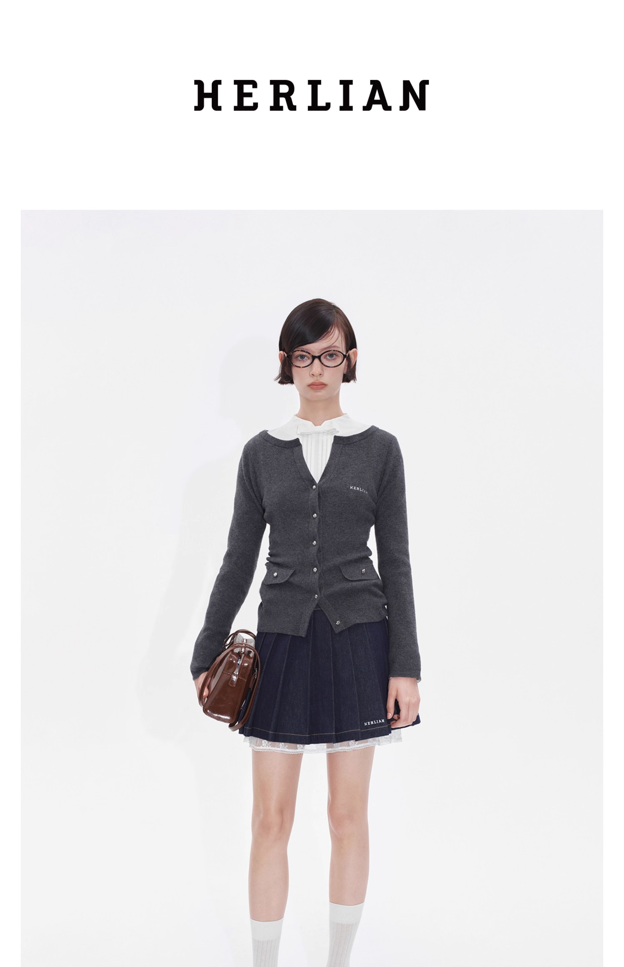 HERLIAN2025年秋季新品女士针织开衫腰部褶皱收腰设计一字肩外套