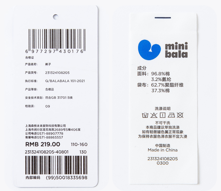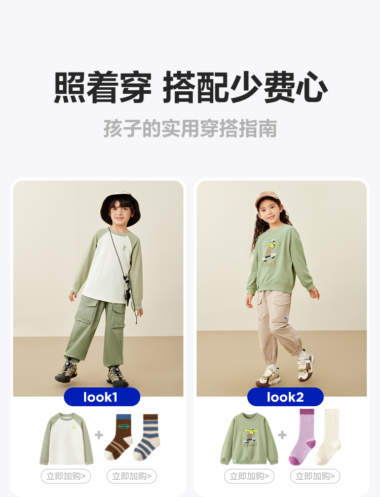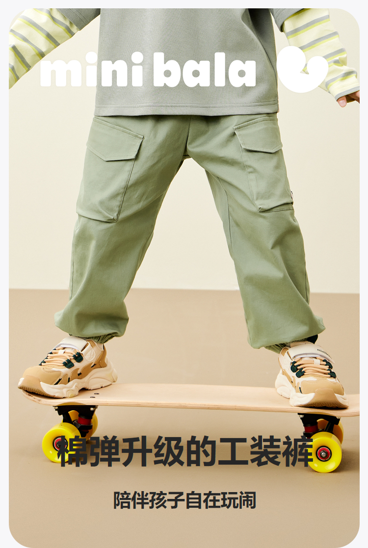 【工装裤】迷你巴拉男女童时尚亲肤舒适儿童长裤秋季新款裤子