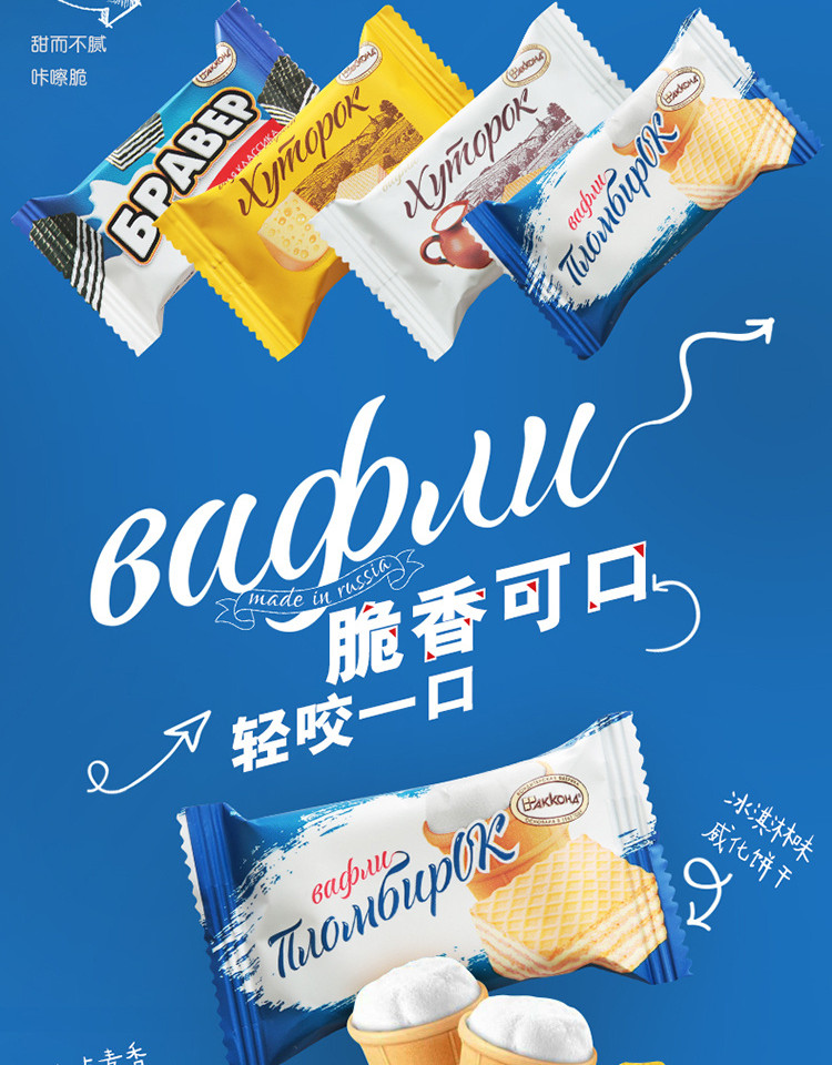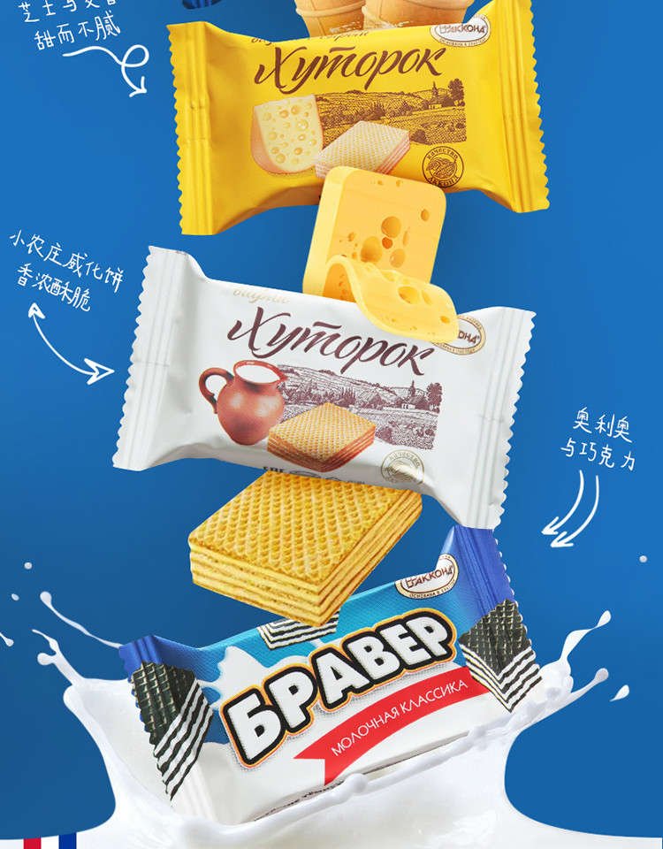 俄罗斯阿孔特系列威化饼干202g 多种口味酥松细腻香浓美味一口一块不易碎 152434/152435/152436/152437/152438