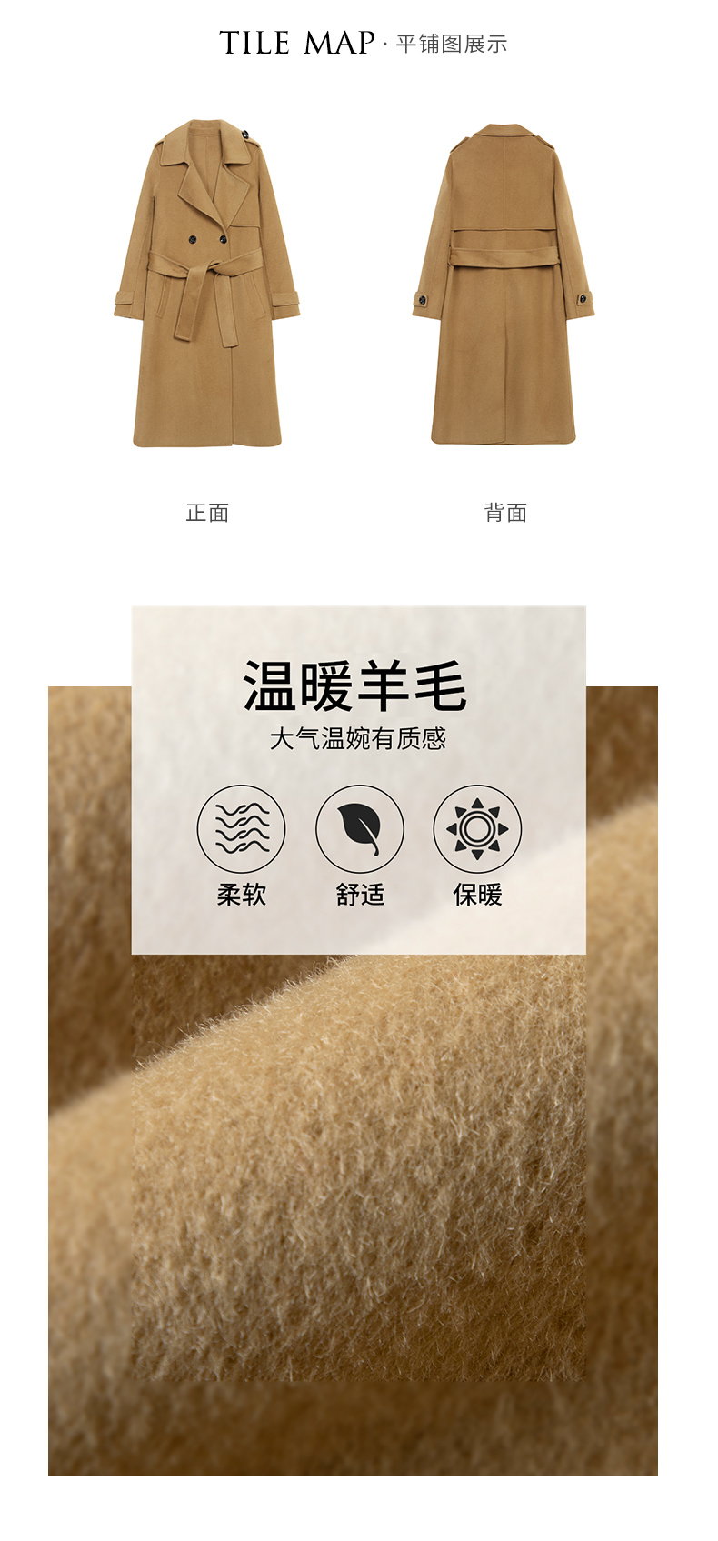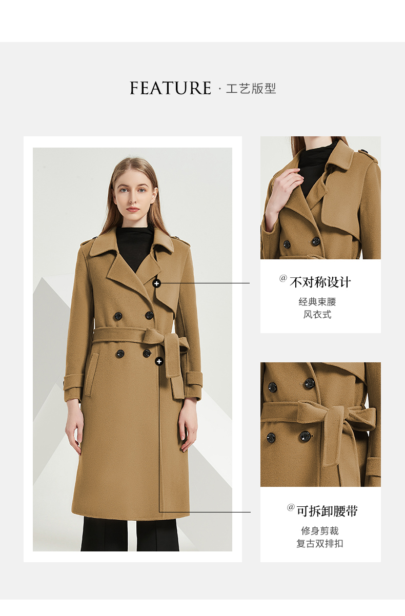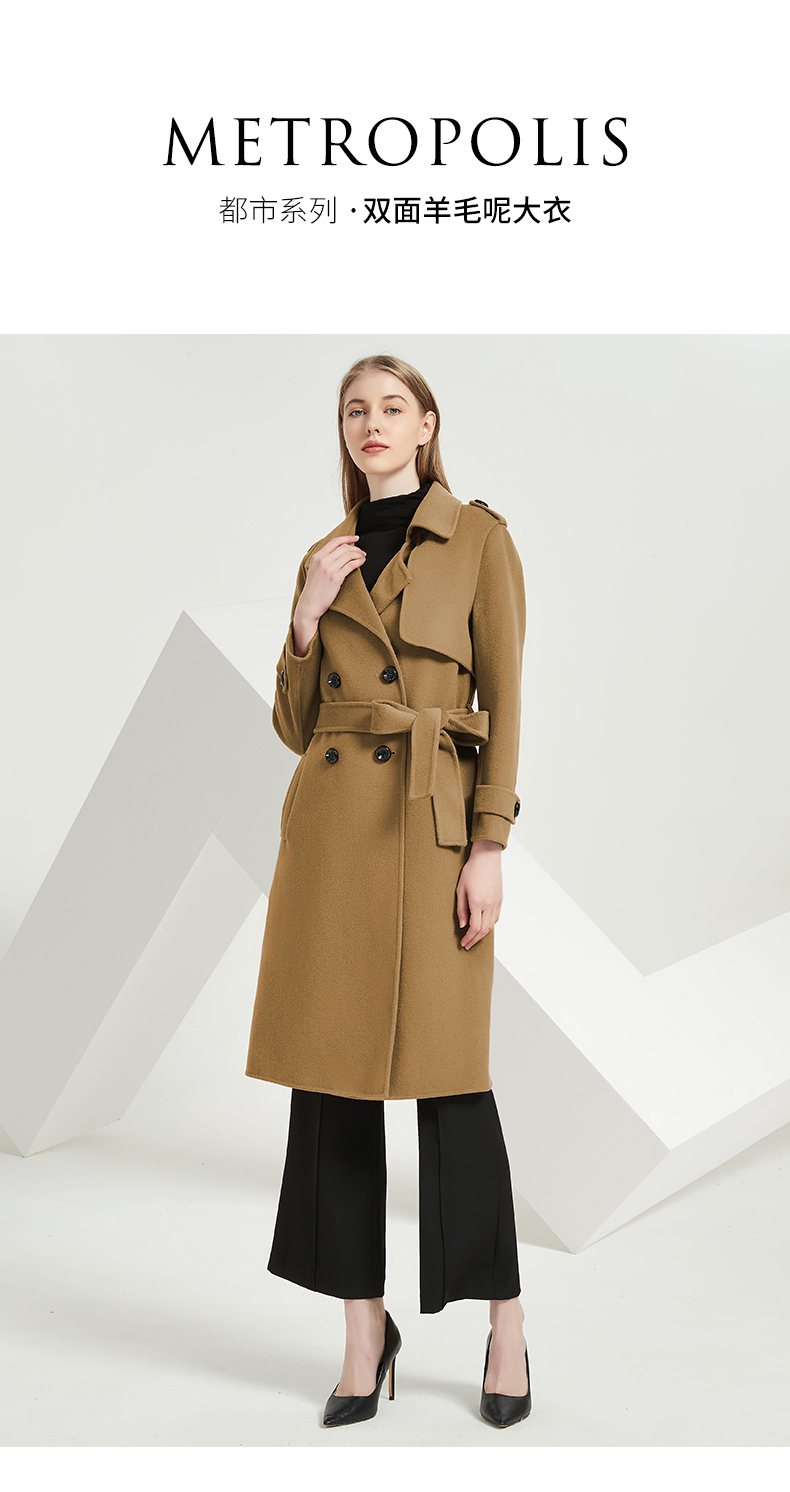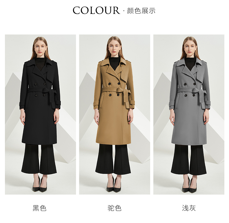 IWY/新款浅灰色驼色双面中长款毛呢大衣G8520T1013