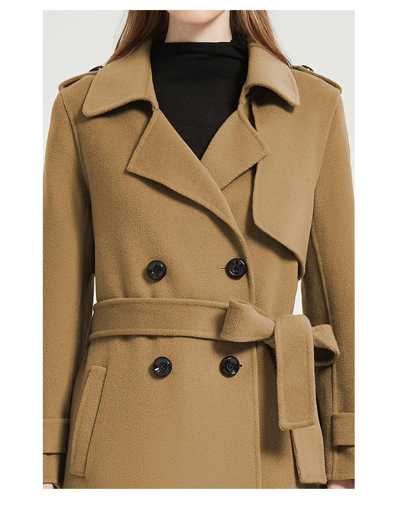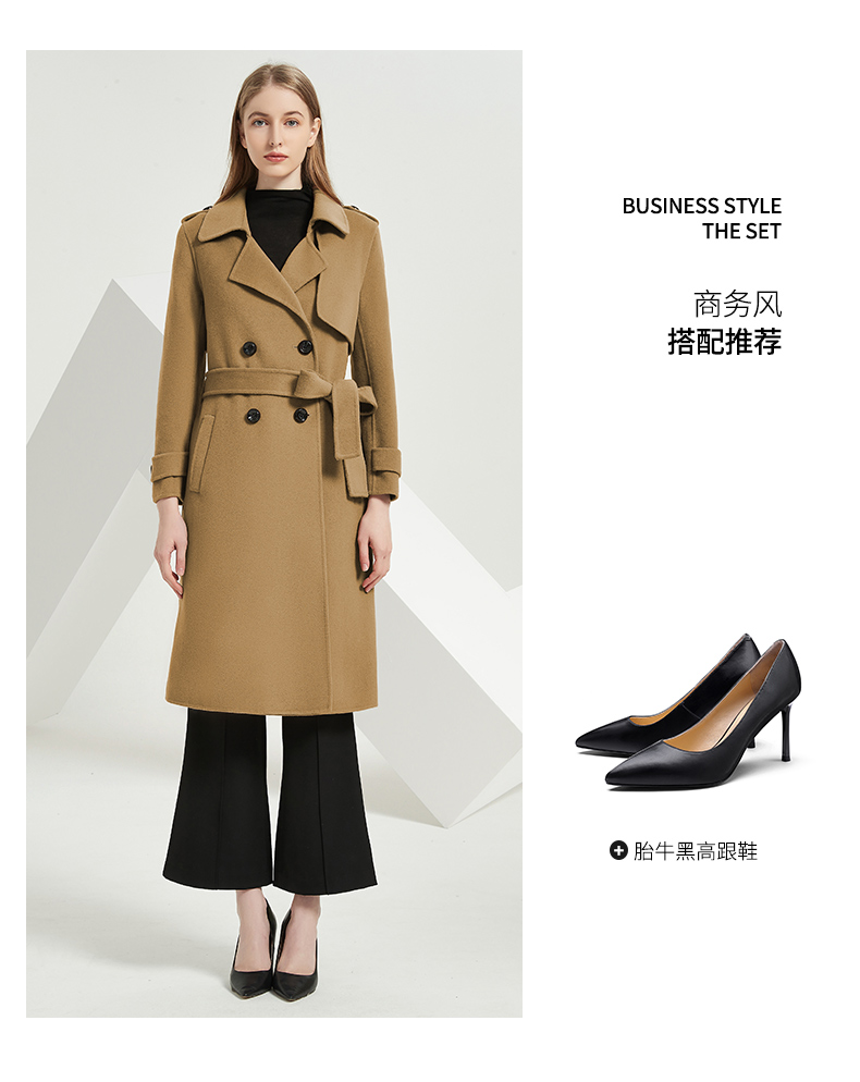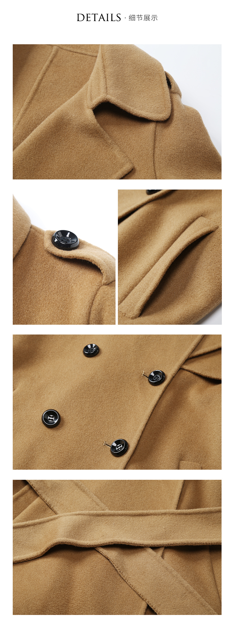 IWY/新款浅灰色驼色双面中长款毛呢大衣G8520T1013