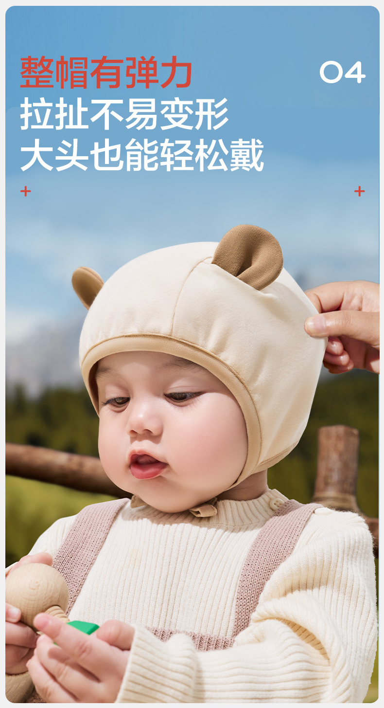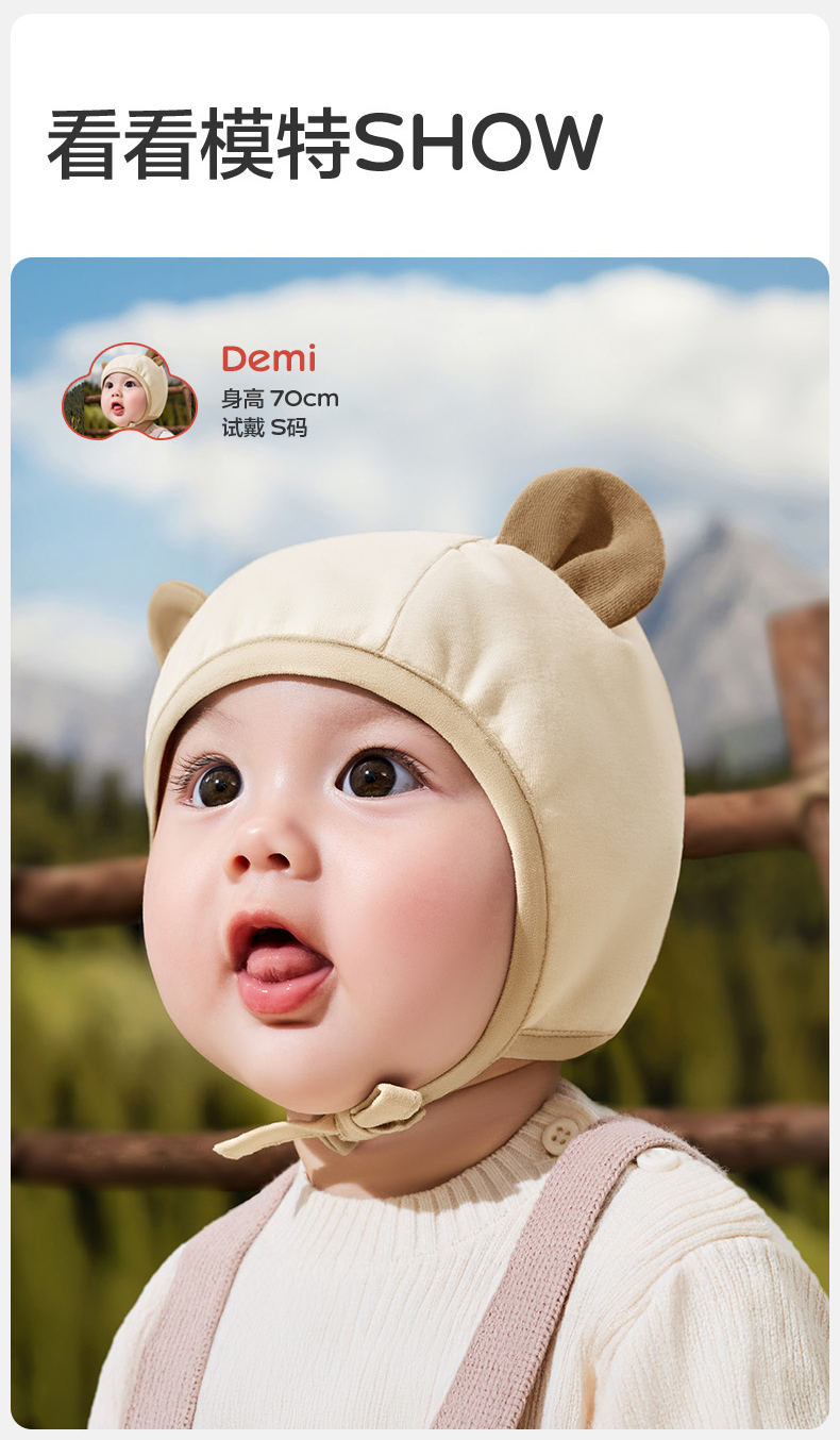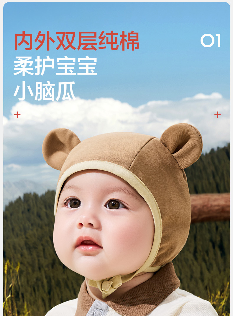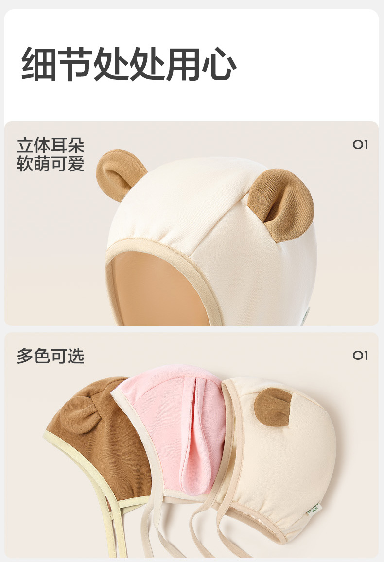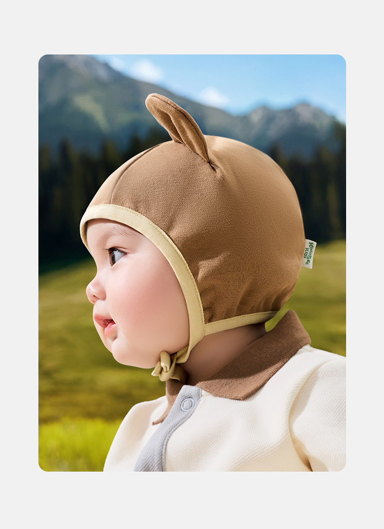 KK树婴儿帽子小月龄宝宝护耳帽男女婴幼儿胎帽新生儿外出帽秋冬款萌萌小耳纯棉帽