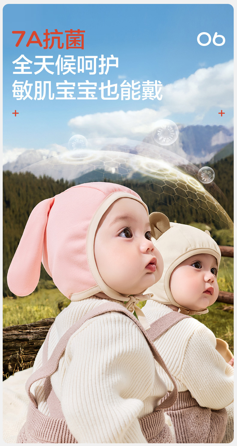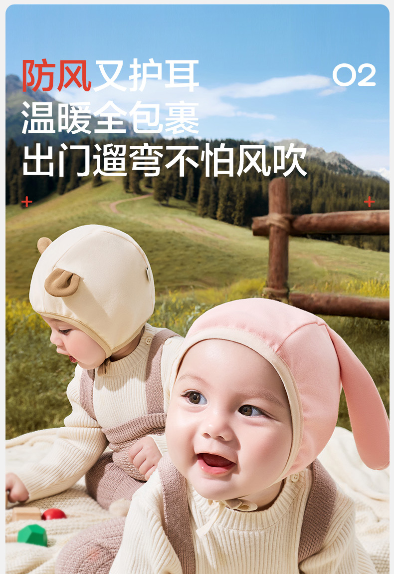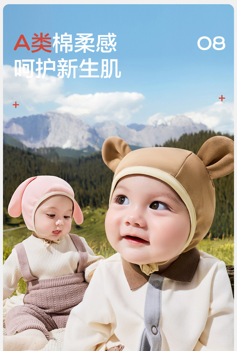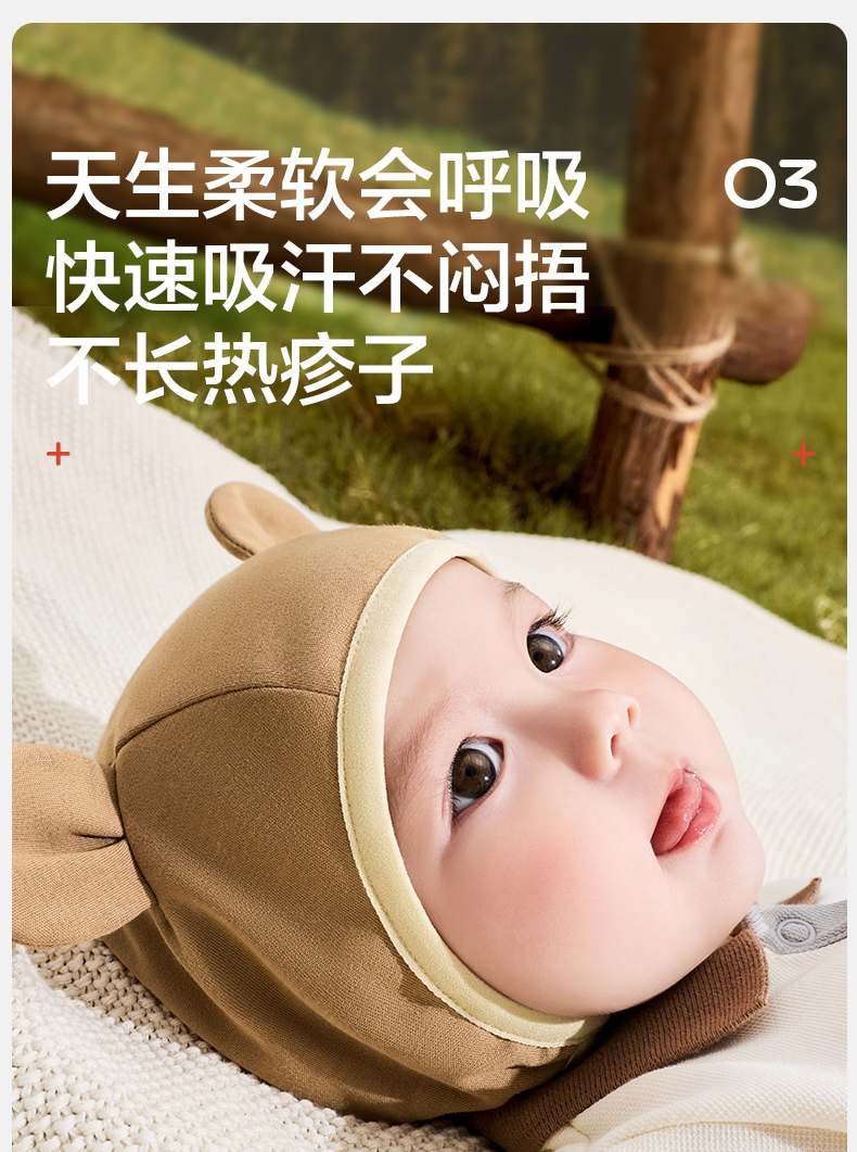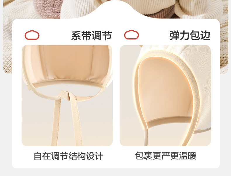 KK树婴儿帽子小月龄宝宝护耳帽男女婴幼儿胎帽新生儿外出帽秋冬款萌萌小耳纯棉帽