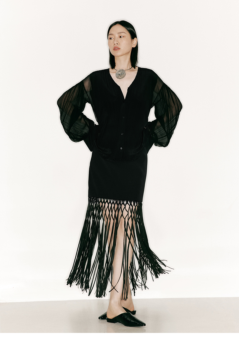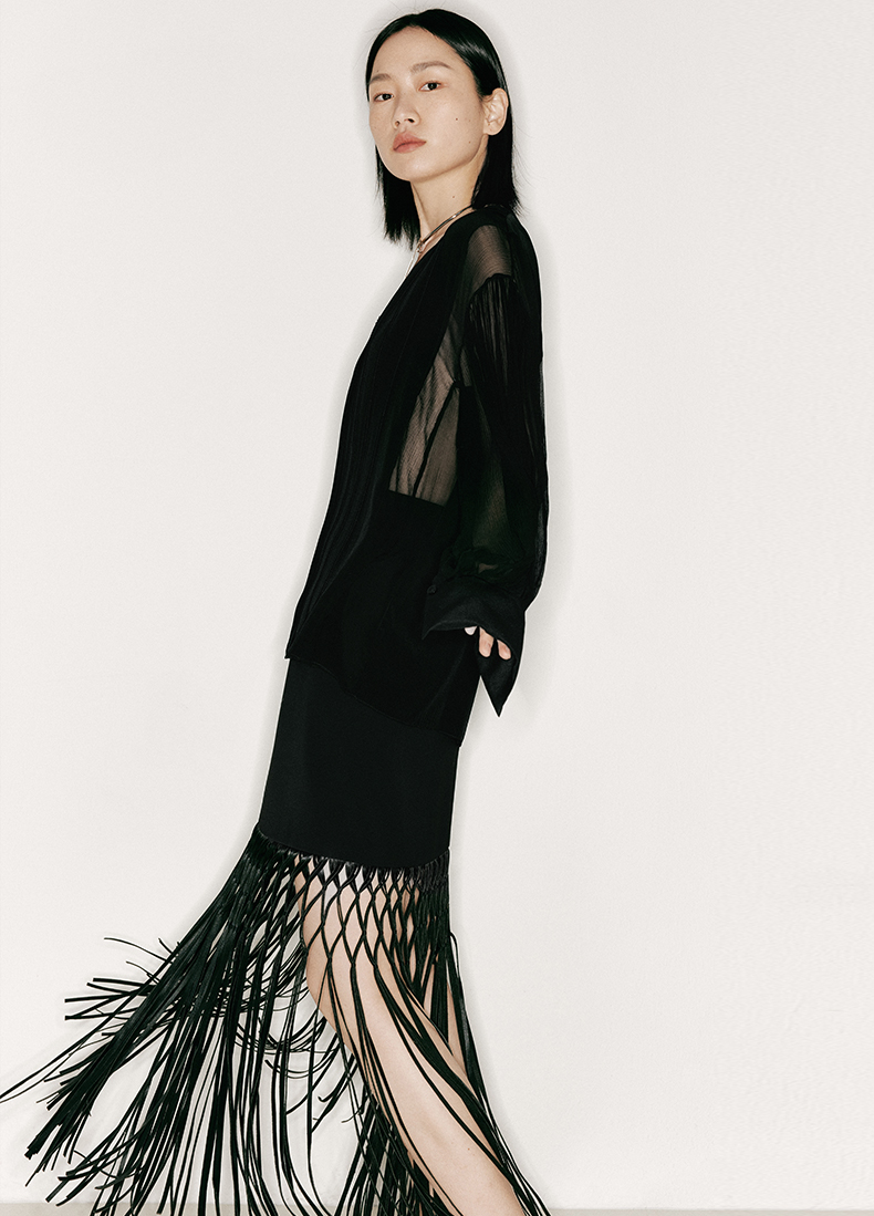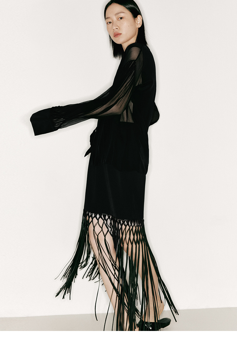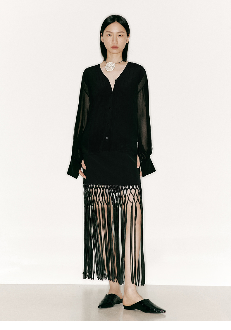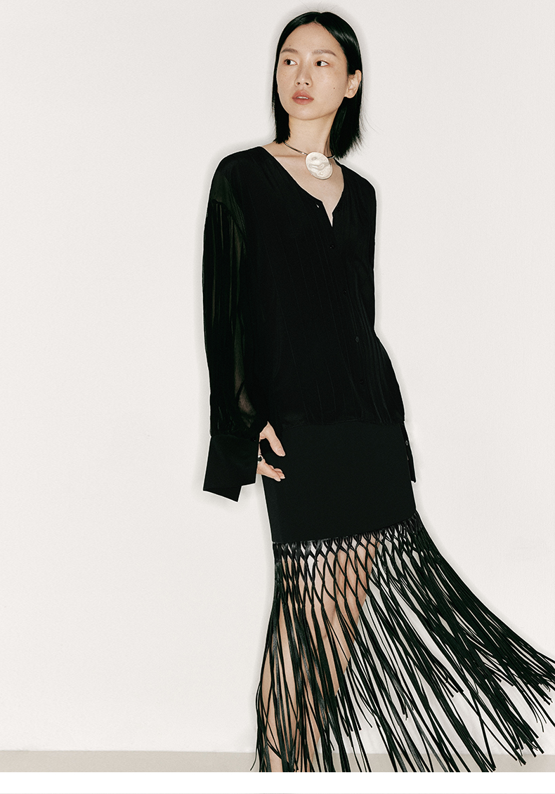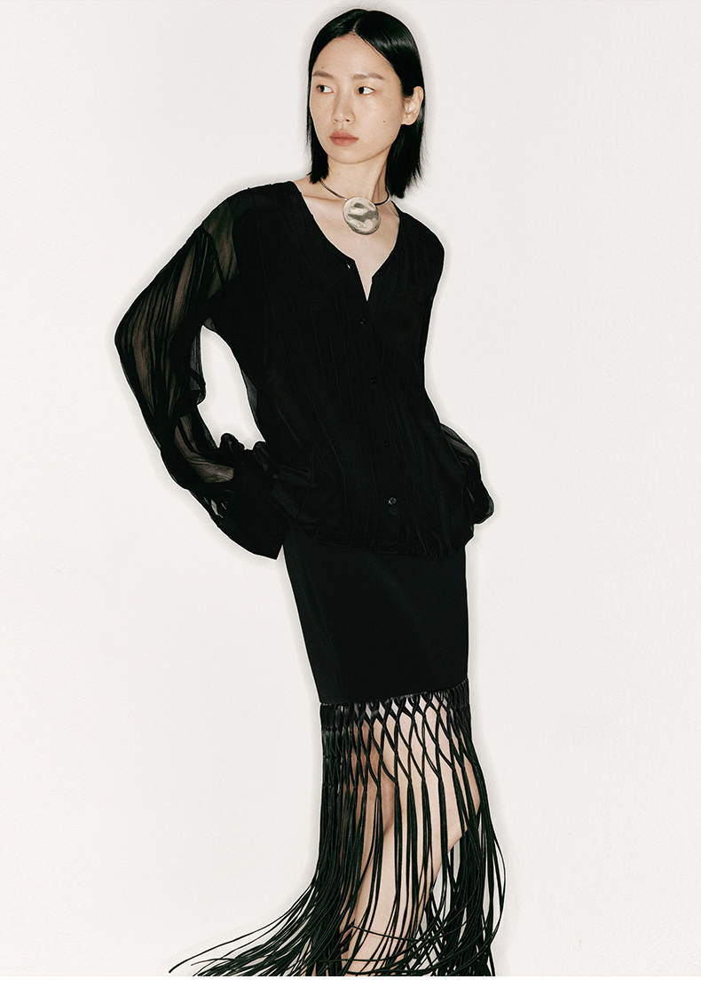 【叠影】虚实相间设计桑蚕丝长袖上衣/230026