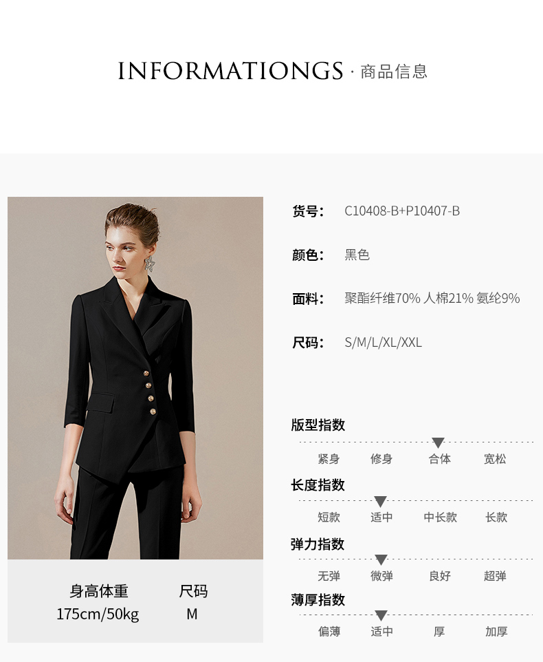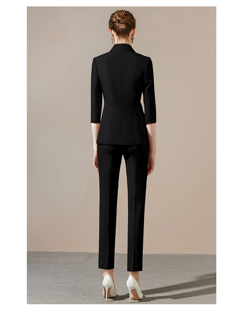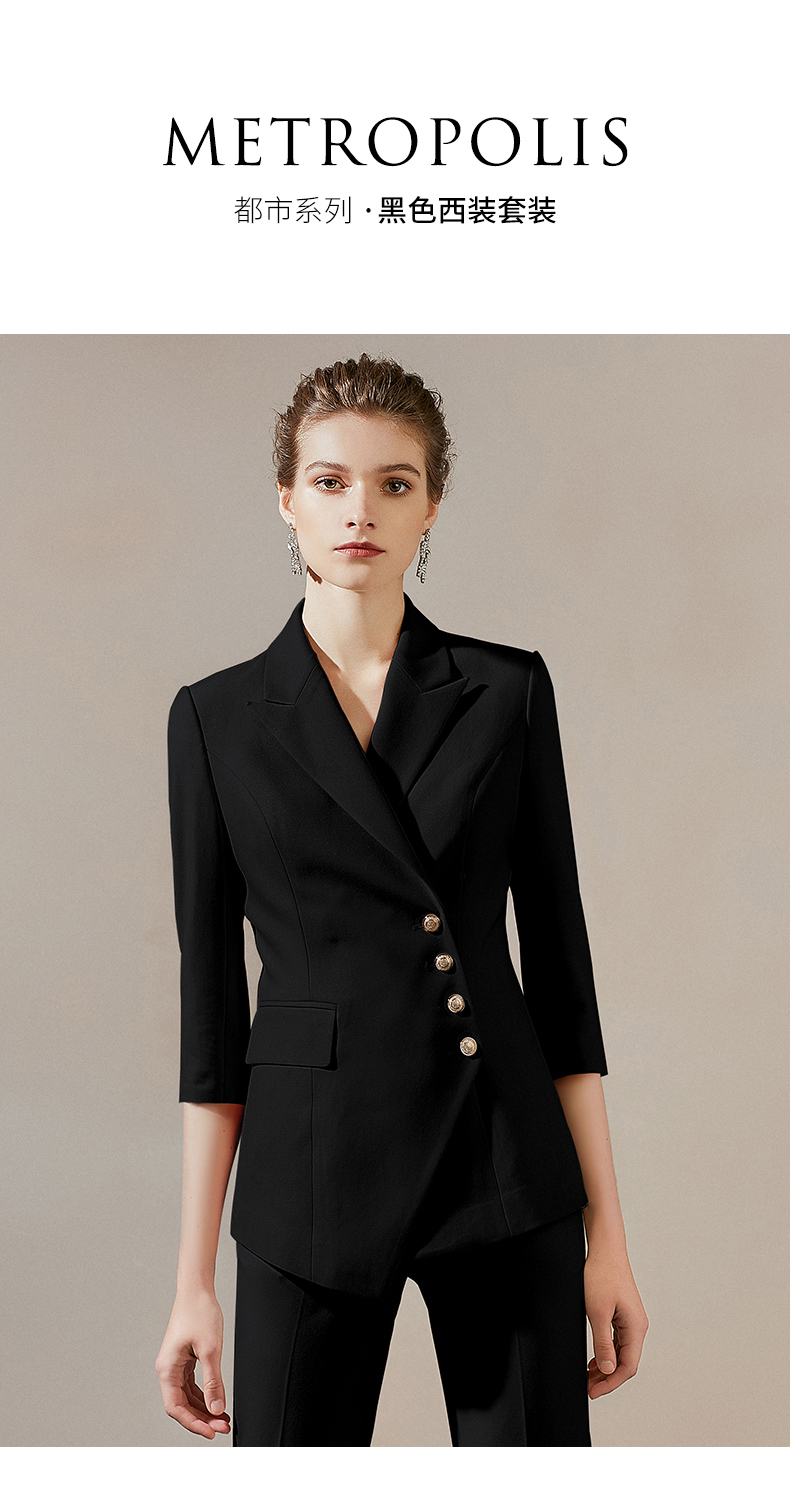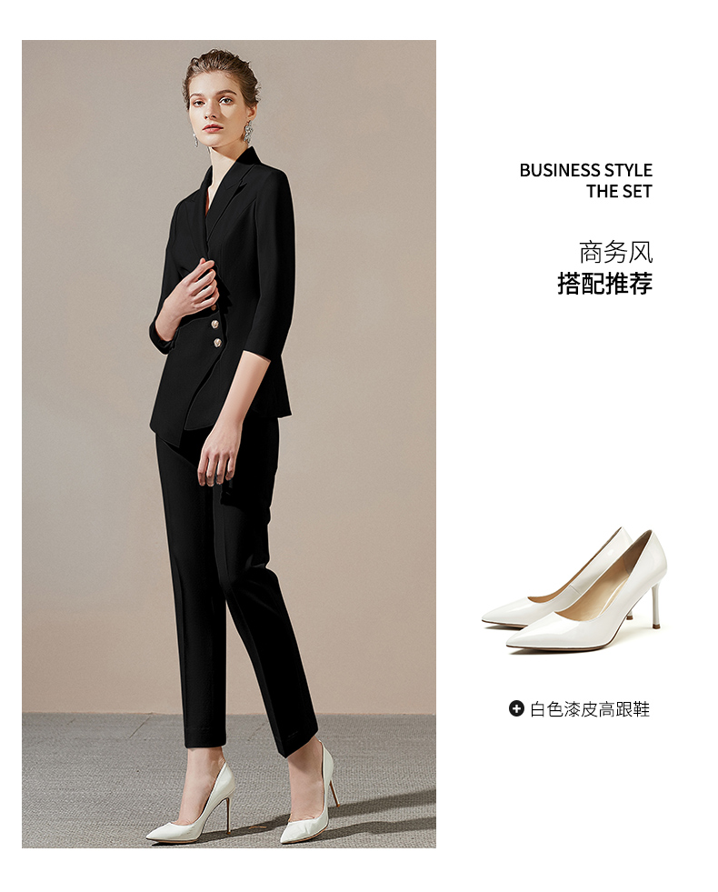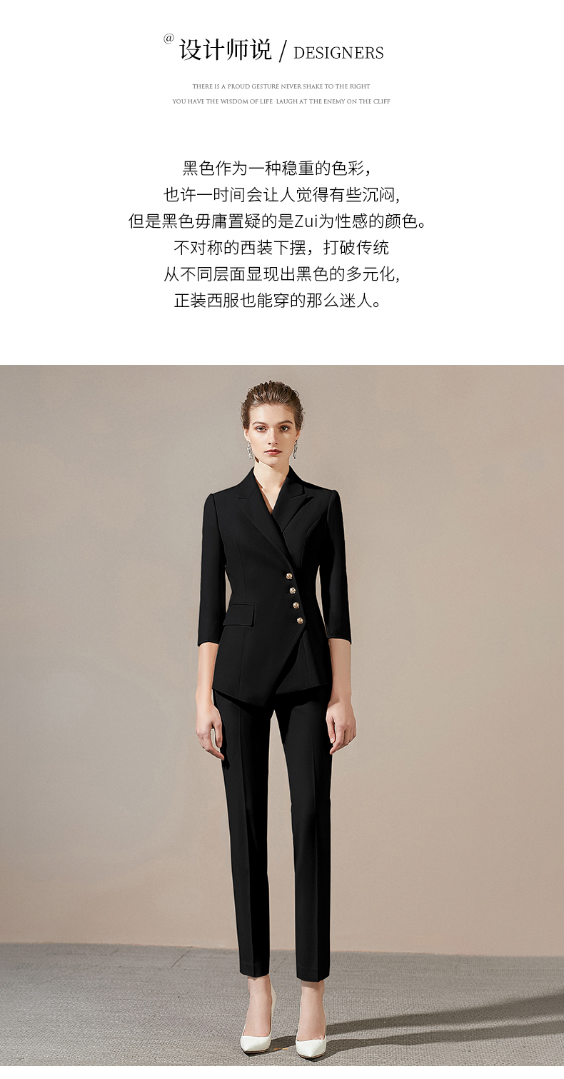 IWY/黑色西装套装女职业装女正装英伦时尚高端面试七分袖工作服C10408-B+P10407-B