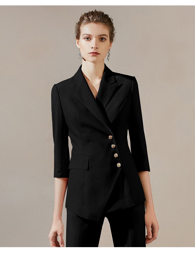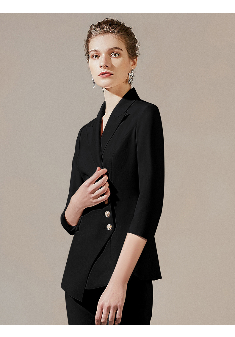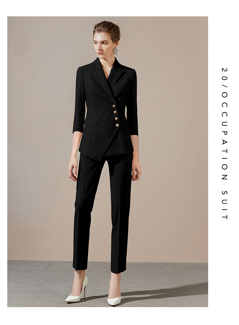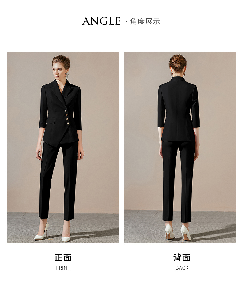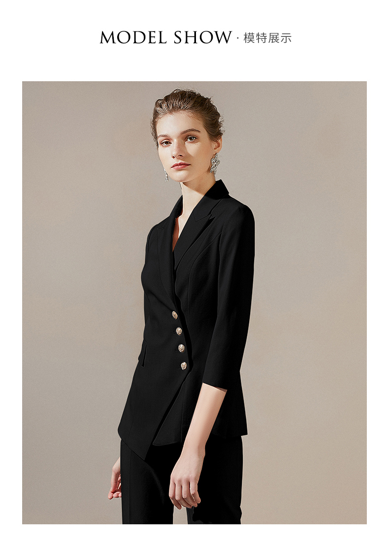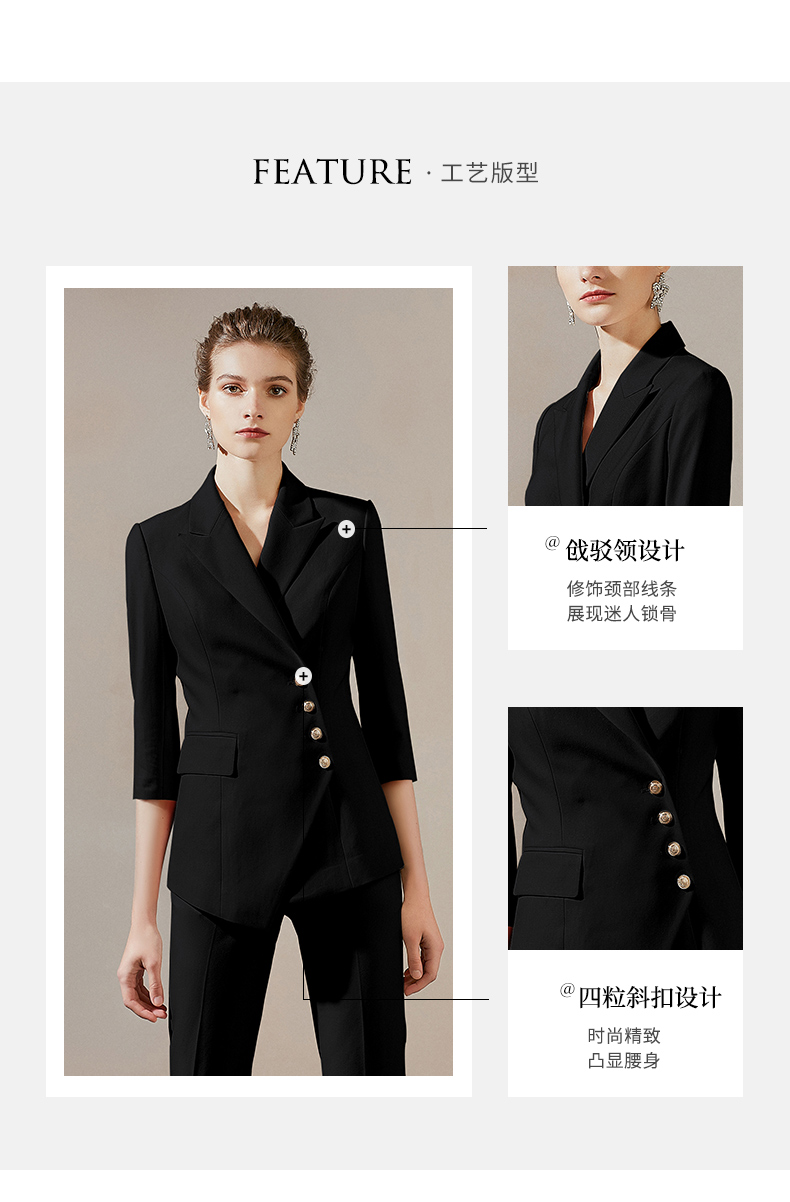 IWY/黑色西装套装女职业装女正装英伦时尚高端面试七分袖工作服C10408-B+P10407-B
