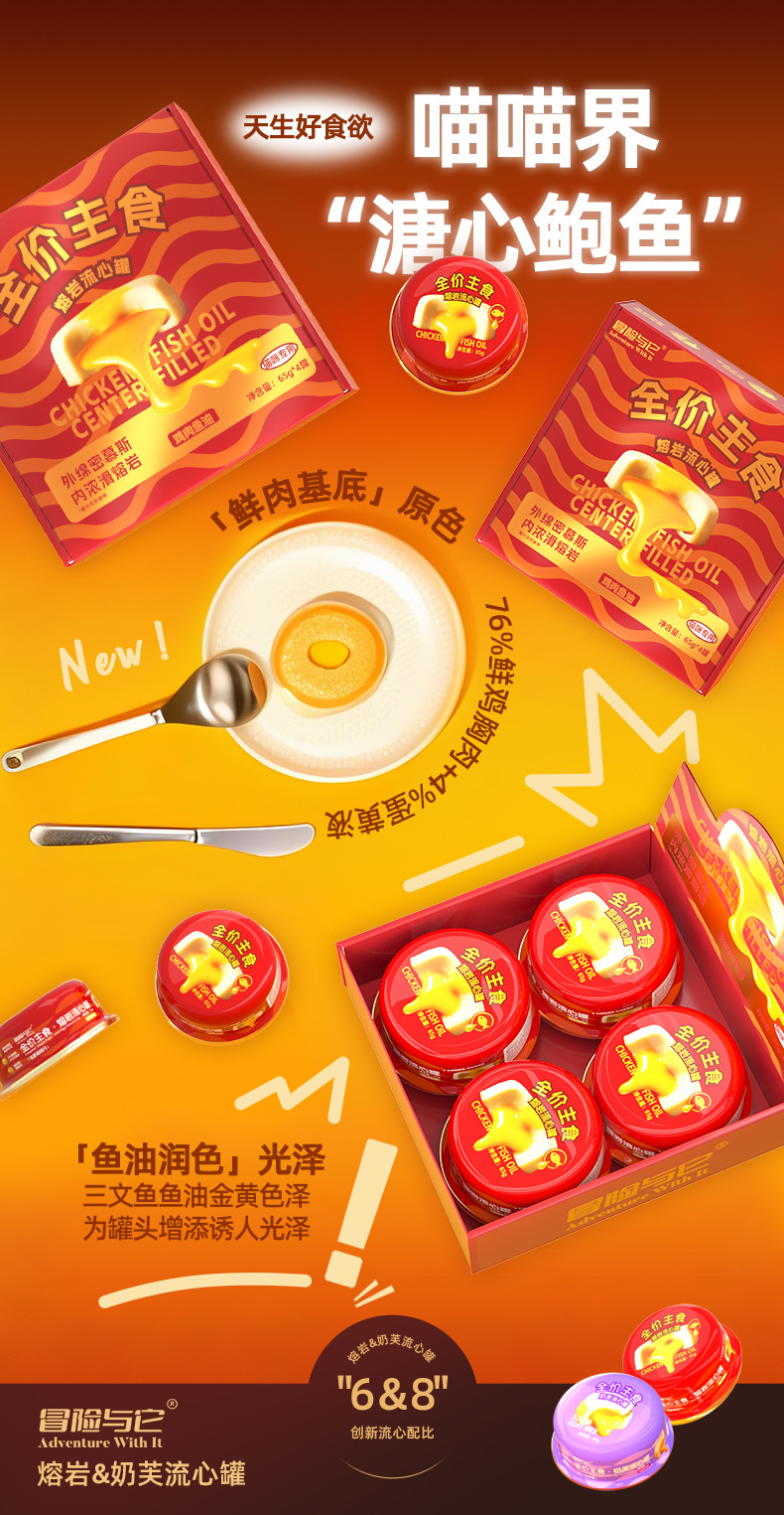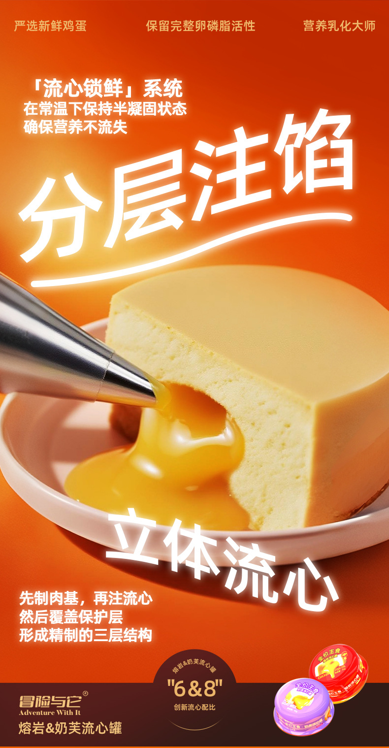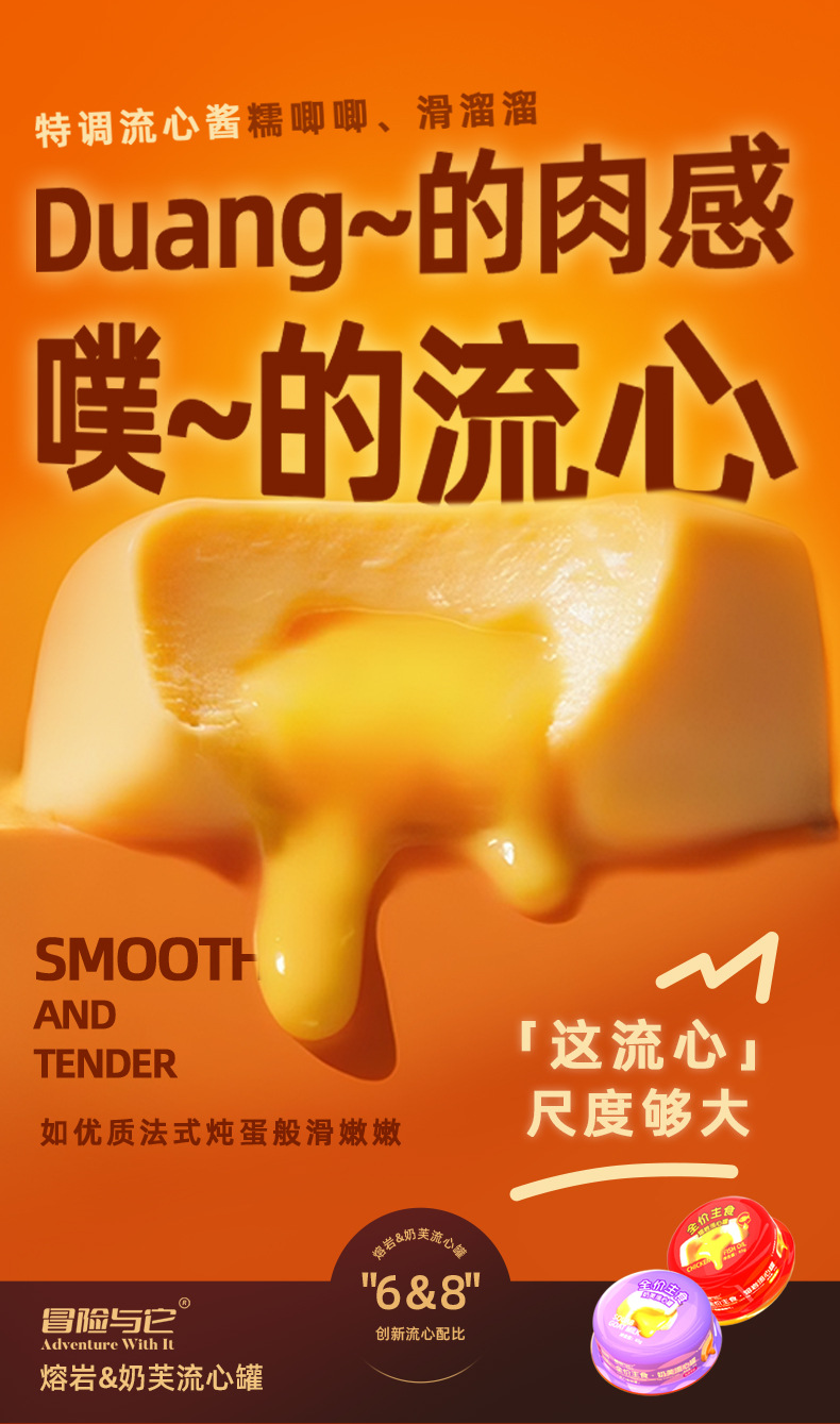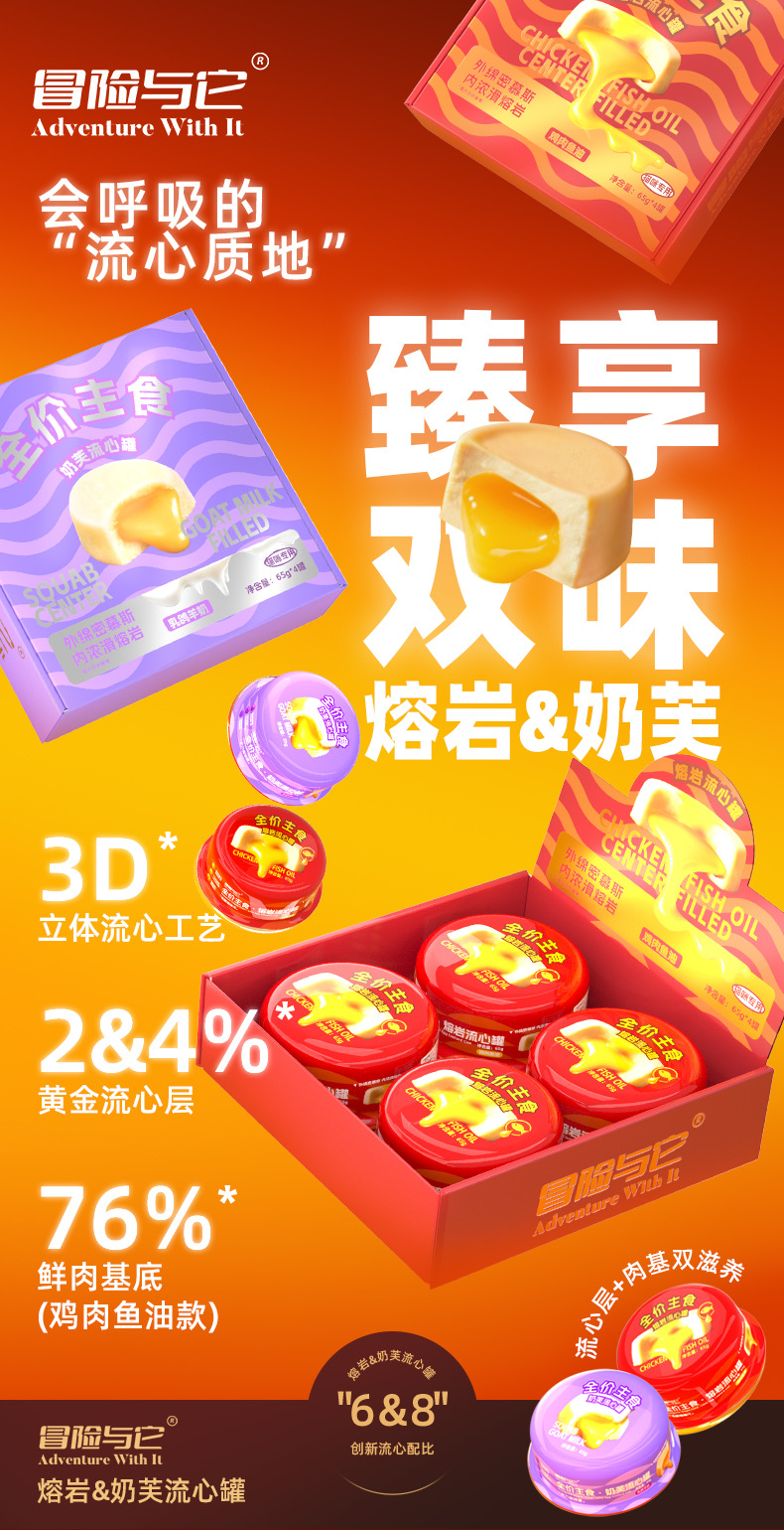 【流心罐】冒险与它 猫咪主食流心罐头奶黄熔岩65g*4个/盒 整箱装10盒40罐