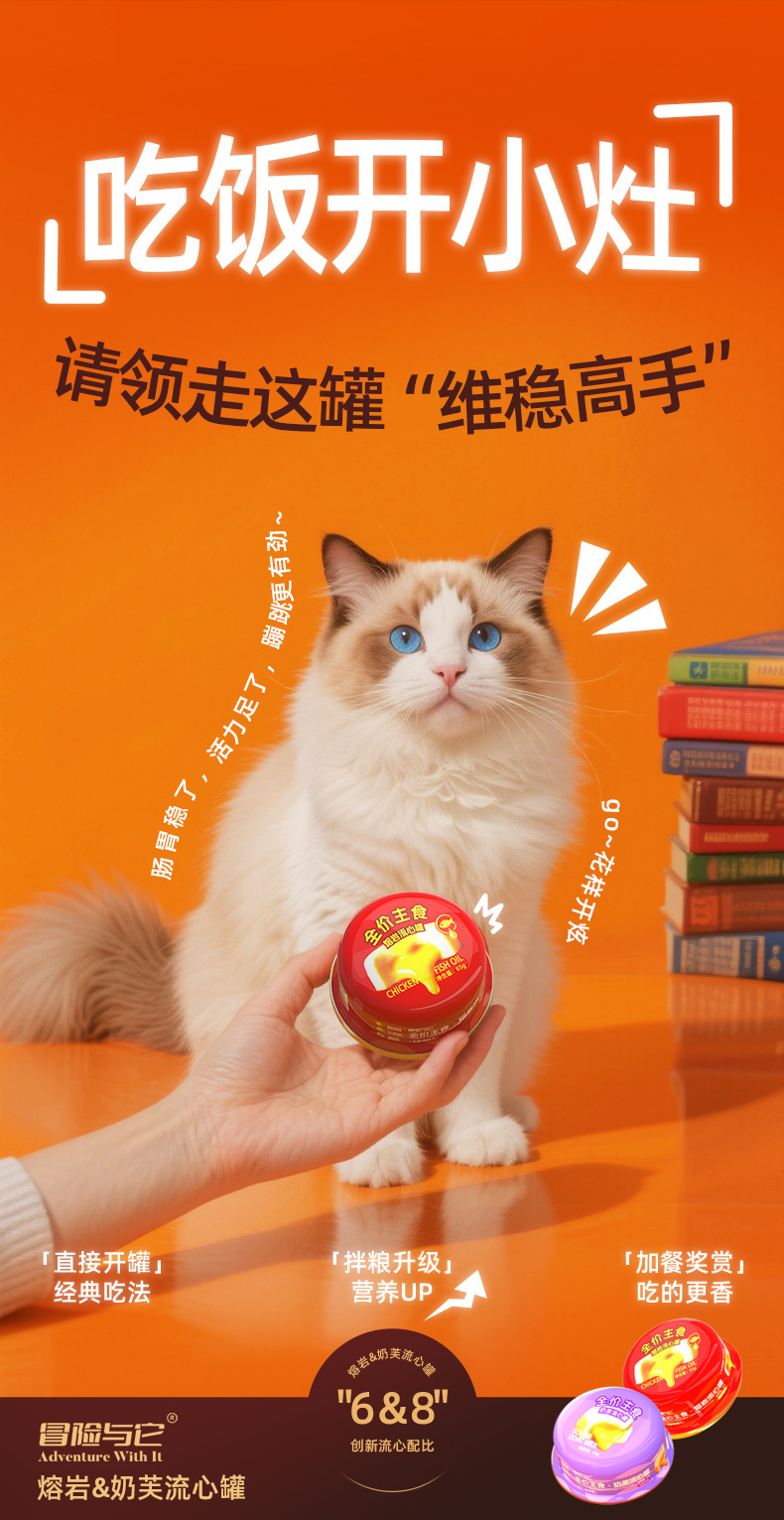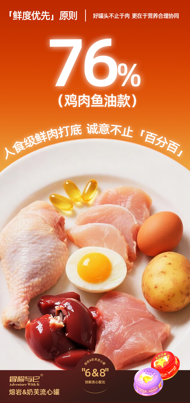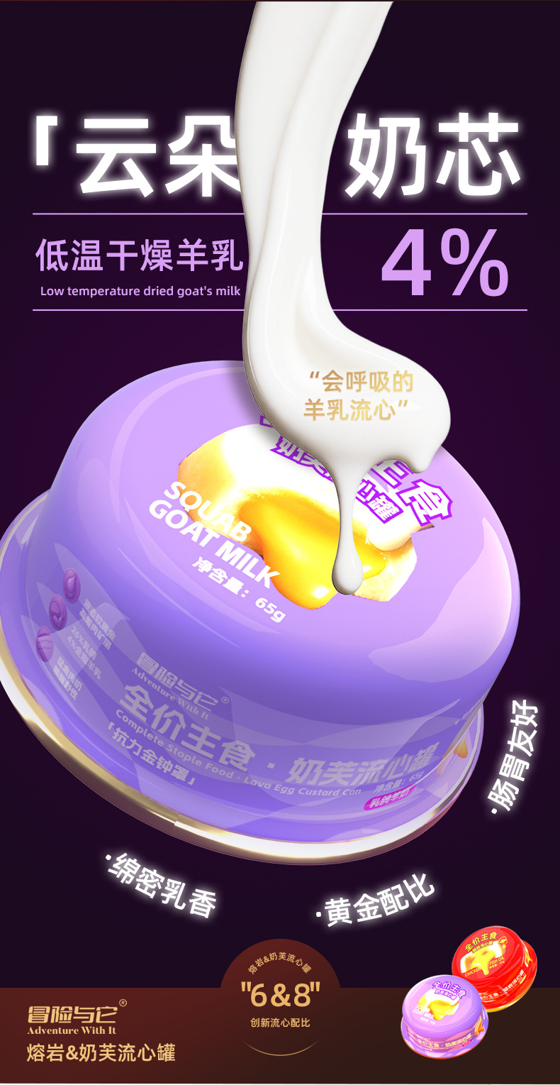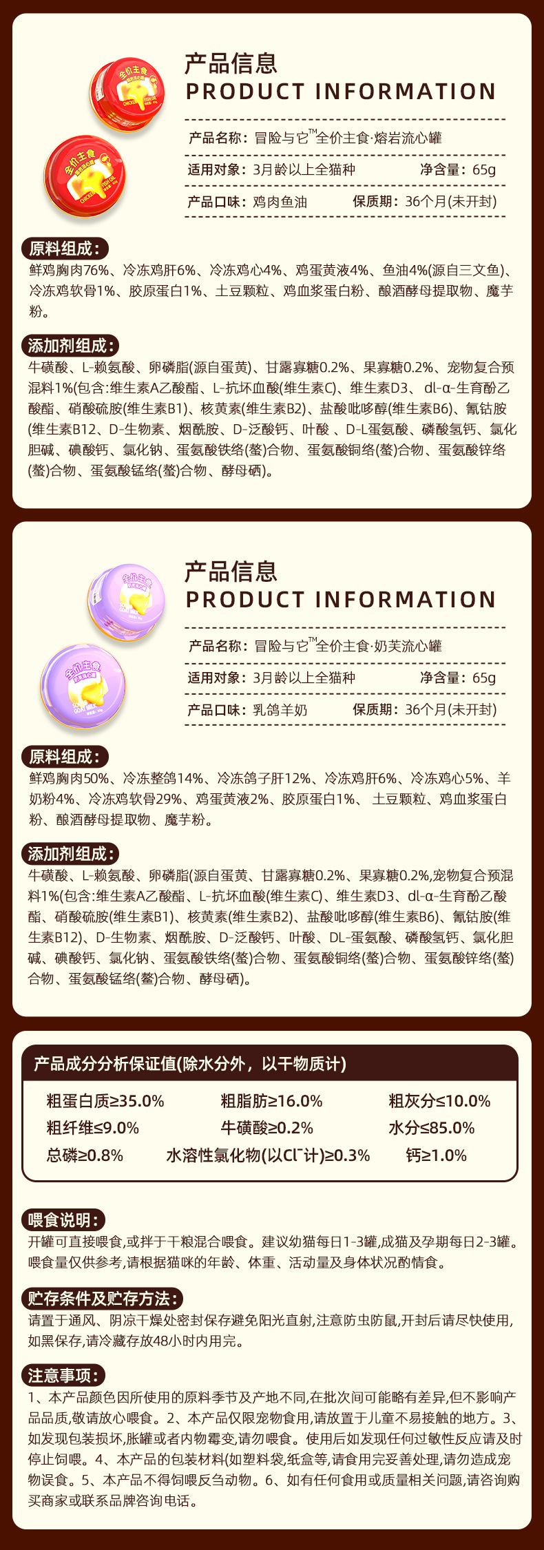 【流心罐】冒险与它 猫咪主食流心罐头奶黄熔岩65g*4个/盒 整箱装10盒40罐