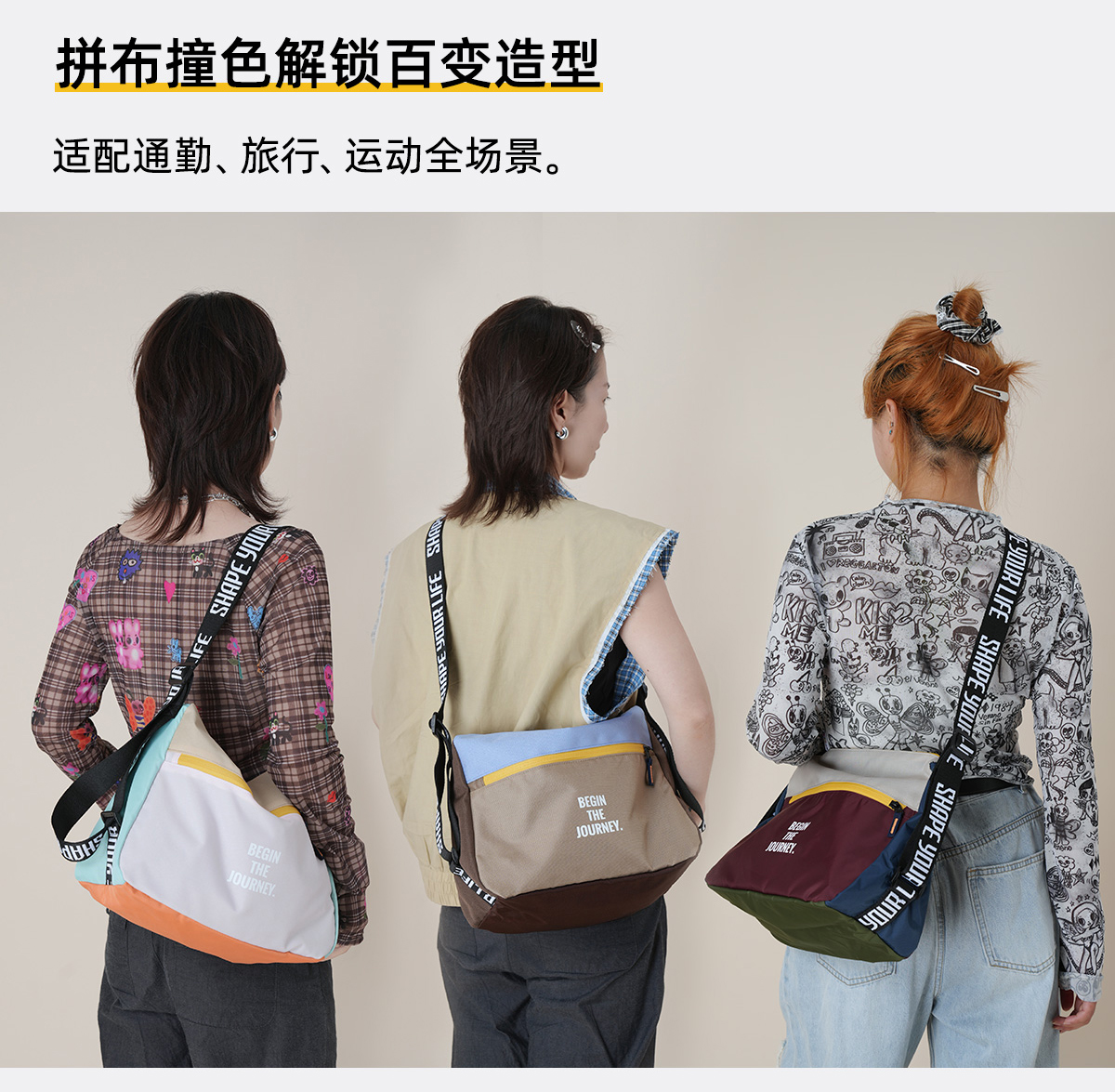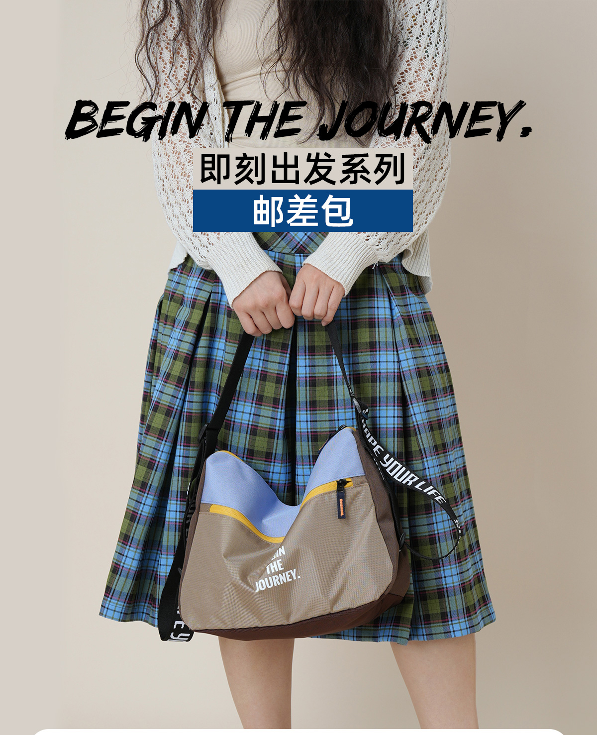 趁早即刻出发休闲斜挎邮差包大容量通勤撞色百搭骑行户外单肩包