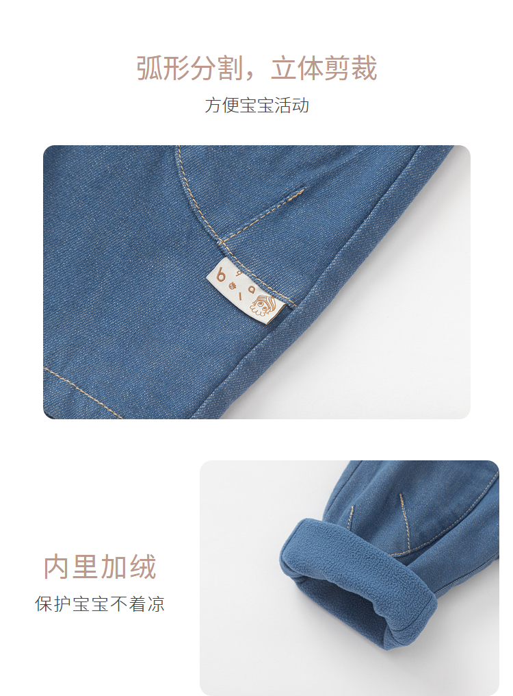巴拉巴拉宝宝裤子男童牛仔裤秋冬加绒裤保暖新款潮酷时尚帅气有型