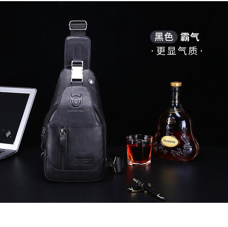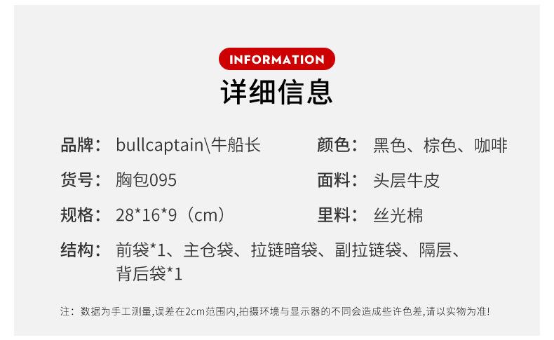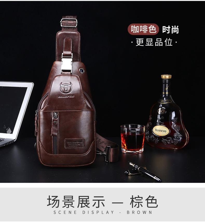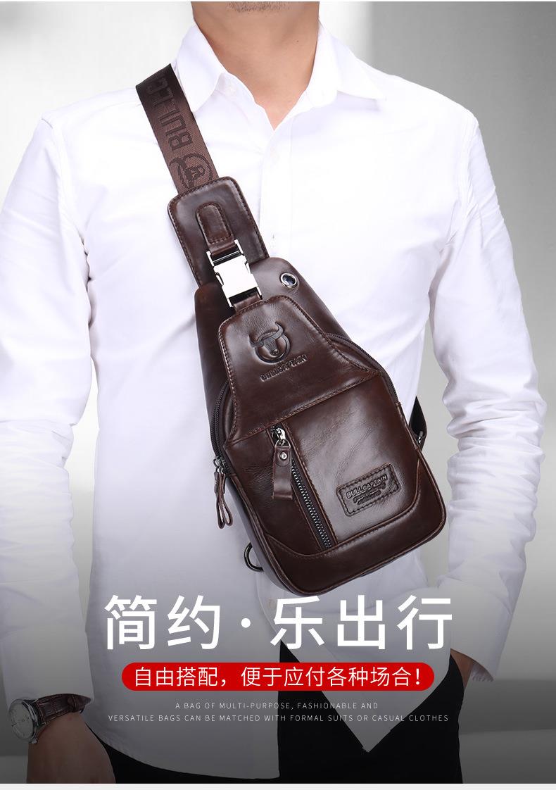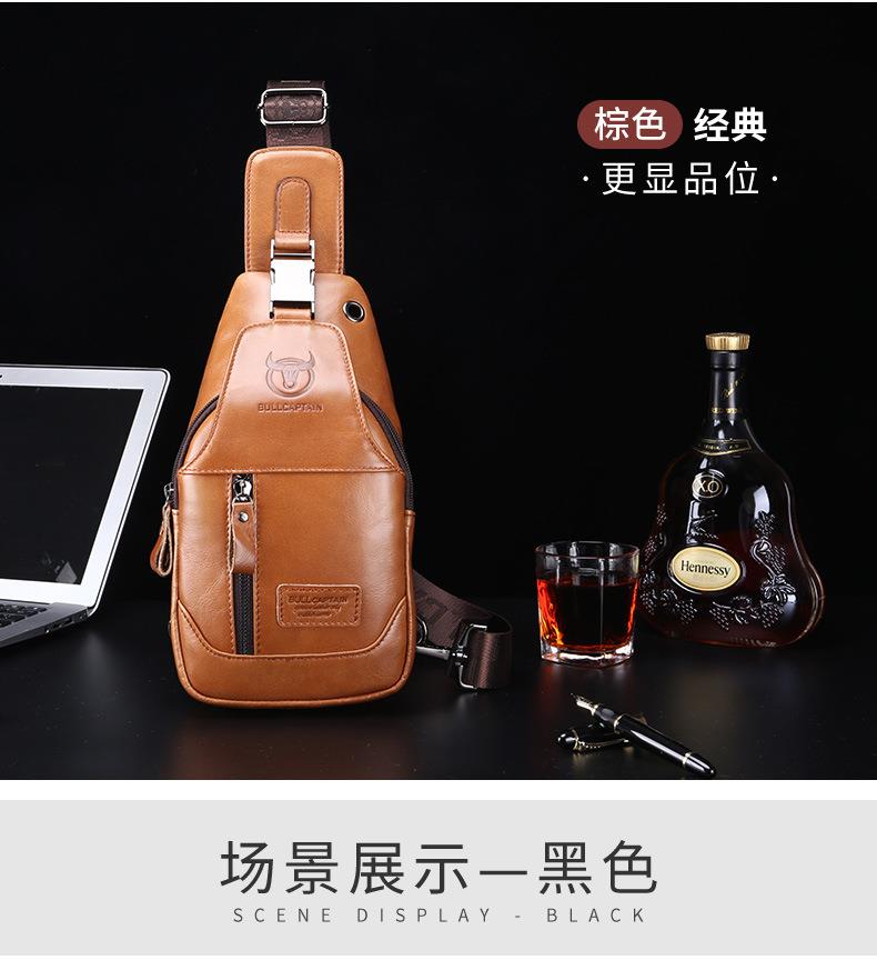 牛船长皮具BULLCAPTAIN头层牛皮男真皮单肩斜挎休闲真皮胸包